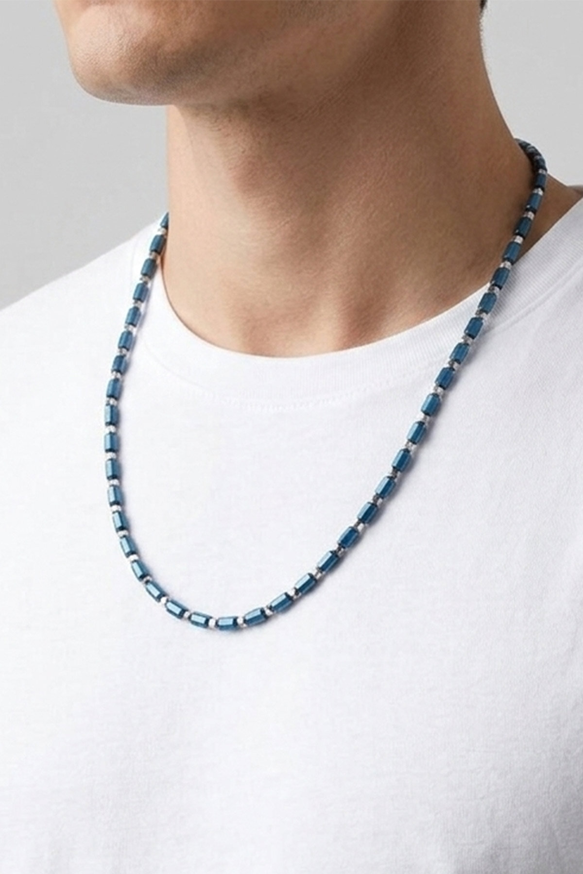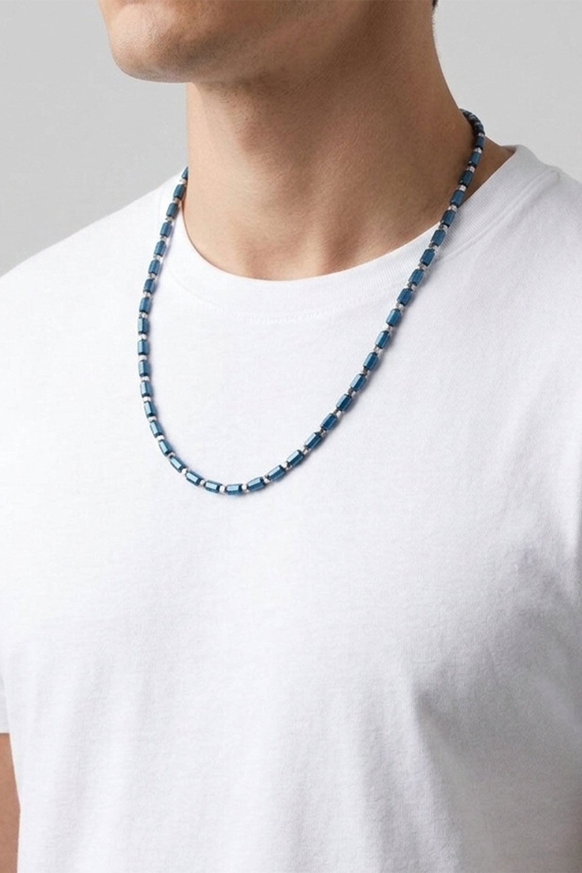 Hematit Taşlı 63 Cm Gümüş Erkek Kolye