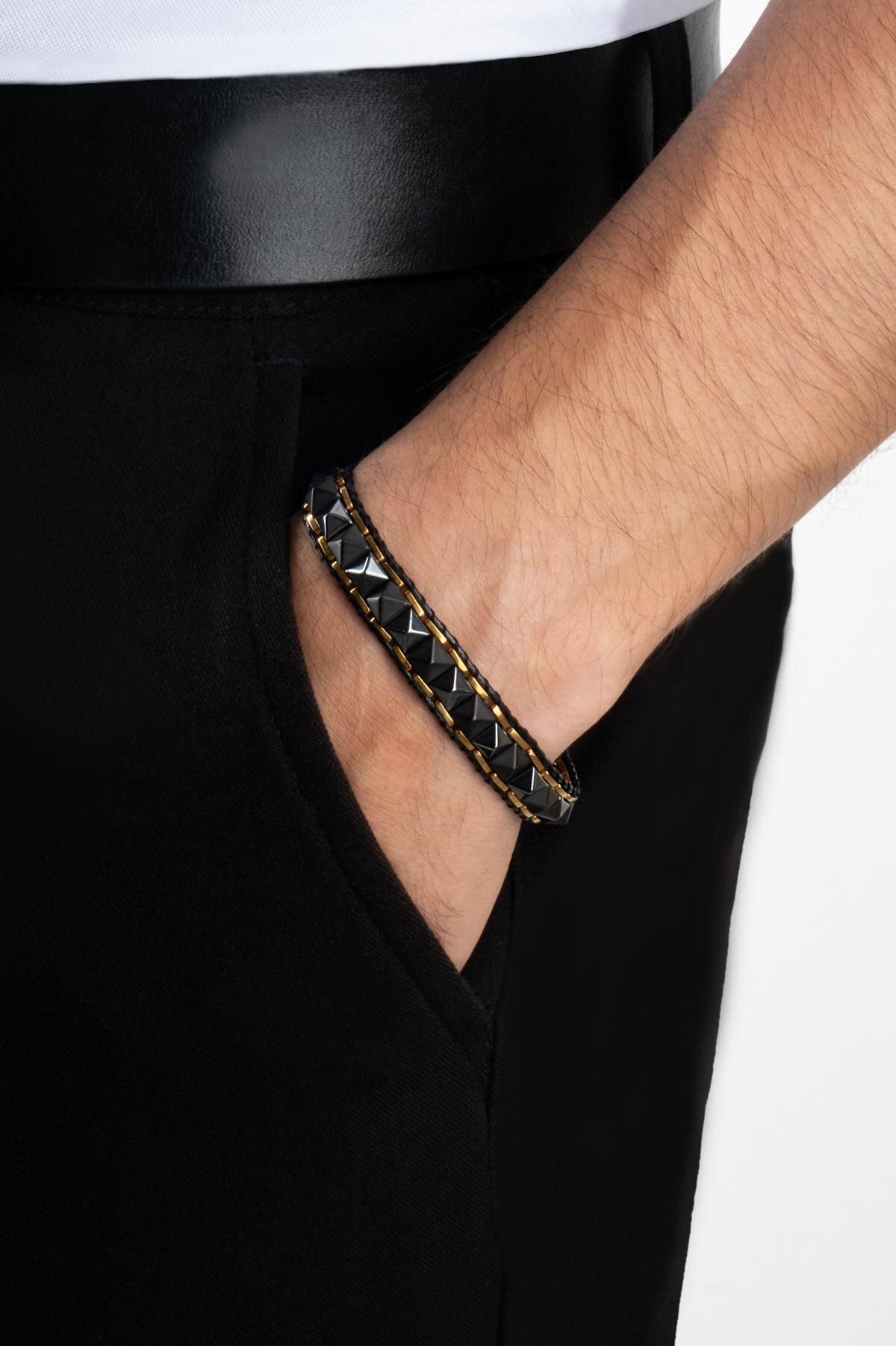 Hematit Taşlı Erkek 21 Cm Çelik Bileklik