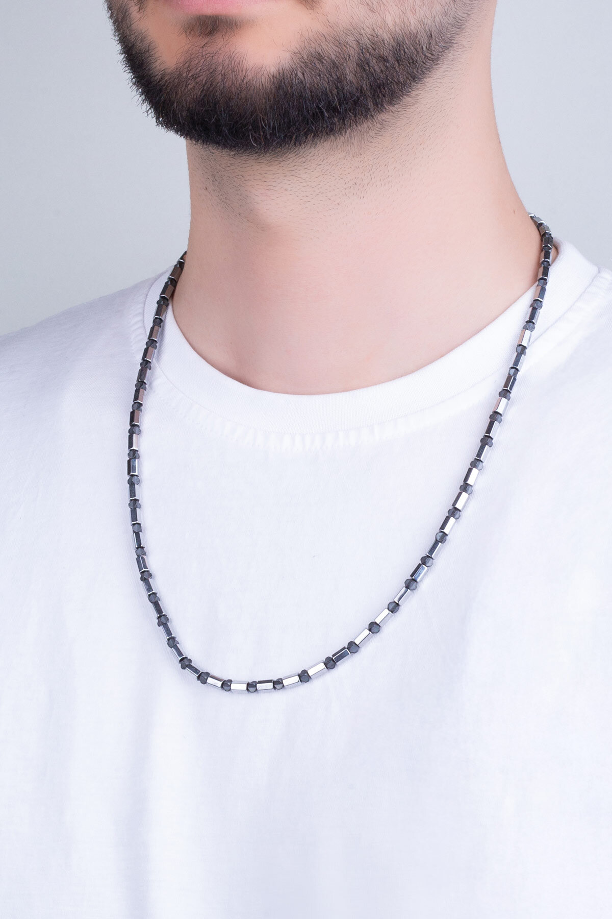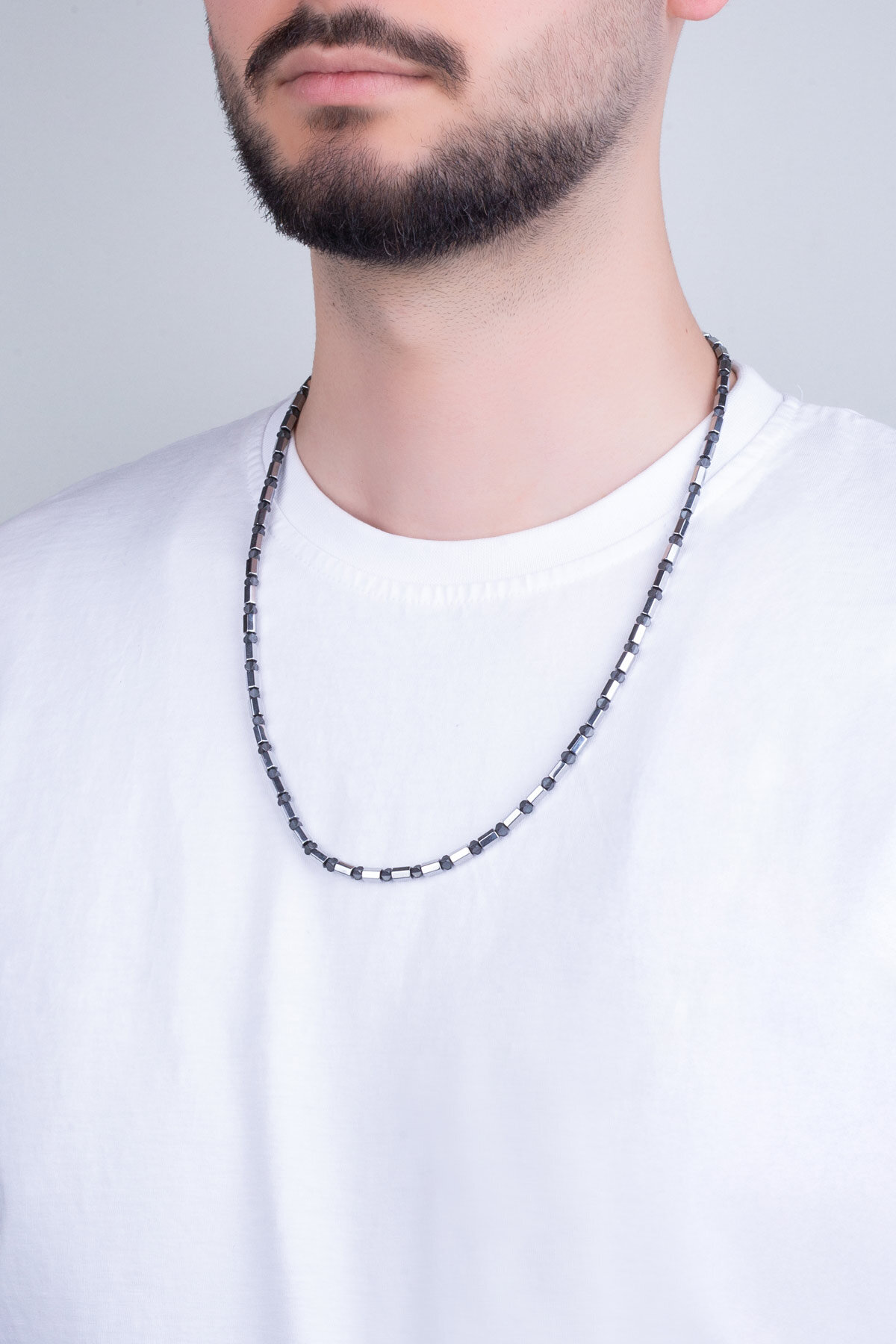 Hematit Taşlı Erkek 75 Cm Gümüş Kolye