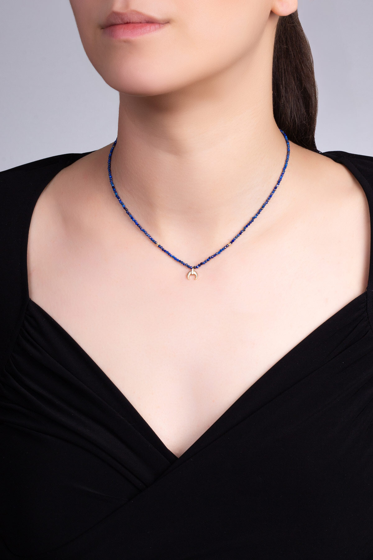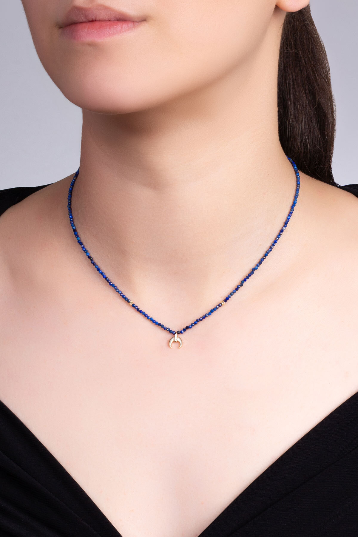 Hilal Figürlü Lapis Taşlı 14 Ayar Altın Kolye