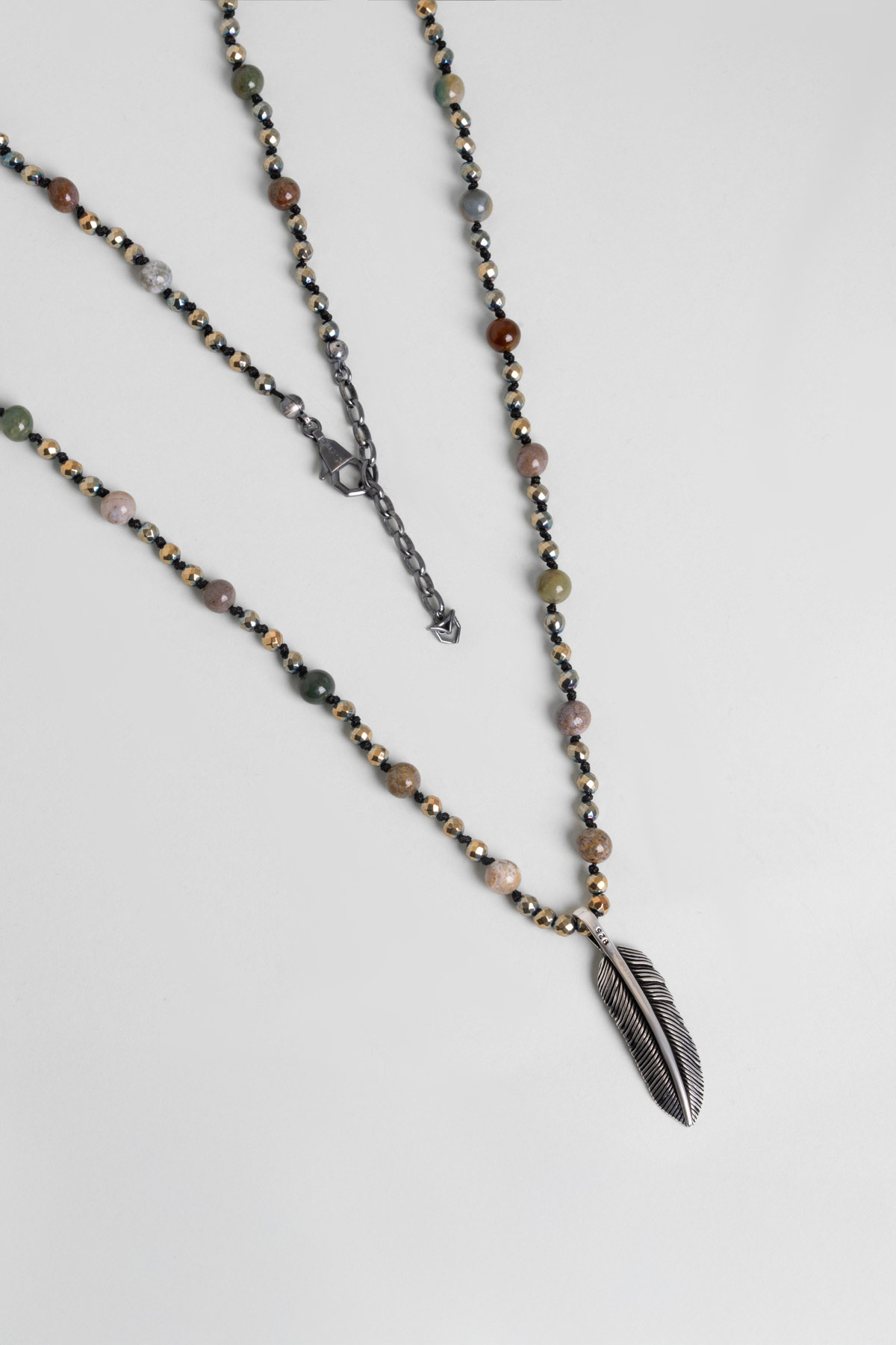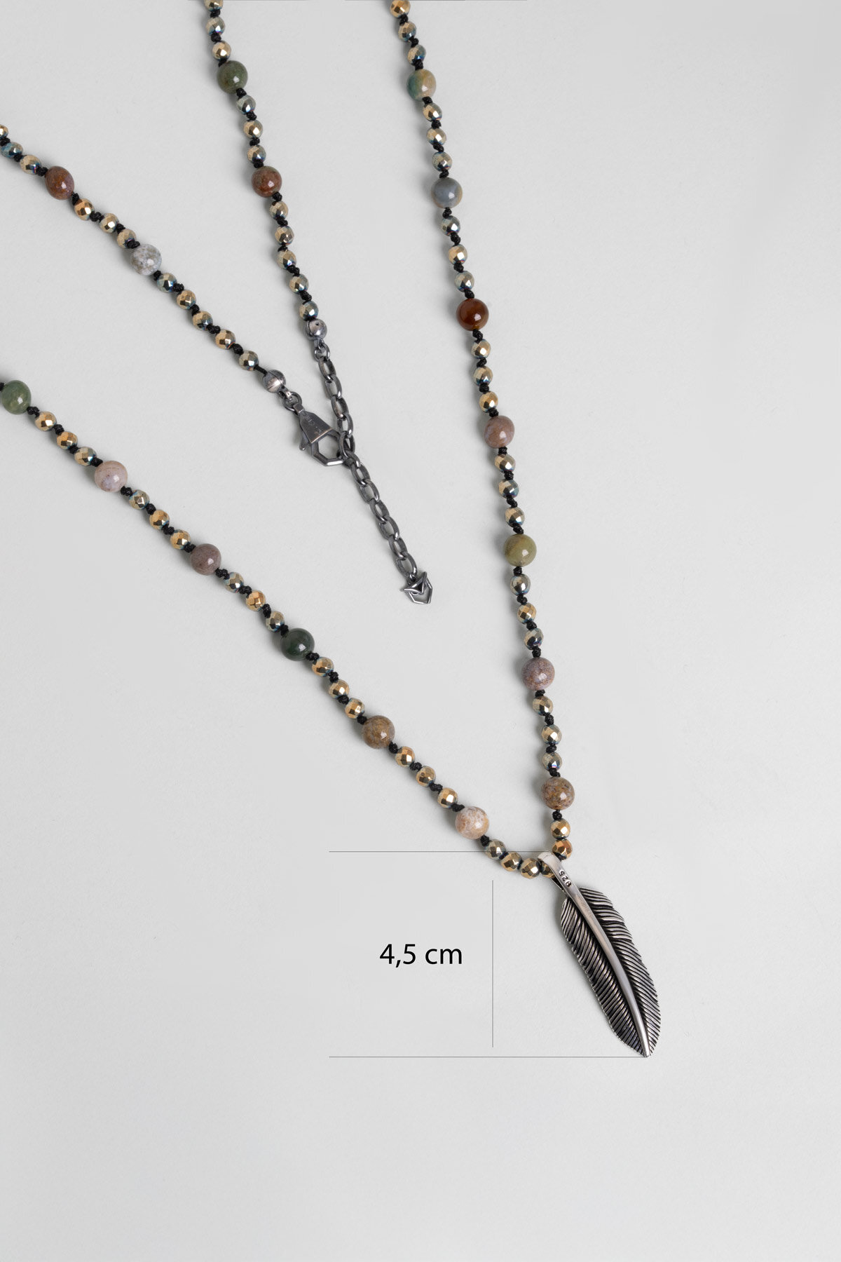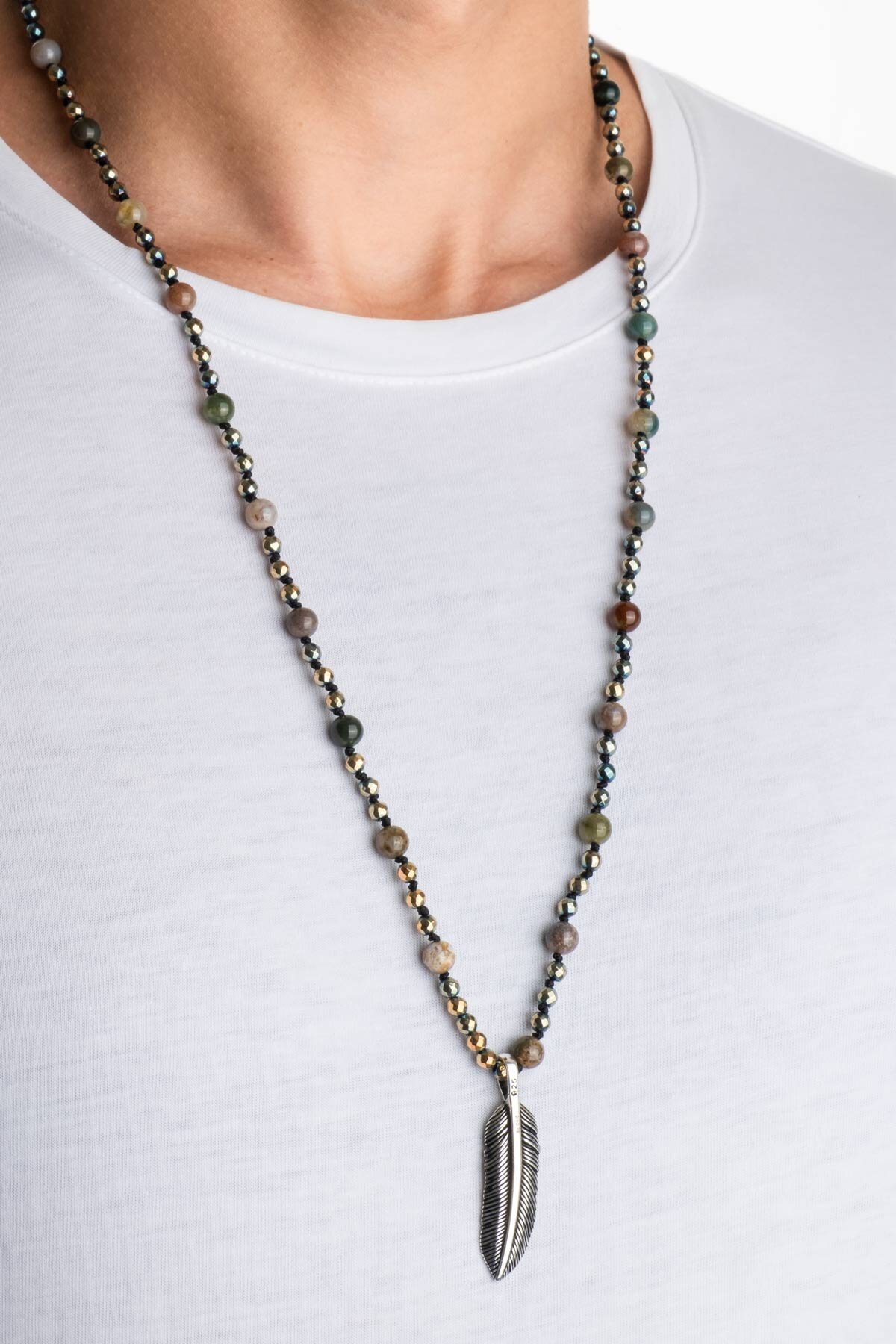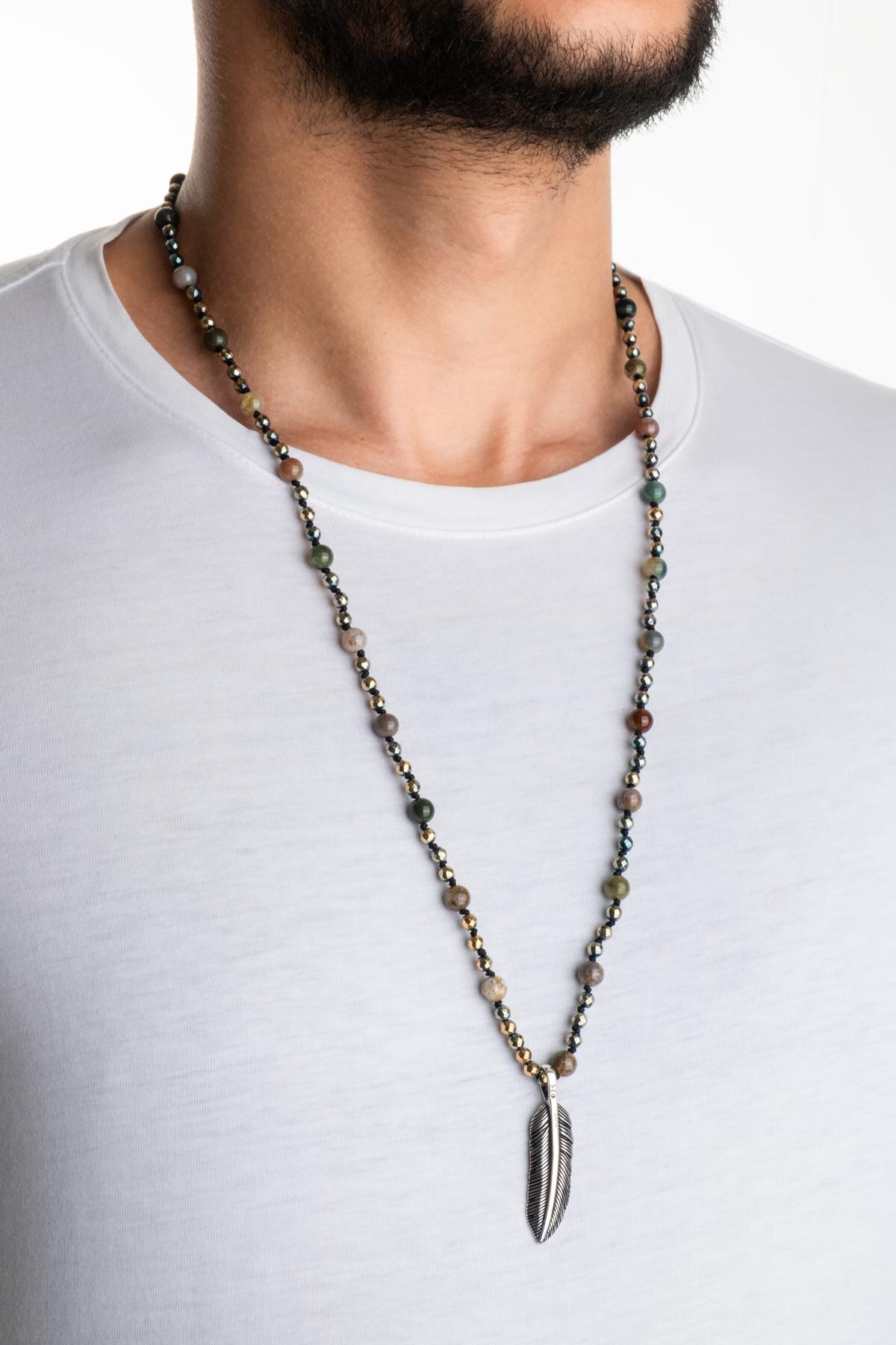 Hint Akik Taşlı Kartal Tüyü Figürlü Gümüş Kolye