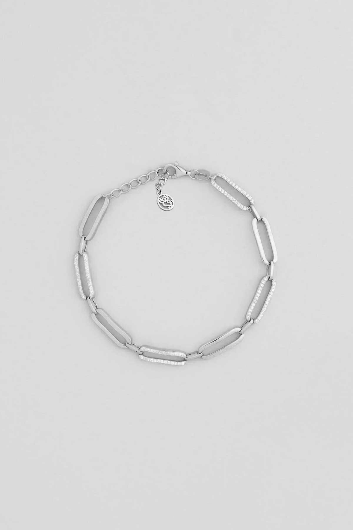 İkonik Tasarım 18 Ayar Beyaz Altın Kaplama 20 Cm Gümüş Zincir Bileklik