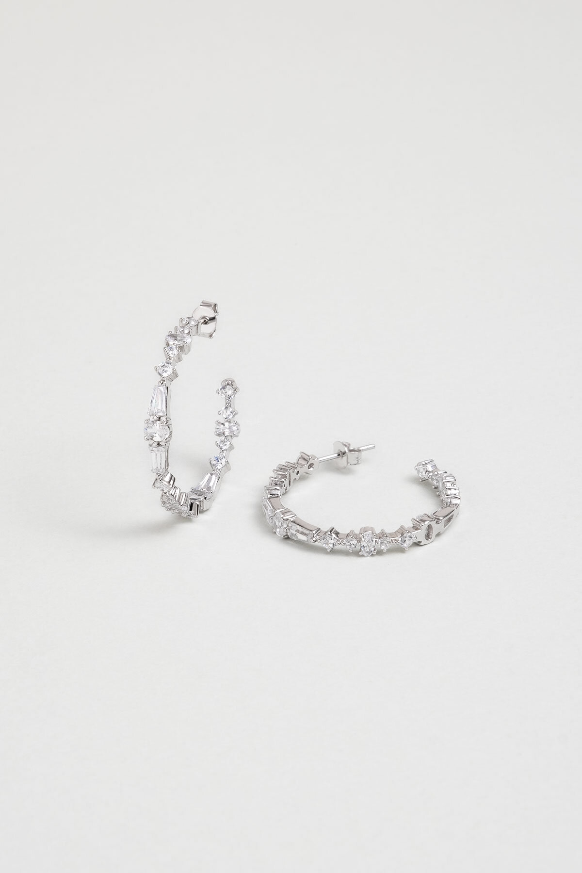 İkonik Tasarım 18 Ayar Beyaz Altın Kaplama Gümüş Halka Küpe