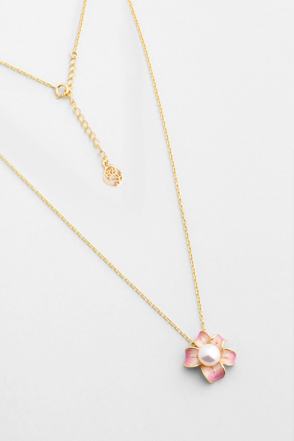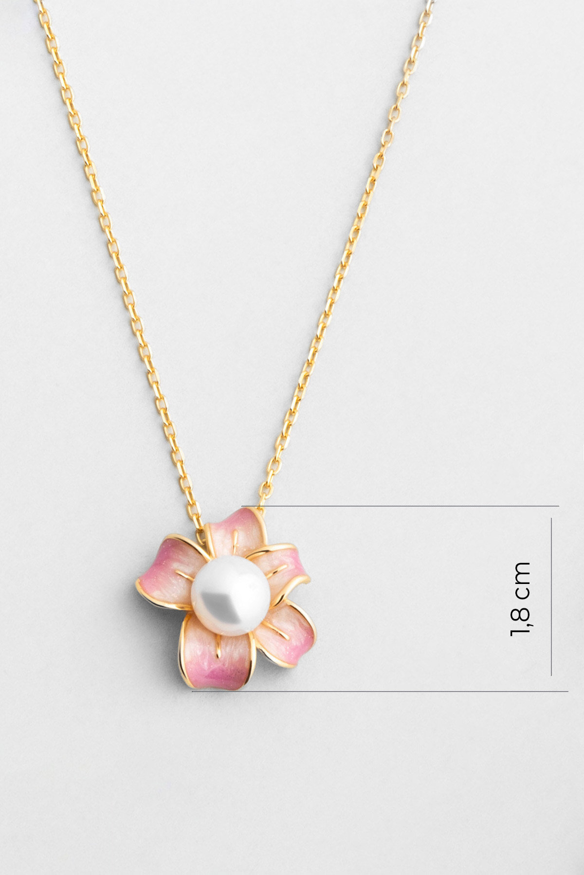 İnci Çiçeği 18 Ayar Sarı Altın Kaplama 45 Cm Gümüş Kolye