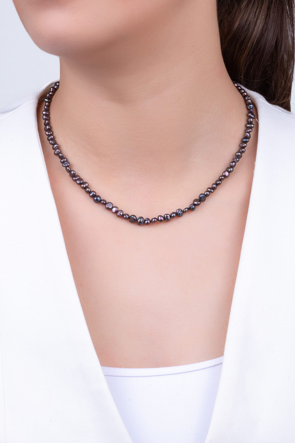 İnci Masalı Kolye, siyah ve kahverengi tonlarındaki Mayorka incileriyle zarif ve sofistike bir duruş sunar. 40 cm zincir uzunluğuna ek 5 cm uzatma halkası sayesinde ayarlanabilir kullanım sağlar. Bej, krem ve siyah kombinlerle; gömlek, triko ve sade elbiselerle şık bir uyum yakalar..