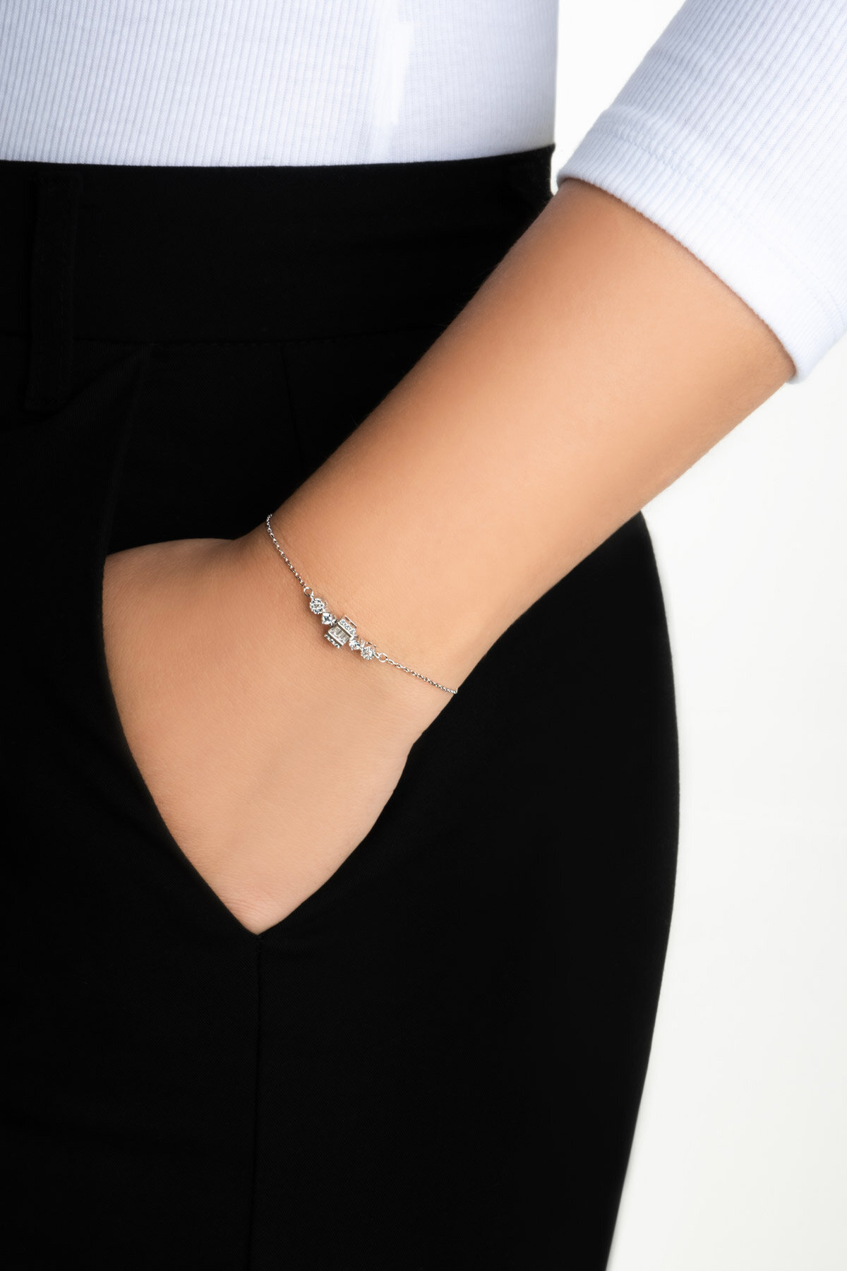 Işık Yolu Bileklik, zarif taş dizilimiyle bilekte akıp giden bir ışıltı hissi yaratır. Minimal ve modern formu sayesinde günlük şıklığa sofistike bir dokunuş katar. Özel günlerde ise sade ama etkileyici duruşuyla stilini tamamlar.