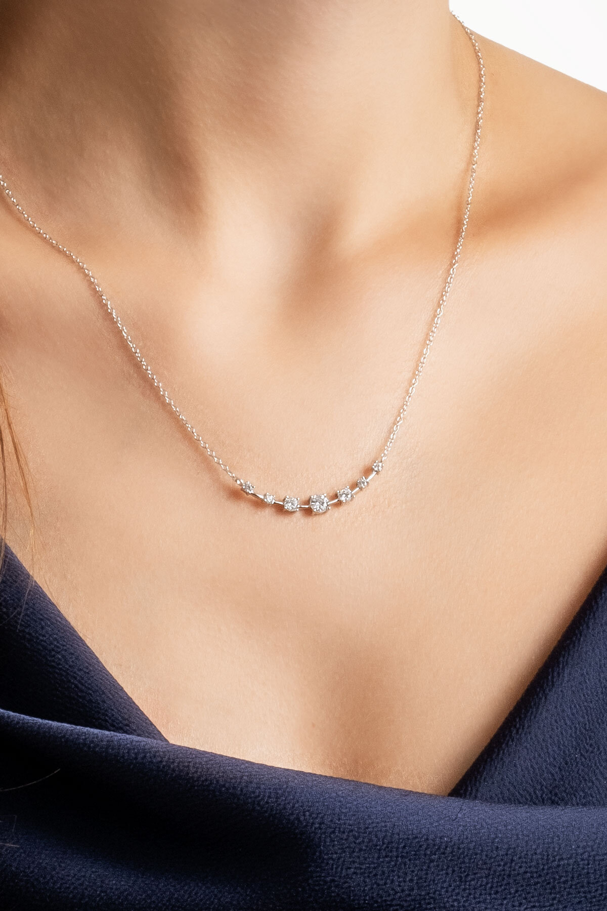 Işıklı Yol 18 Ayar Beyaz Altın Kaplama 45 Cm Gümüş Kolye