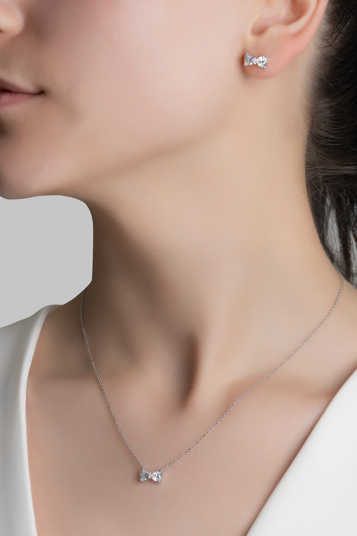 Işıltılı Fiyonk 18 Ayar Beyaz Altın Kaplama Gümüş Küpe