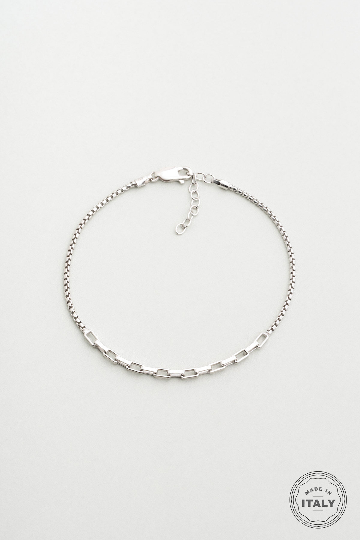 İtalyan 18 Ayar Beyaz Altın Kaplama 21 Cm Gümüş Erkek Bileklik