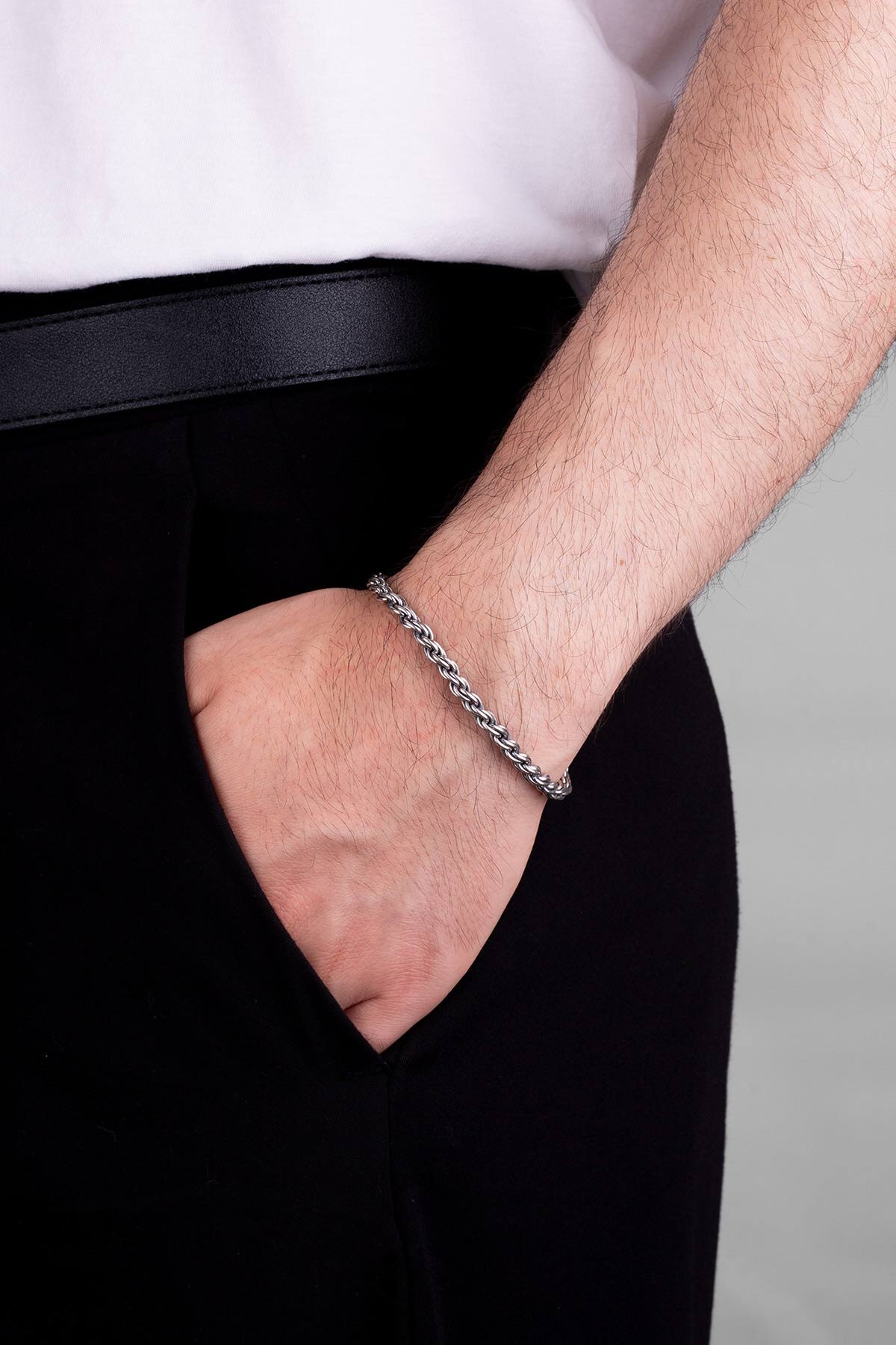 İtalyan Gümüş Erkek Zincir Bileklik