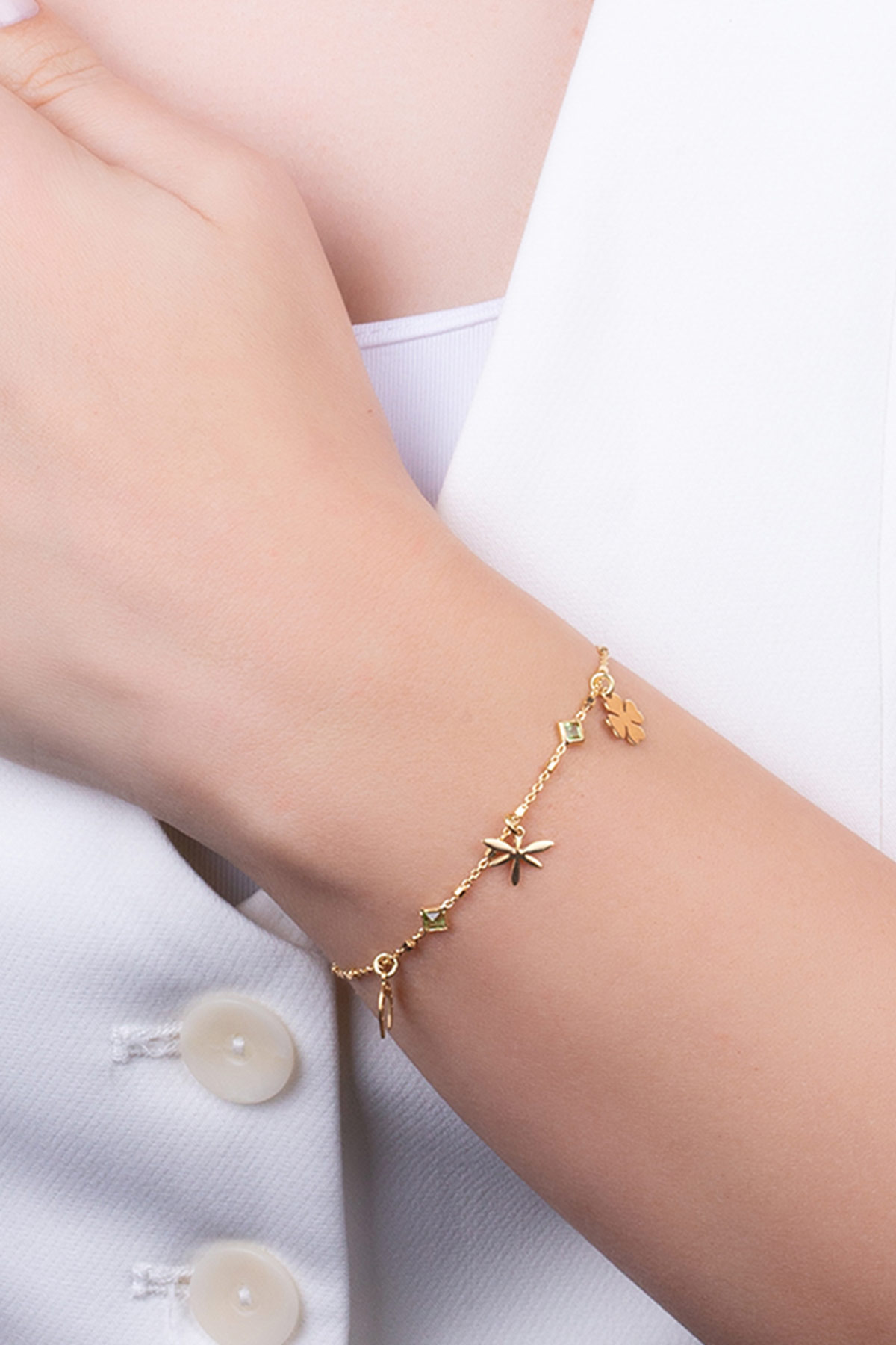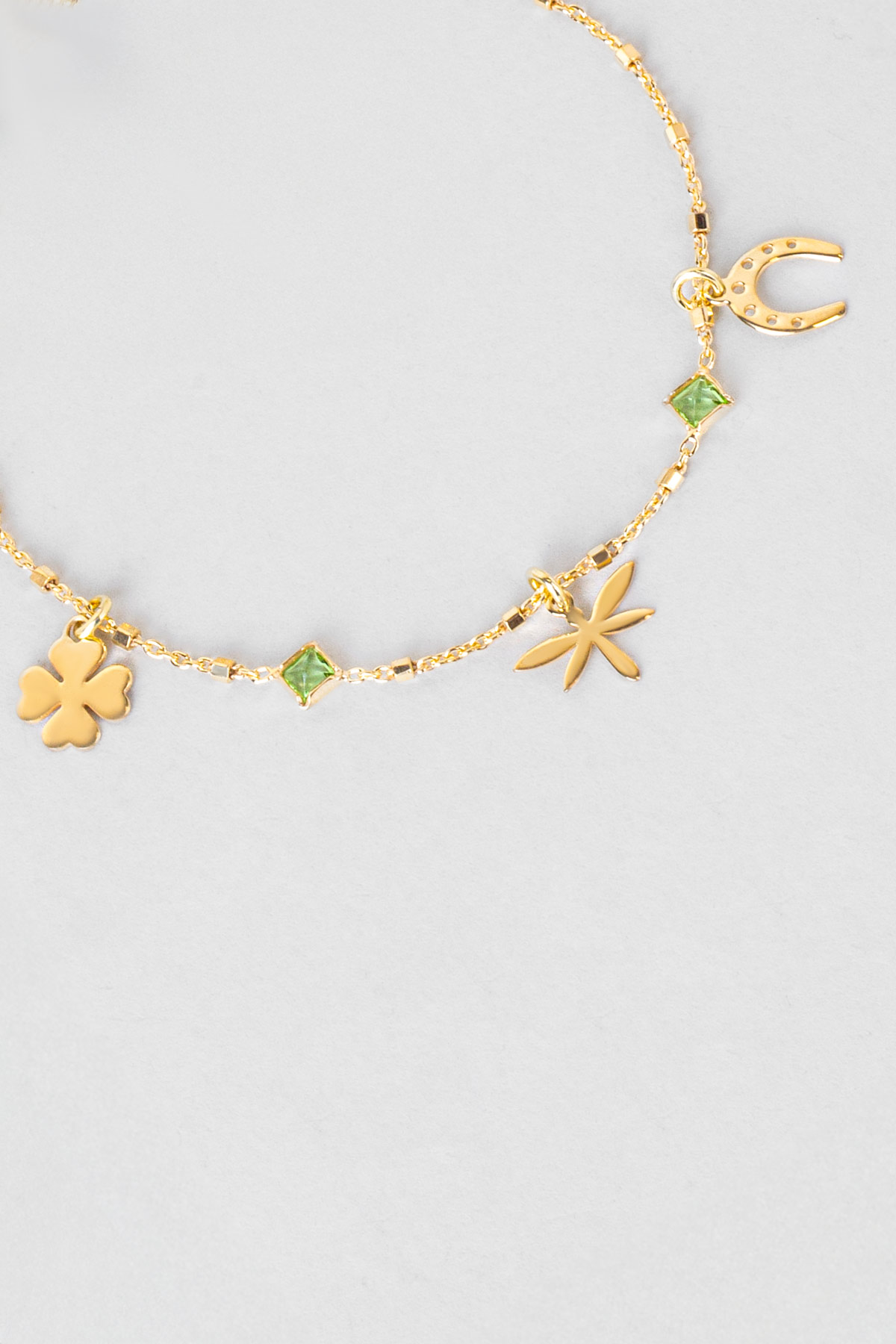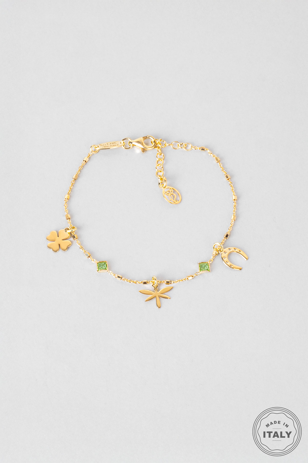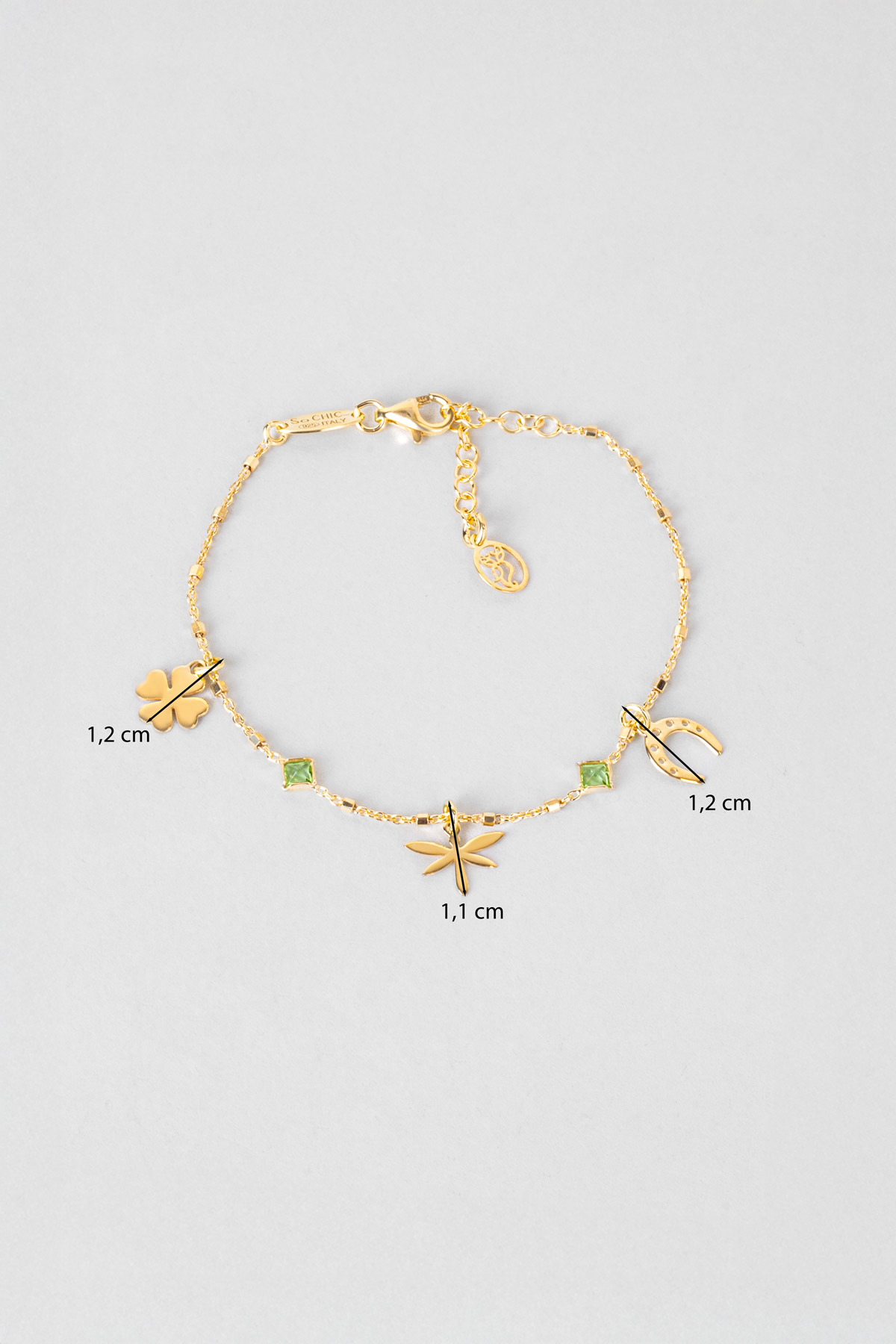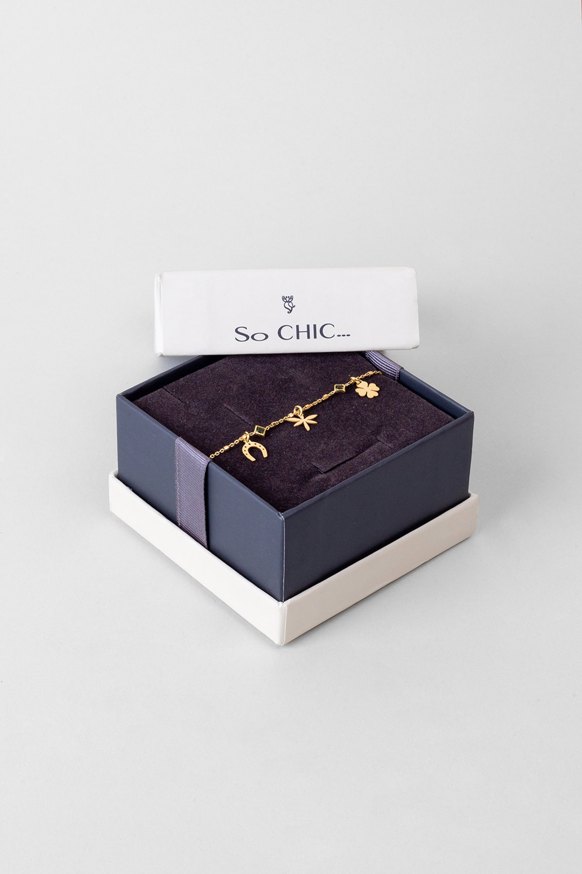 İtalyan Şans Bilekliği; at nalı, yonca ve yusufçuk sembolleriyle şansı, bereketi ve dönüşümü temsil eder. Parlak yüzey detayları ve modern formu ile zarif bir duruş sunar, günlük kombinlerden özel anlara uyum sağlar. 19 cm uzunluğundadır ve bilekte dengeli, konforlu bir kullanım sunar.