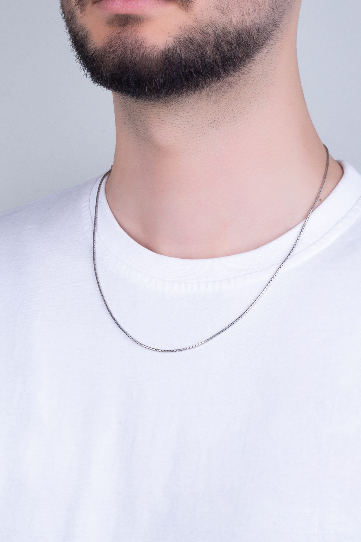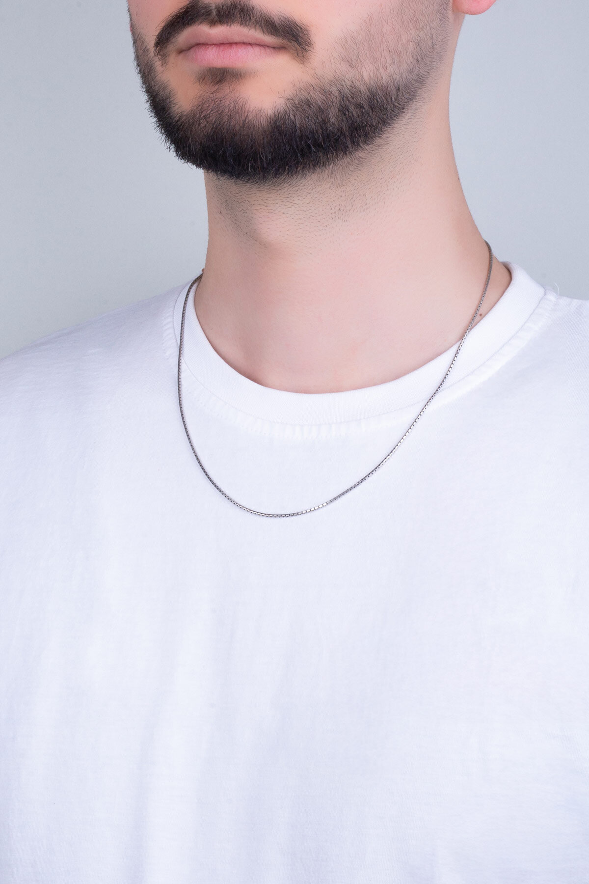 İtalyan Stil Oksitli 55 Cm Gümüş Erkek Zincir Kolye
