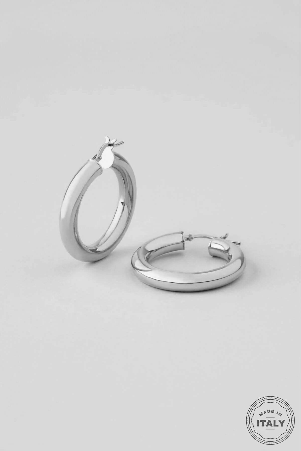 İtalyan Tasarım 18 Ayar Beyaz Altın Kaplama Halka Küpe