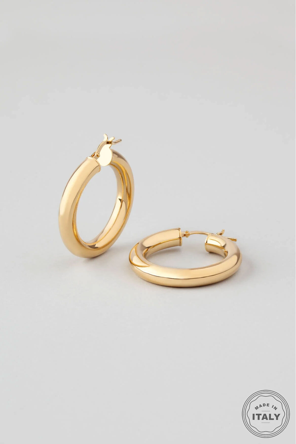 İtalyan Tasarım 18 Ayar Sarı Altın Kaplama Halka Gümüş Küpe