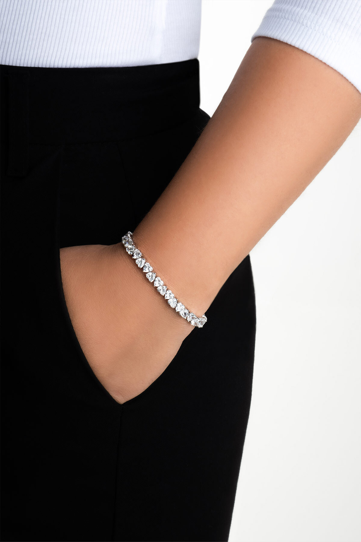 Her bir kalp formundaki taşın zarif ışıltısı, sevgi dolu bir yolun izlerini taşır. “Kalp Işıltısı” bileklik, duyguların en saf halini şık bir tasarımla buluşturur. Işıltılı görünümüyle hem zarafetin hem de sevginin sembolü olarak bileğinizde parıldar.