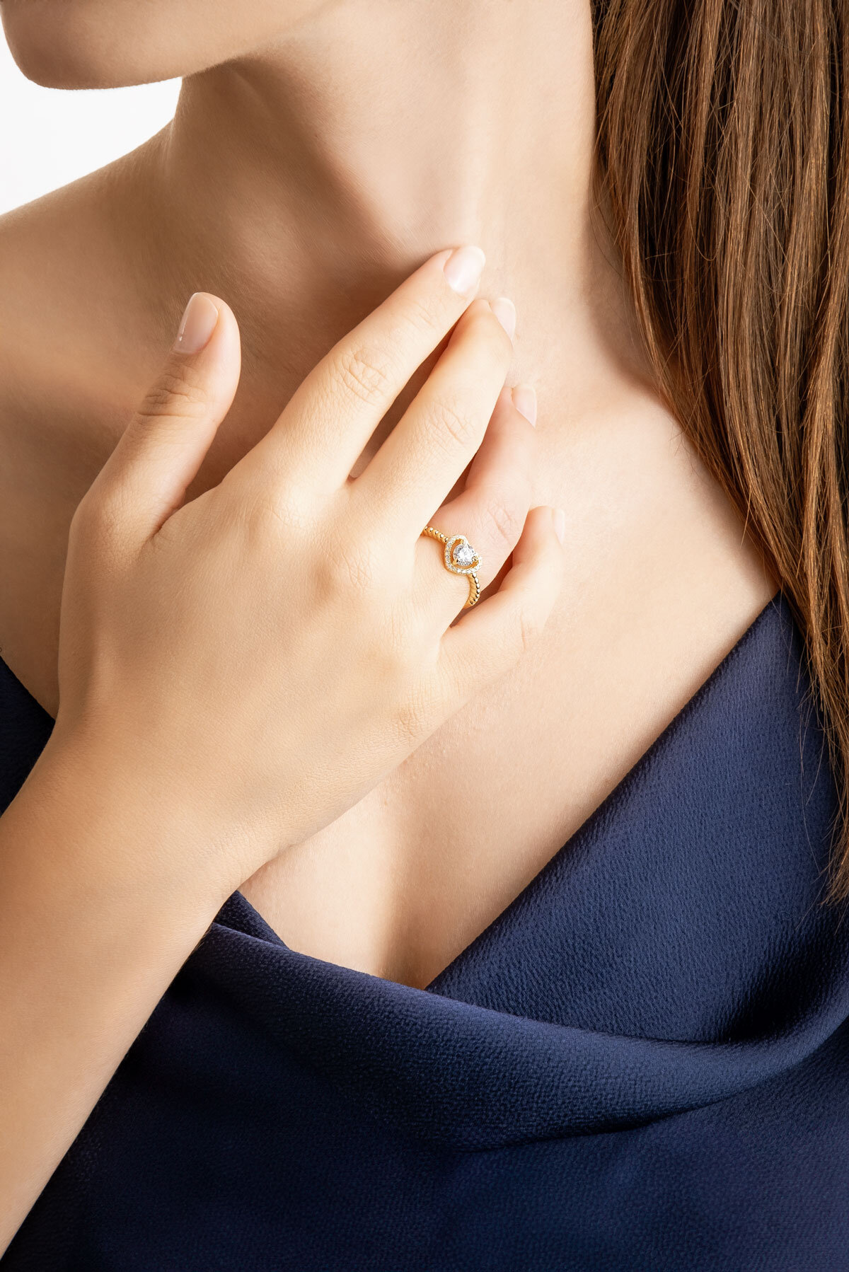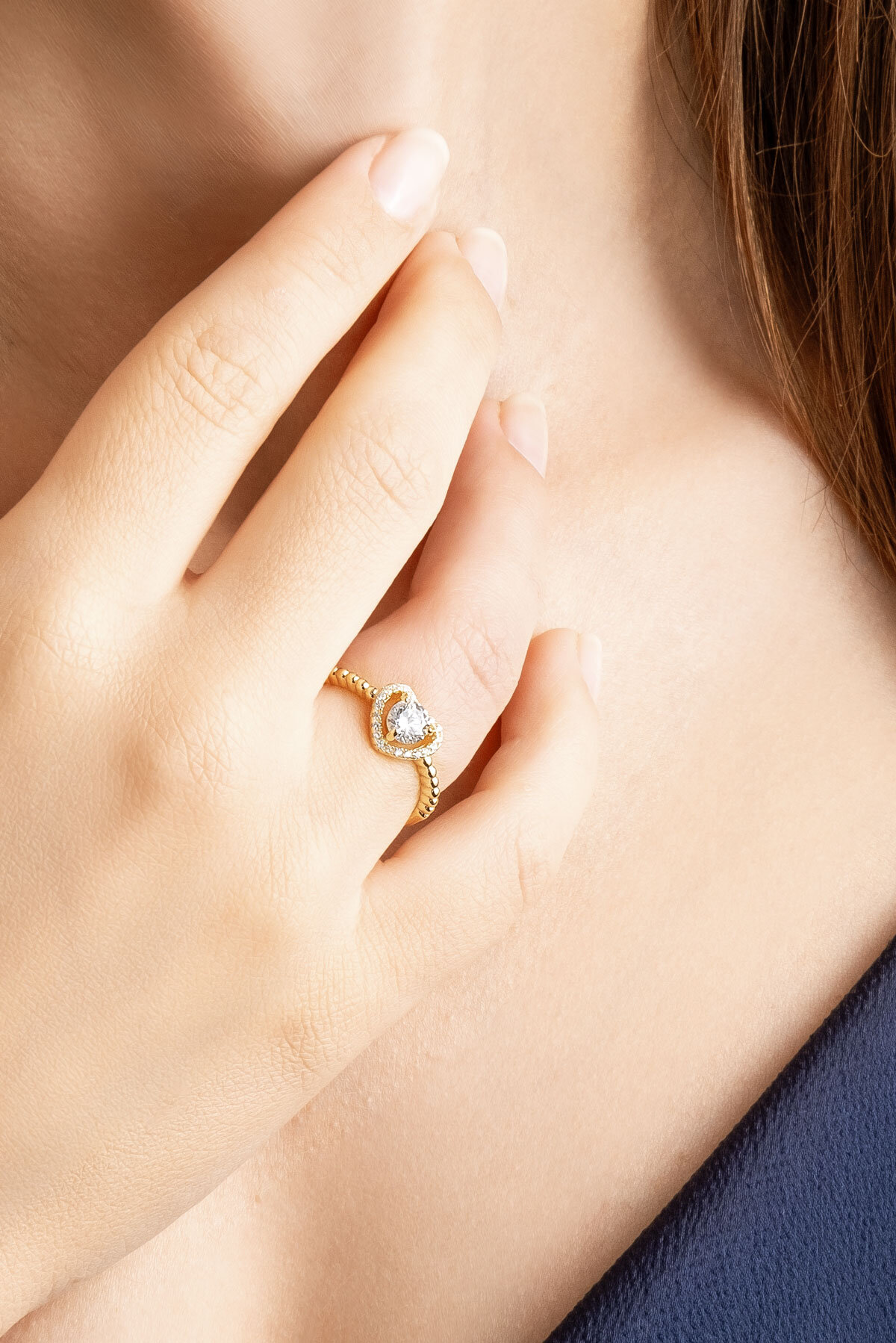 Kalp Işıltısı 18 Ayar Sarı Altın Kaplama Gümüş Yüzük