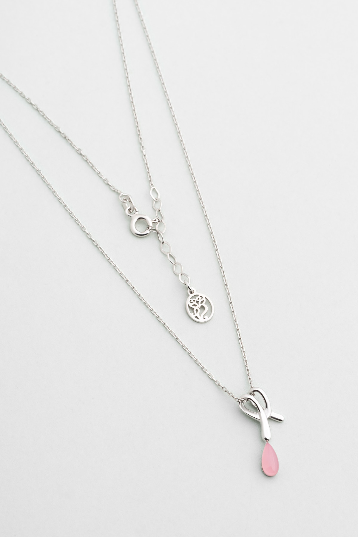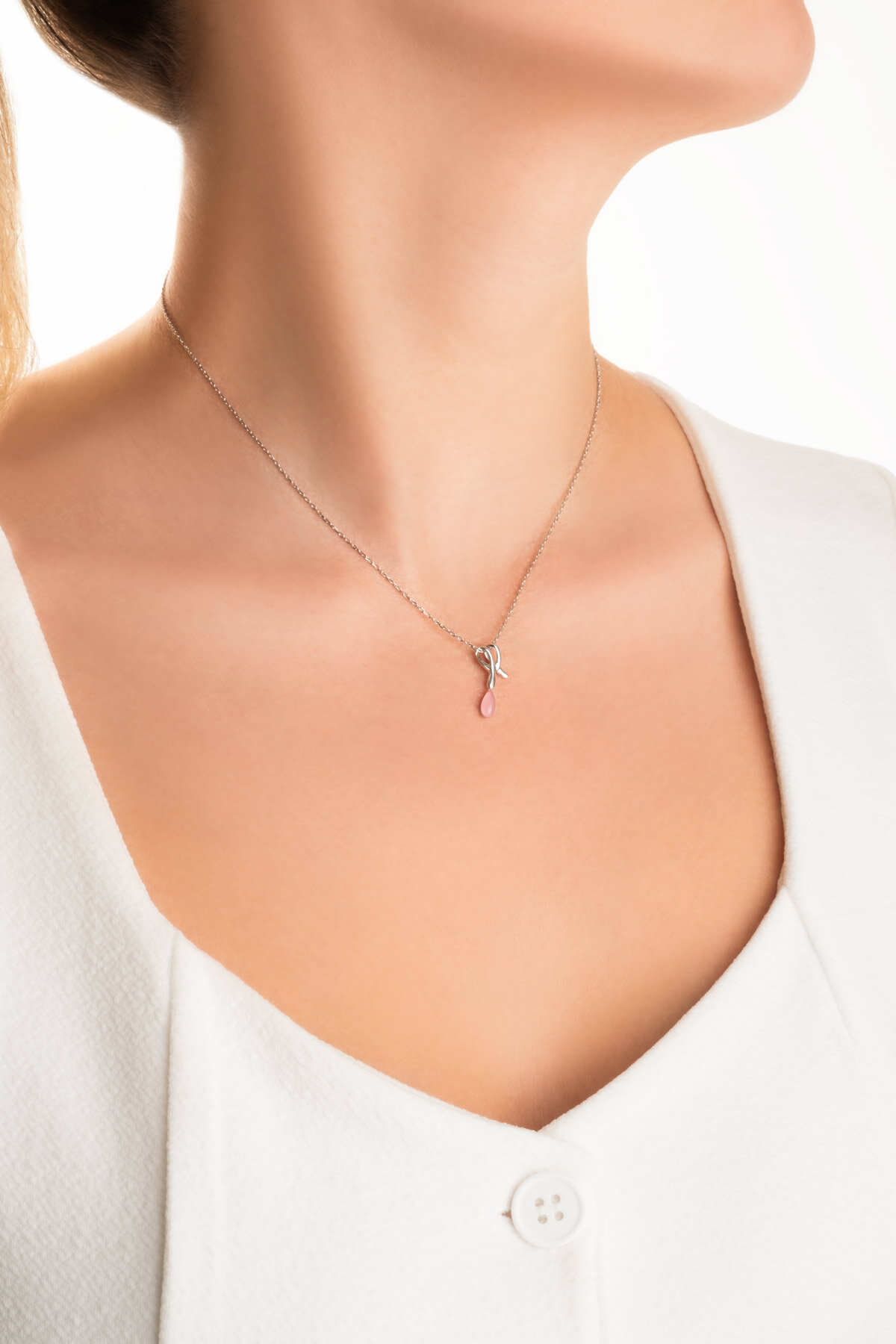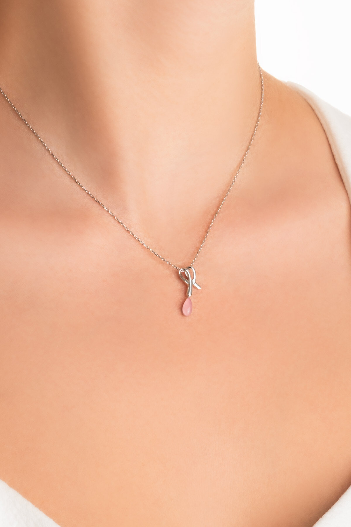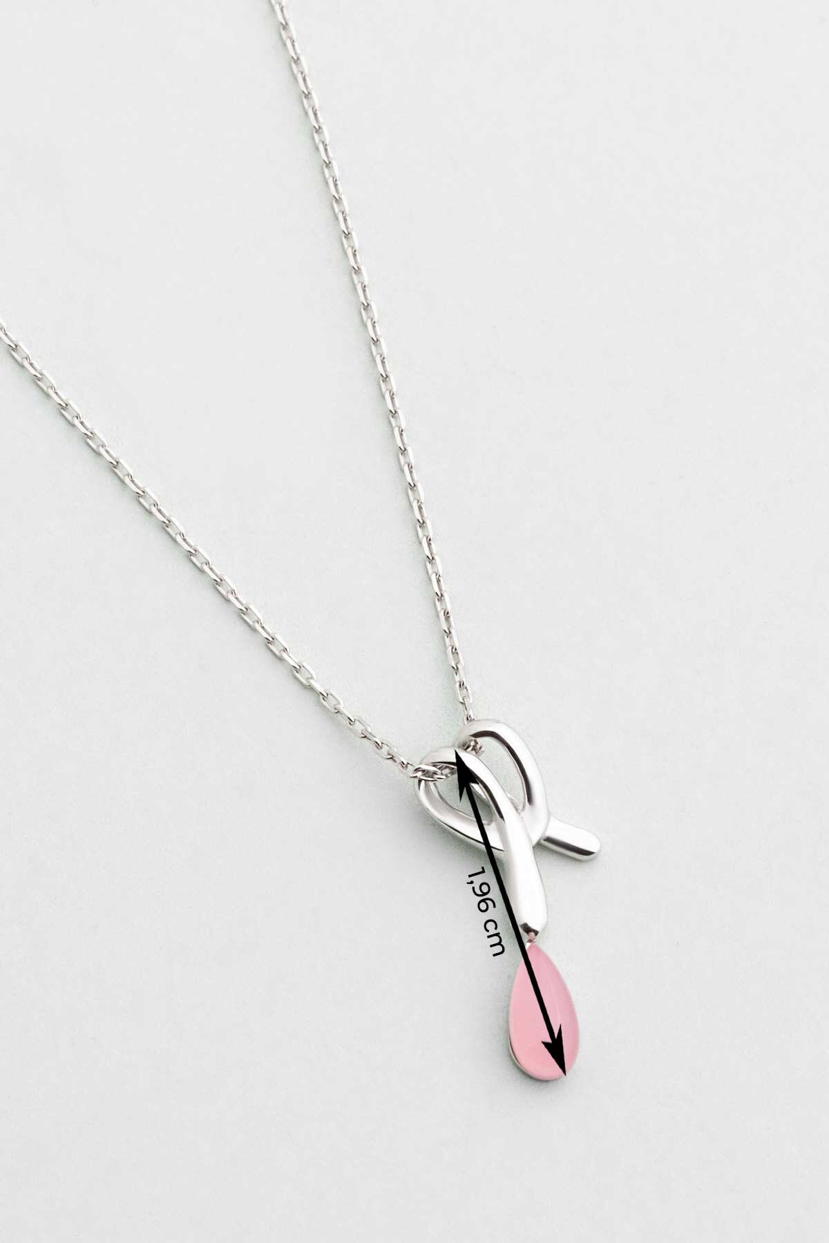 Pembe Kalsedon Taşlı Beyaz Altın Kaplama