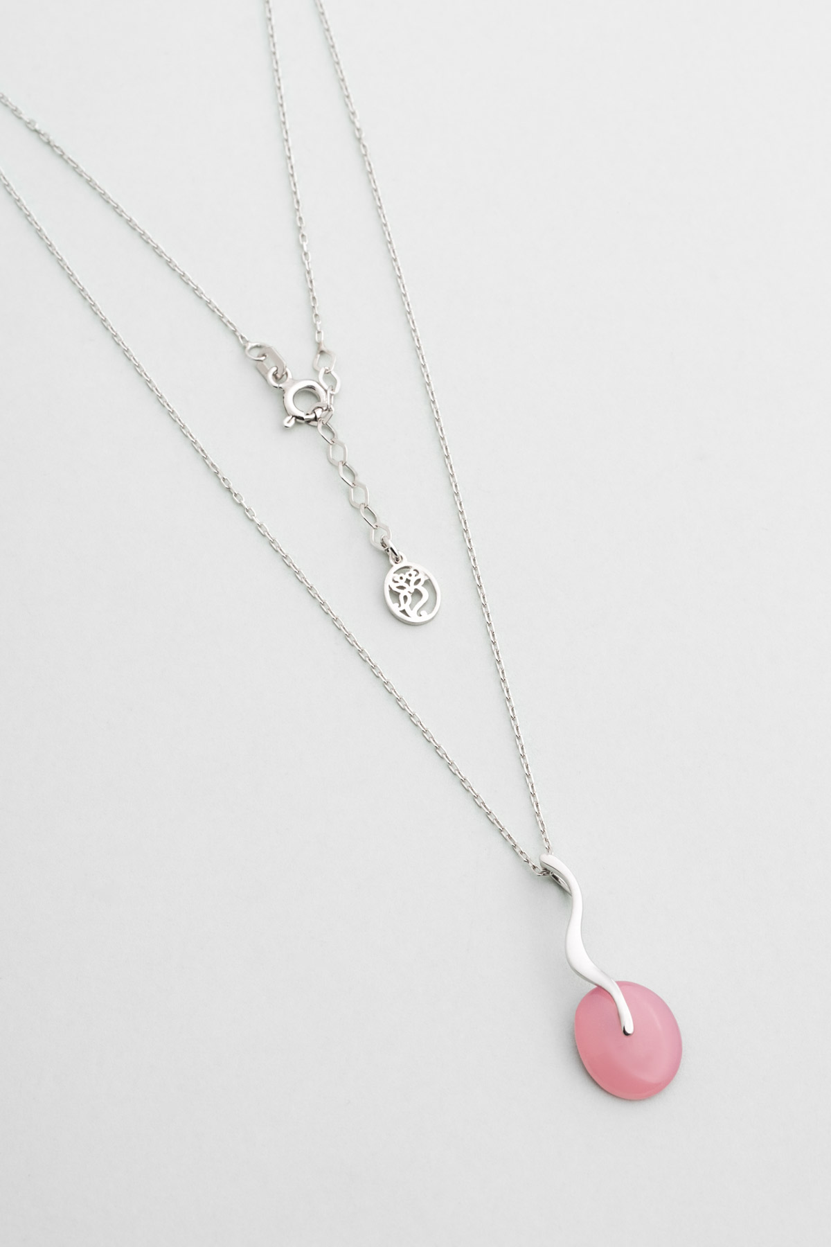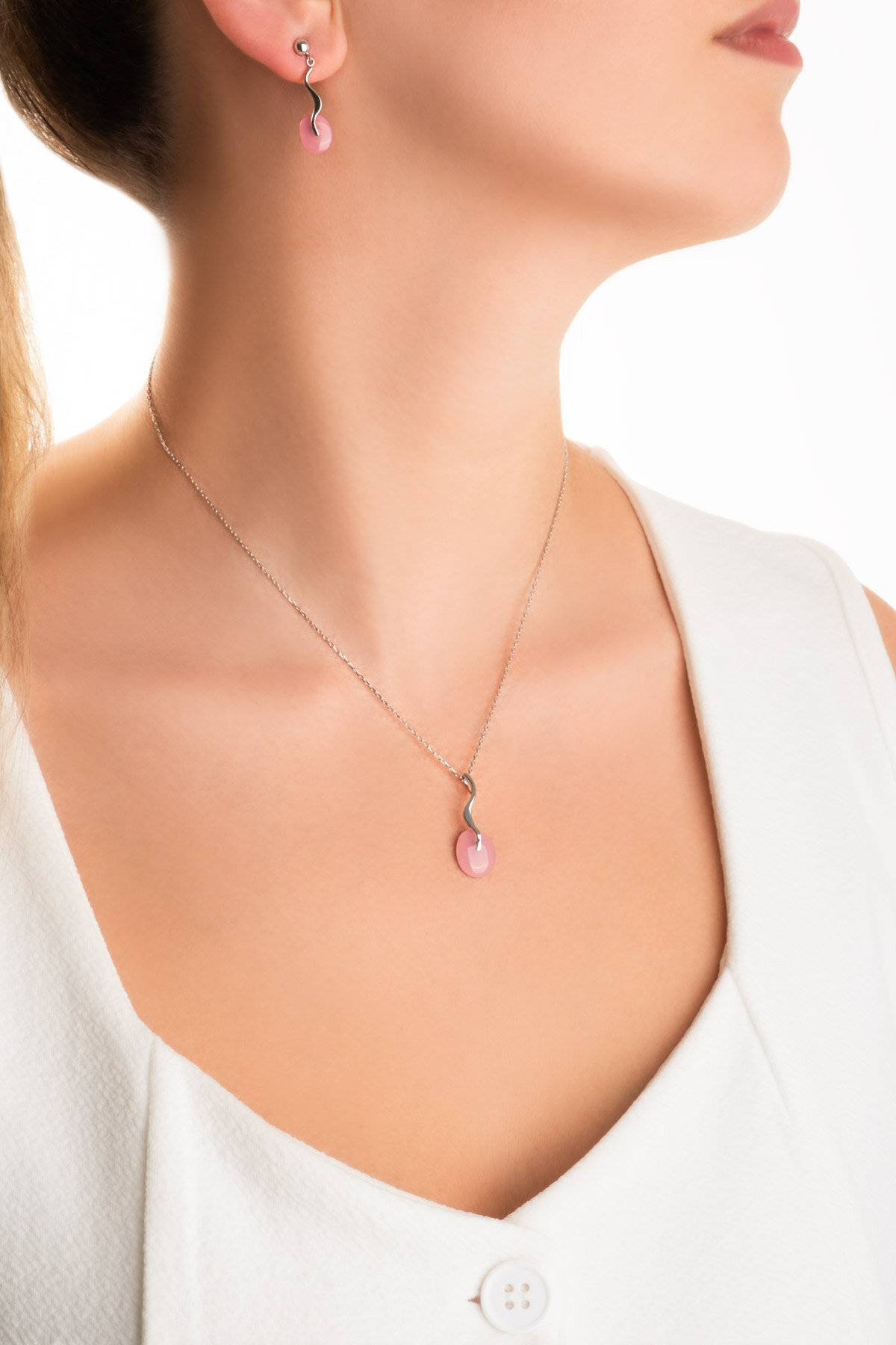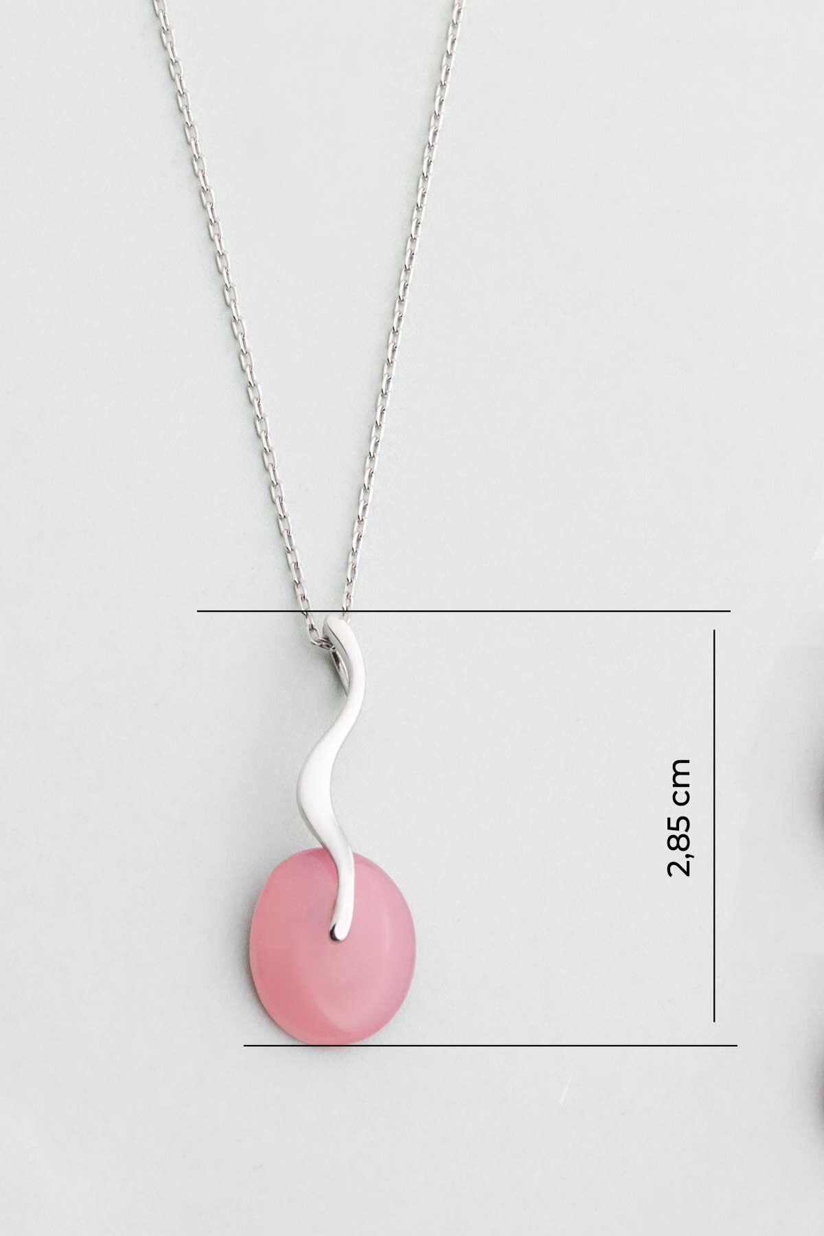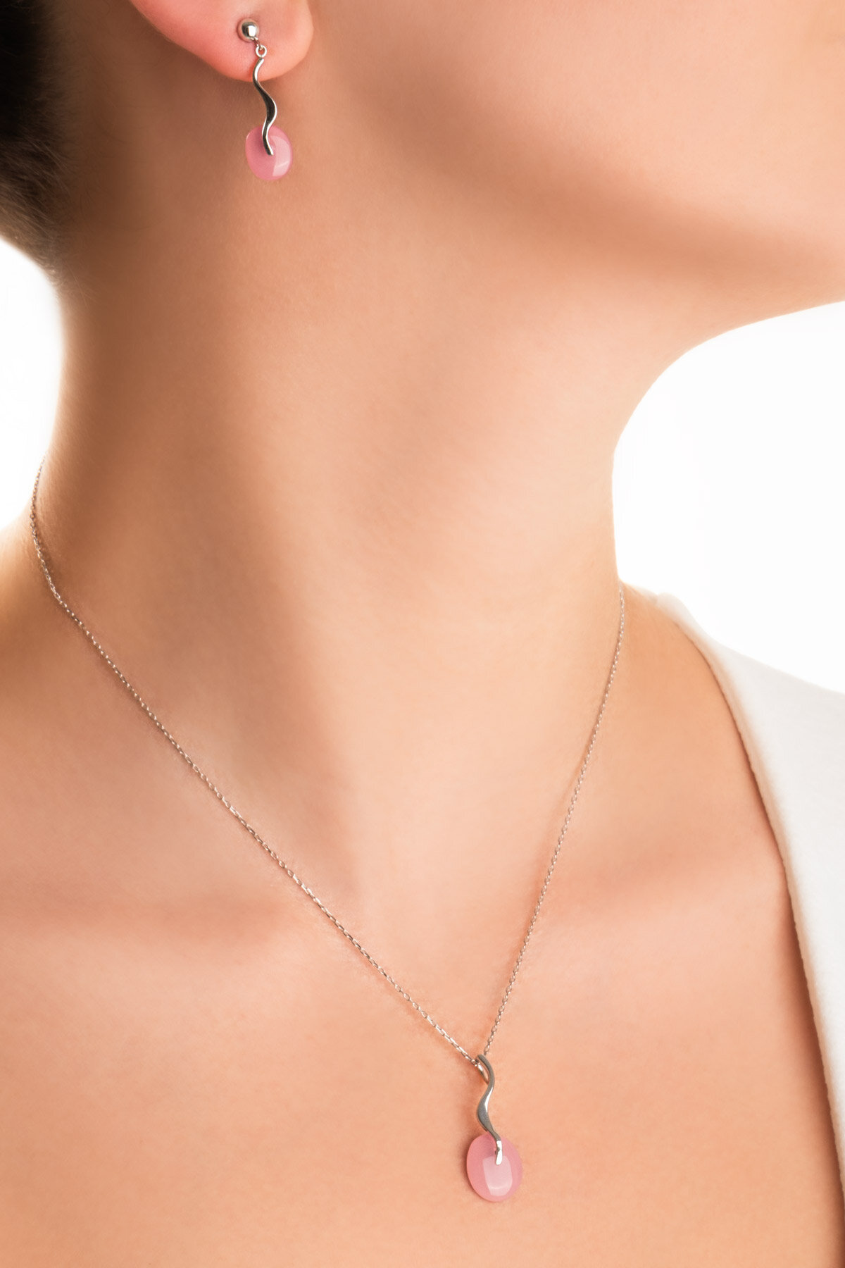 Pembe Kalsedon Taşlı Beyaz Altın Kaplama