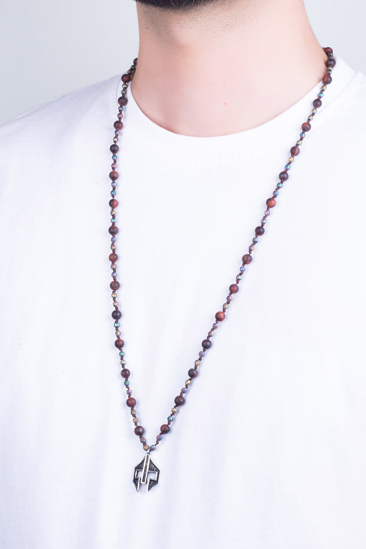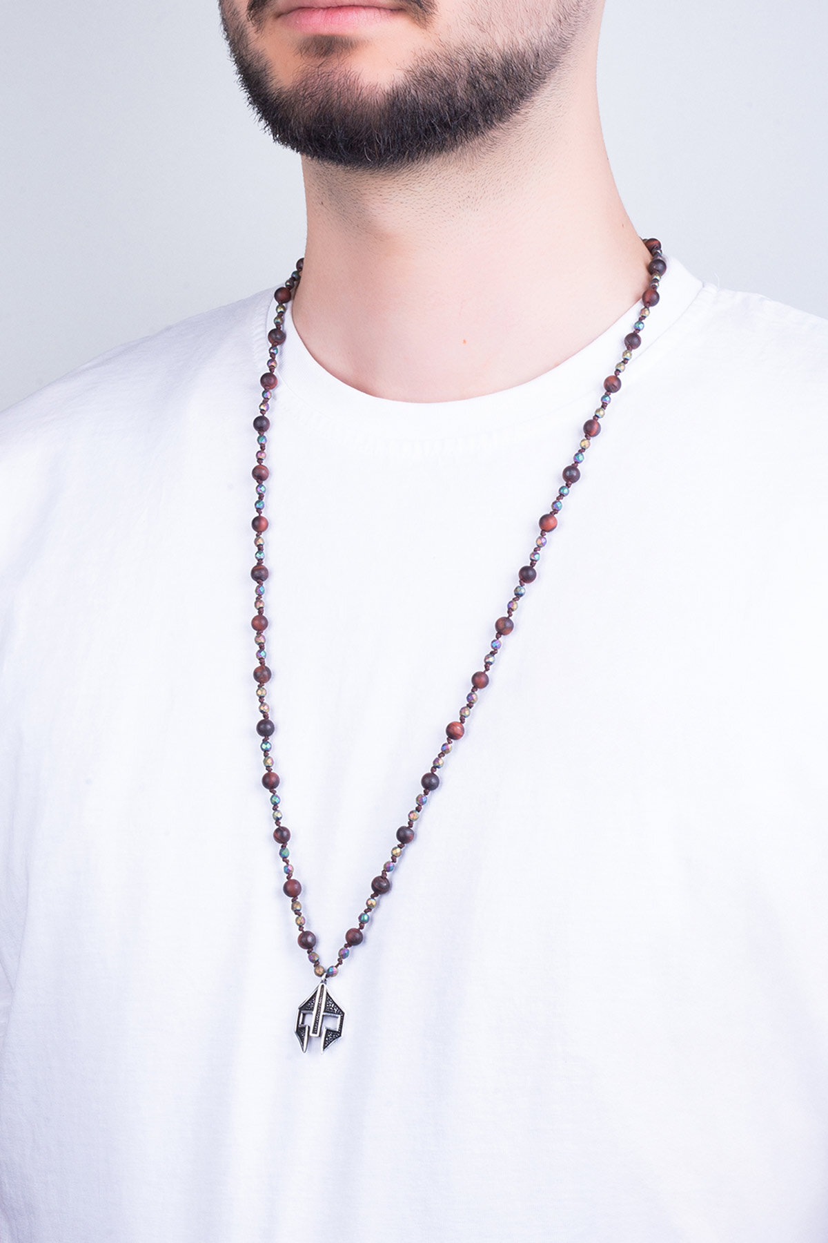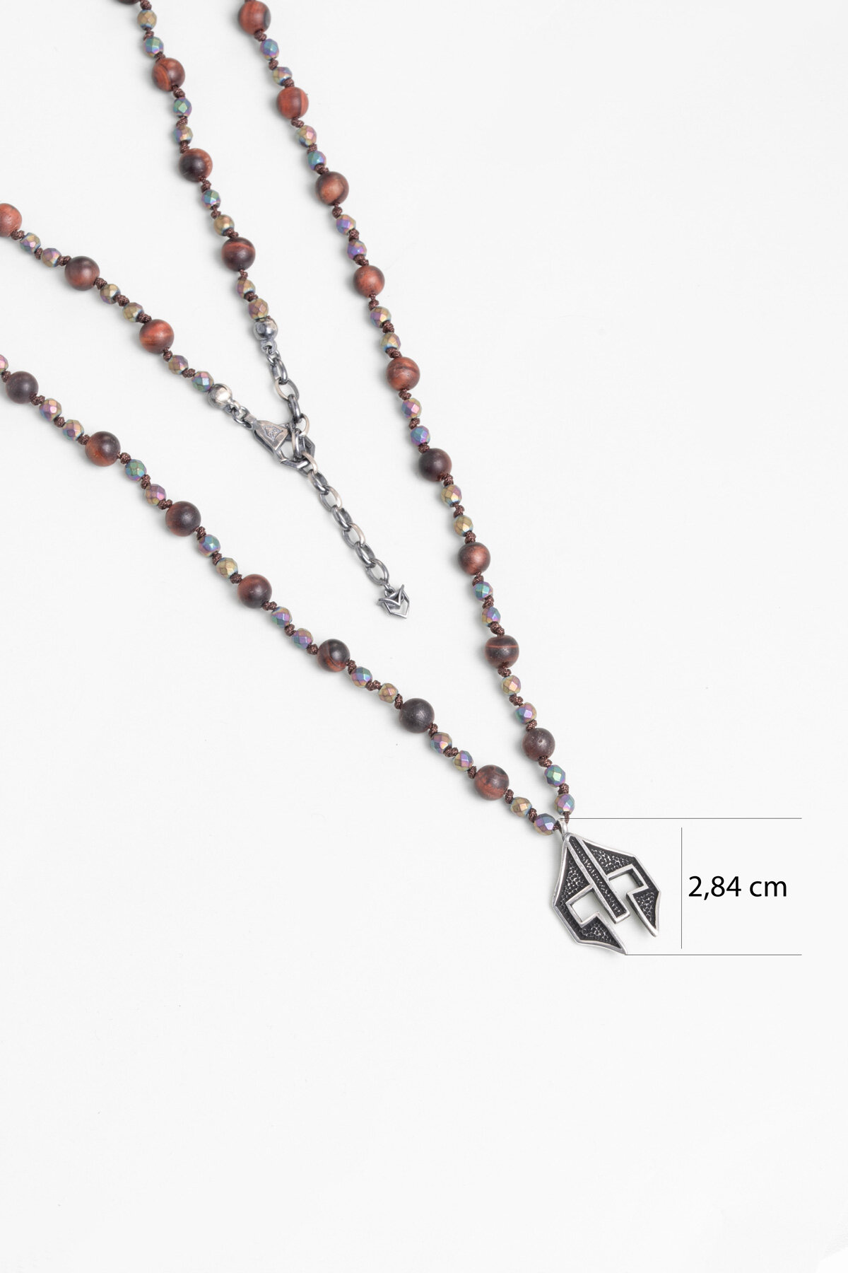 Kaplan Gözü Taşlı Antik Miğfer Figürlü 75 Cm Gümüş Kolye