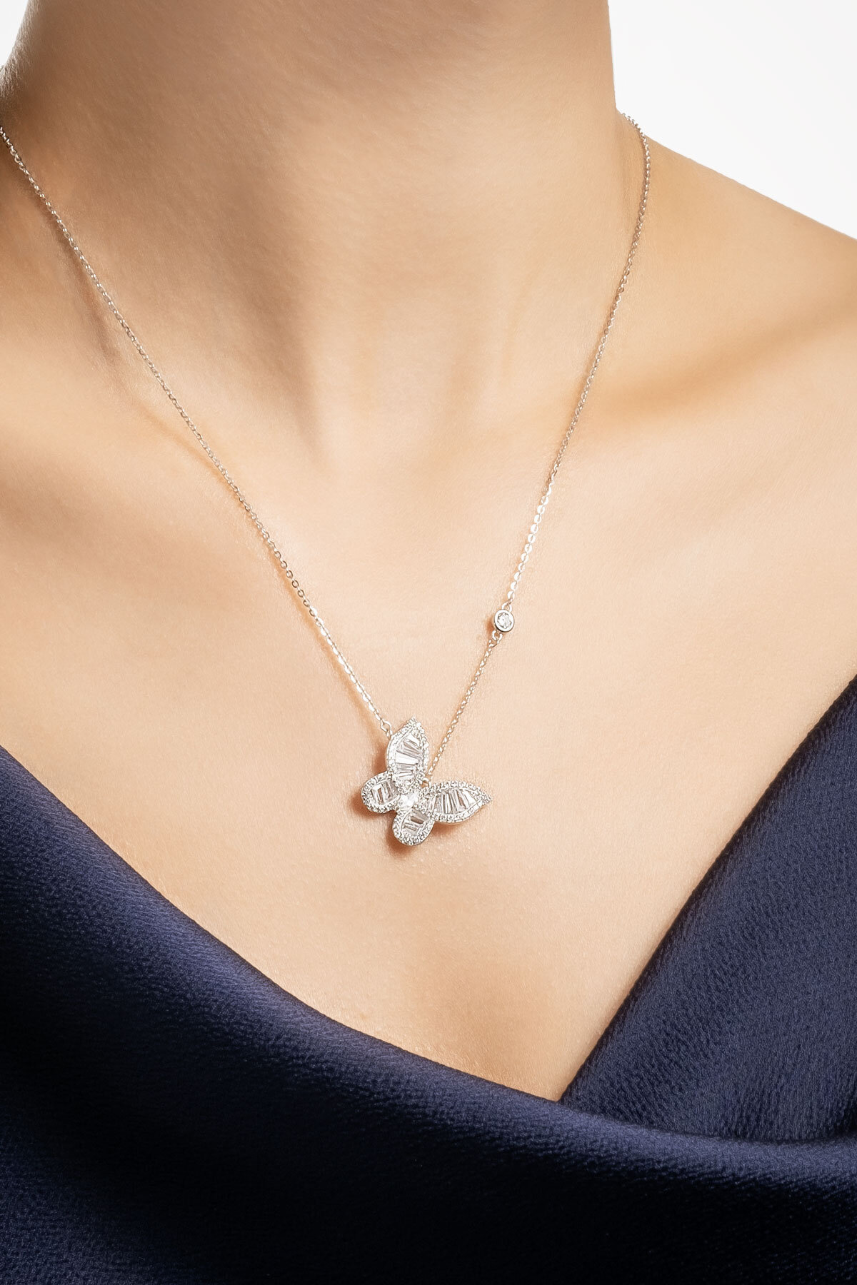 Kelebek kolye, özgürlüğün ve dönüşümün simgesi olarak zarif bir tasarıma sahiptir. Kelebeklerin hafifliği ve güzelliği, bu kolyede hayat bulurken her bir detayı, umut ve yeni başlangıçların özünü taşır.