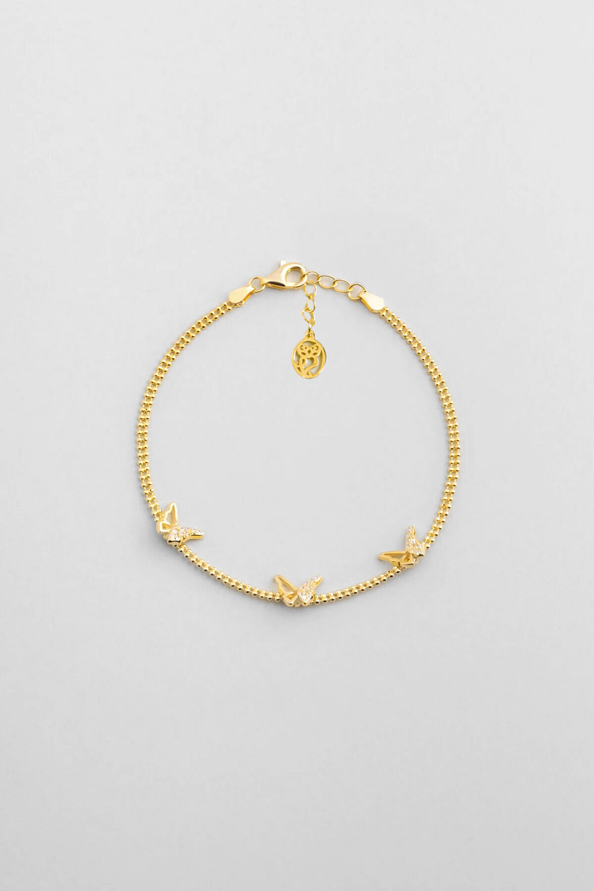 Kelebekler 18 Ayar Sarı Altın Kaplama 19 Cm Gümüş Bileklik