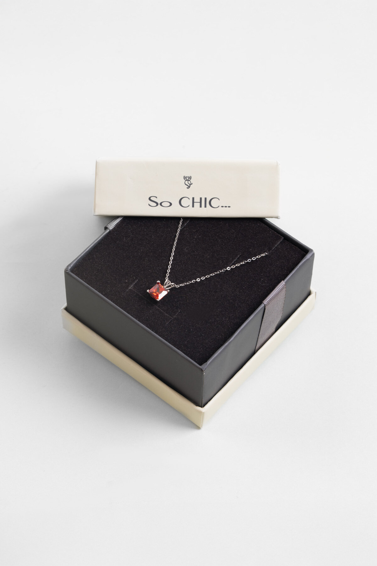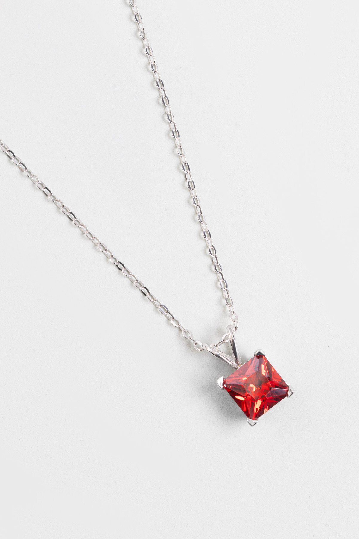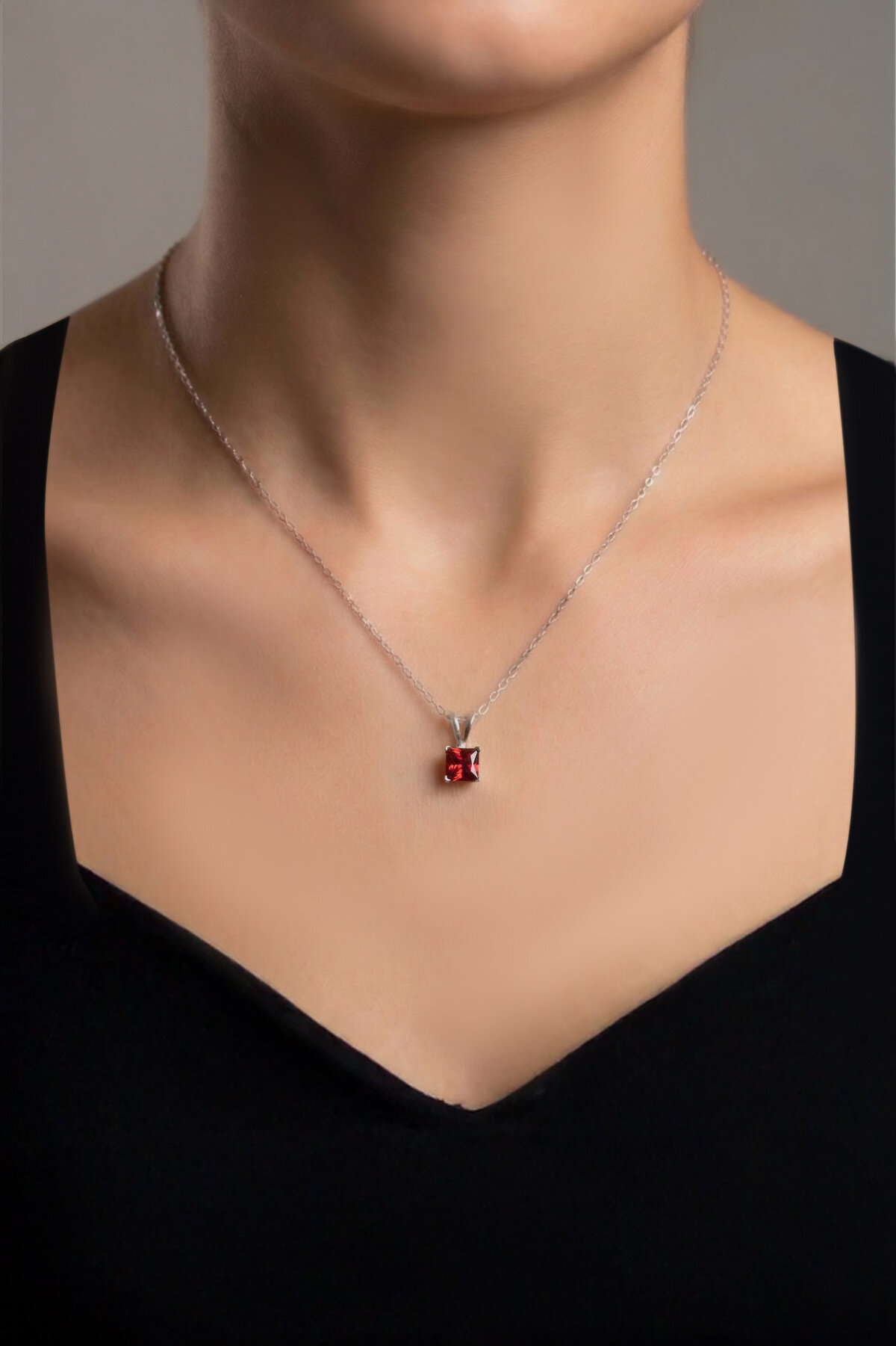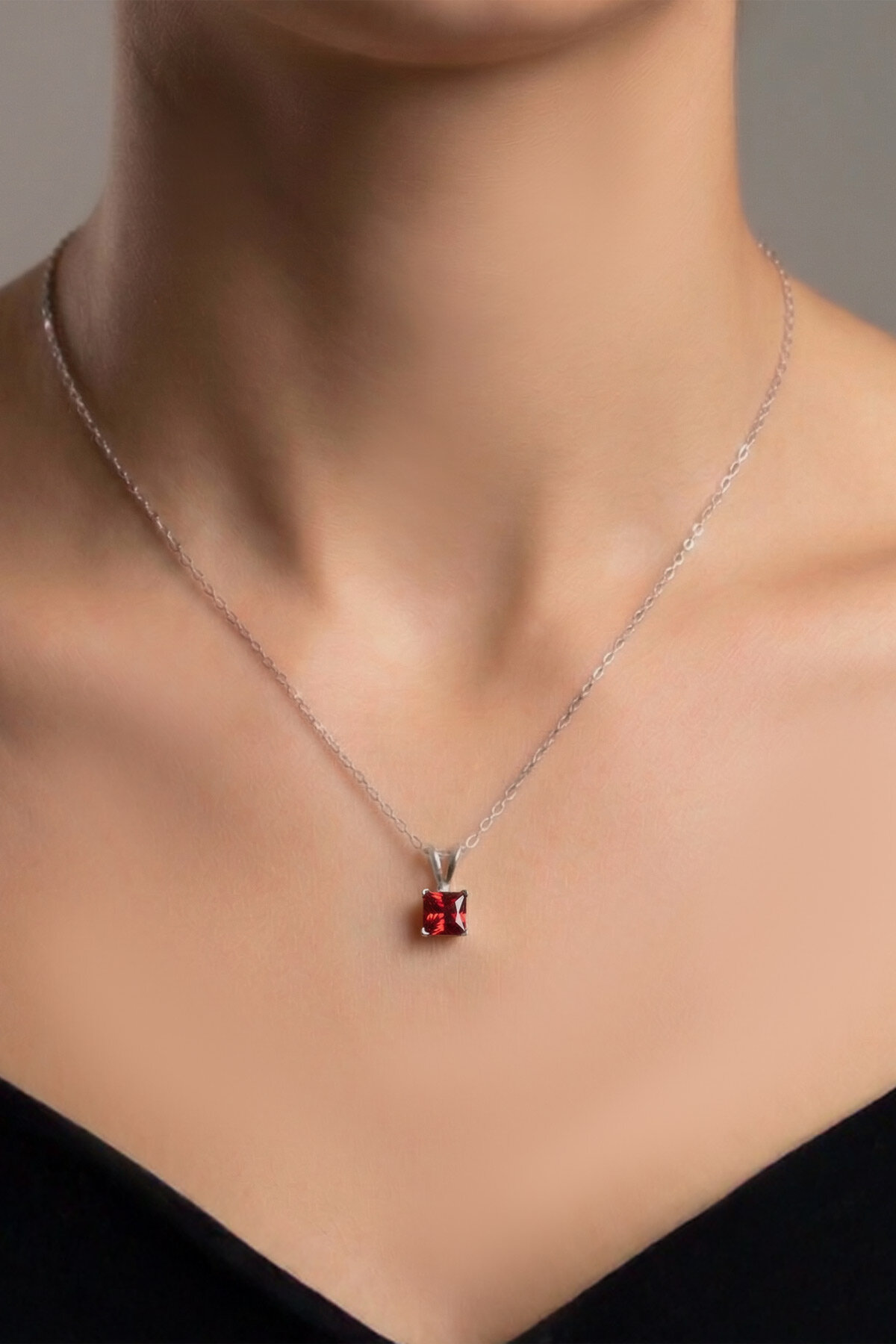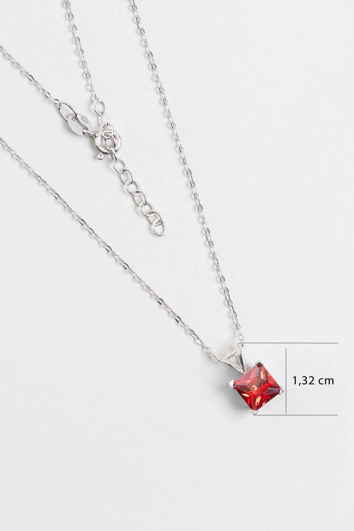 Kırmızı Taşlı 18 Ayar Beyaz Altın Kaplama 43 Cm Gümüş Kolye