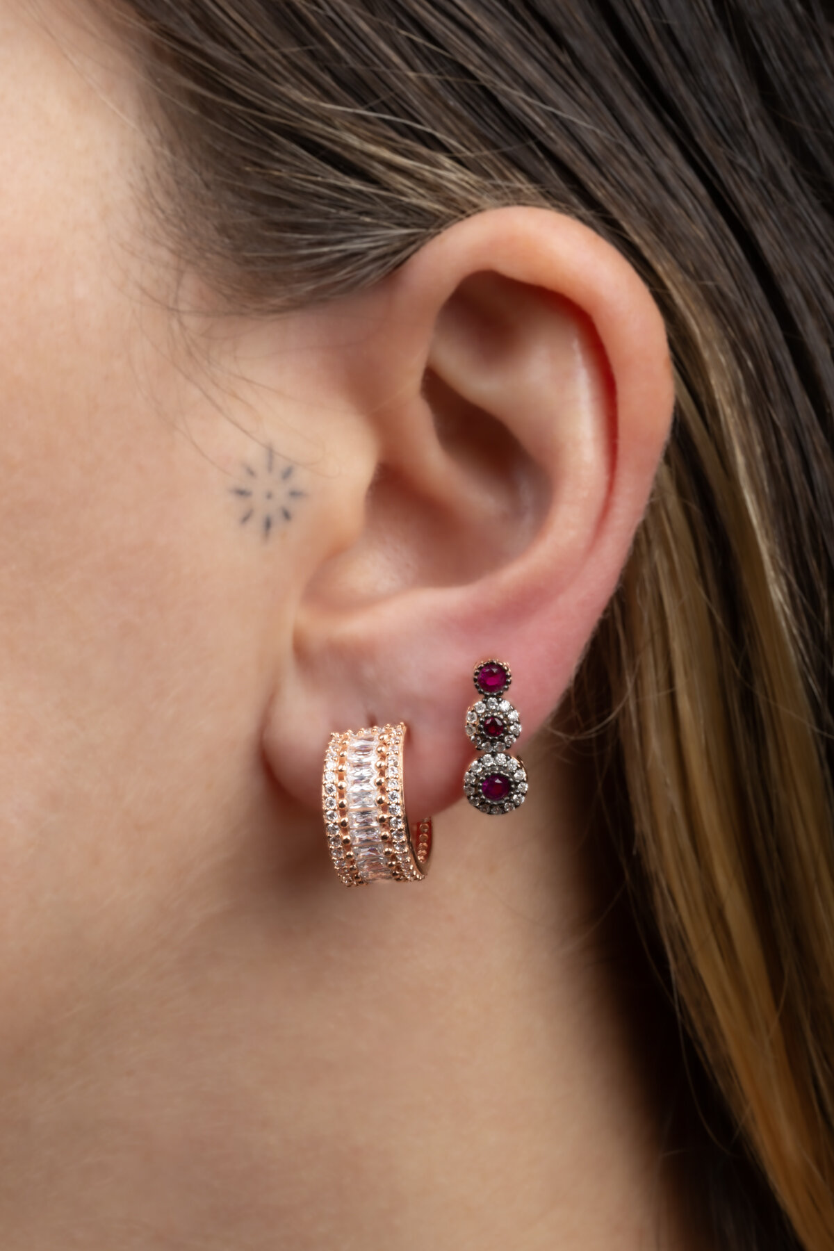 Klasik Stil 18 Ayar Rose Altın Kaplama Gümüş Halka Küpe