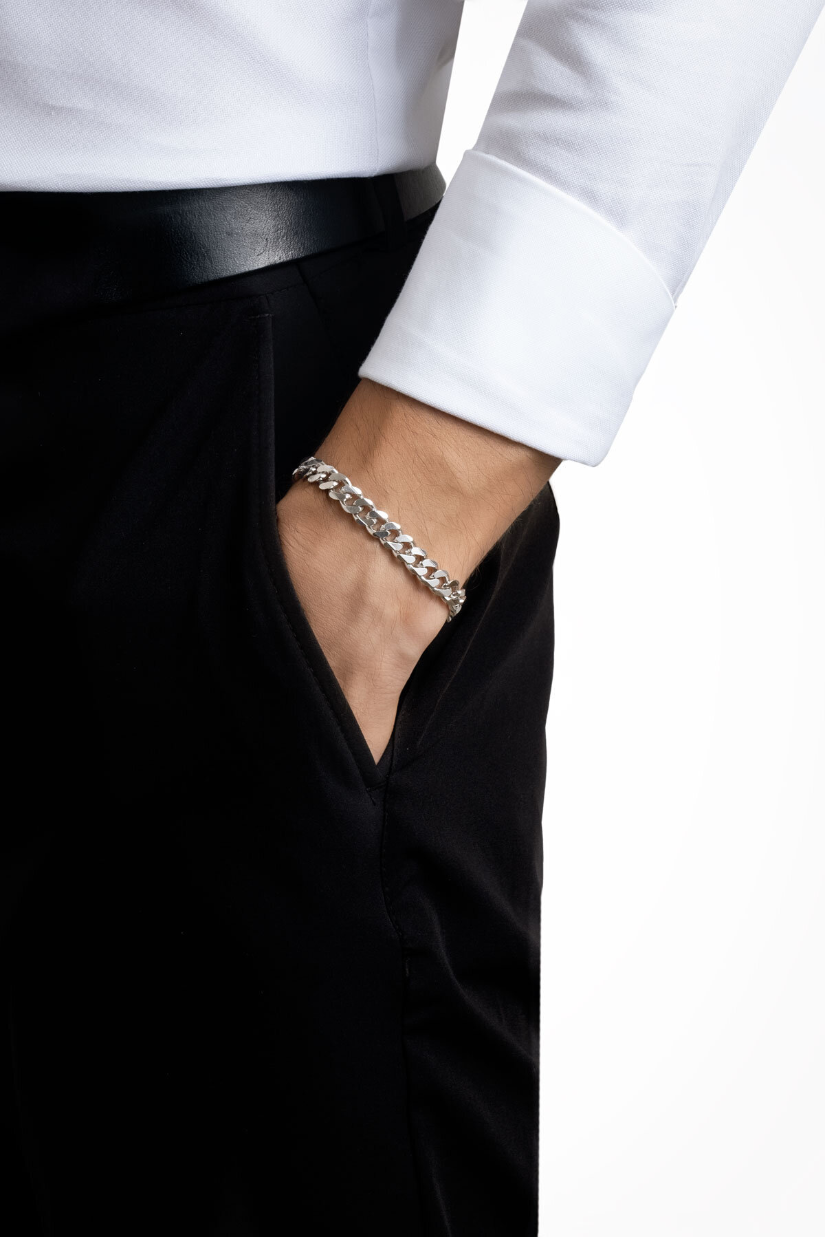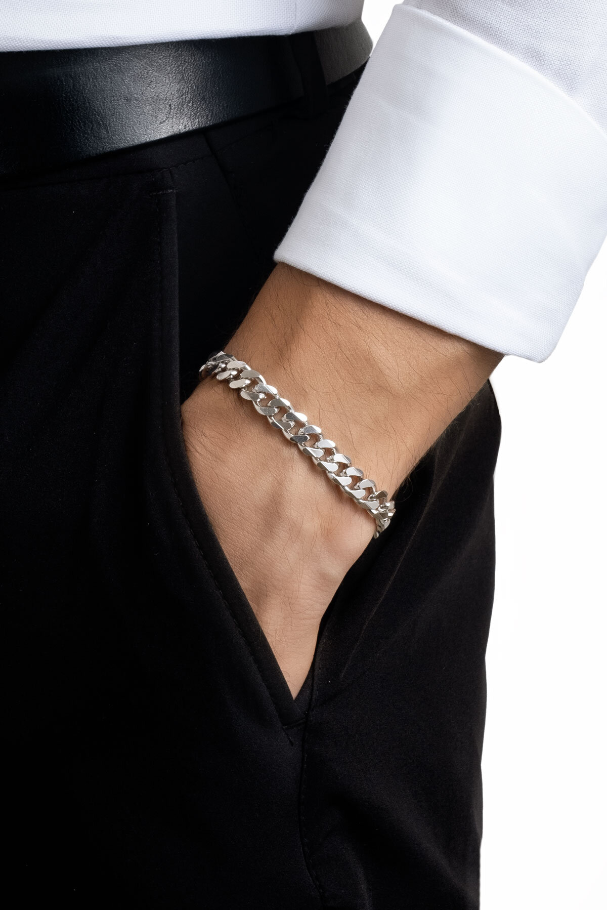 Klasik Stil Gurmet Zincir Gümüş Erkek Bileklik