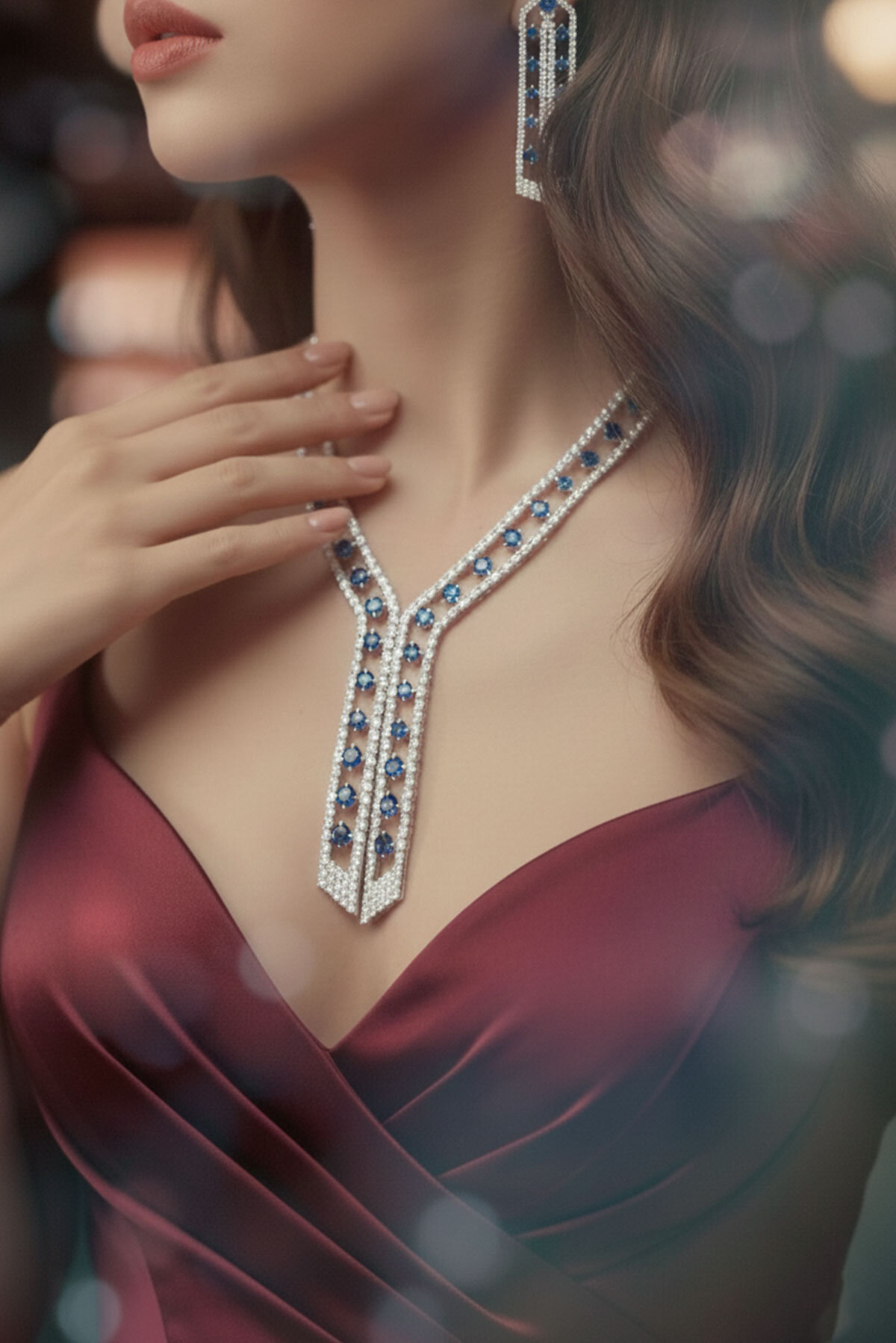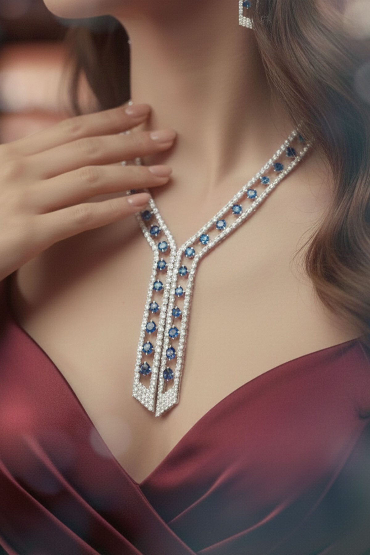 Kraliyet İhtişamı 18 Ayar Beyaz Altın Kaplama 33 Cm Gümüş Tasarım Gerdanlık