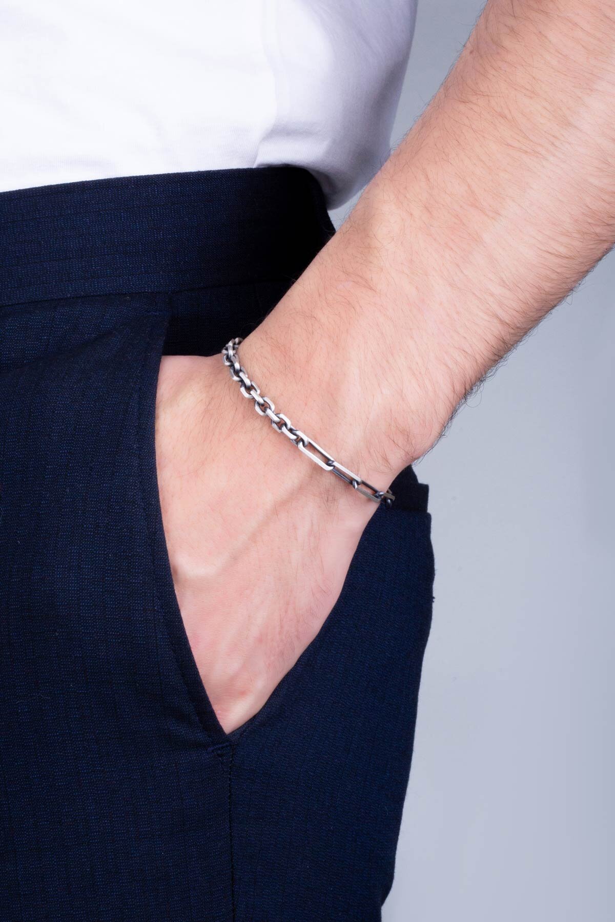 Kratos İtalyan 21 Cm Gun Metal Kaplama Gümüş Erkek Bileklik