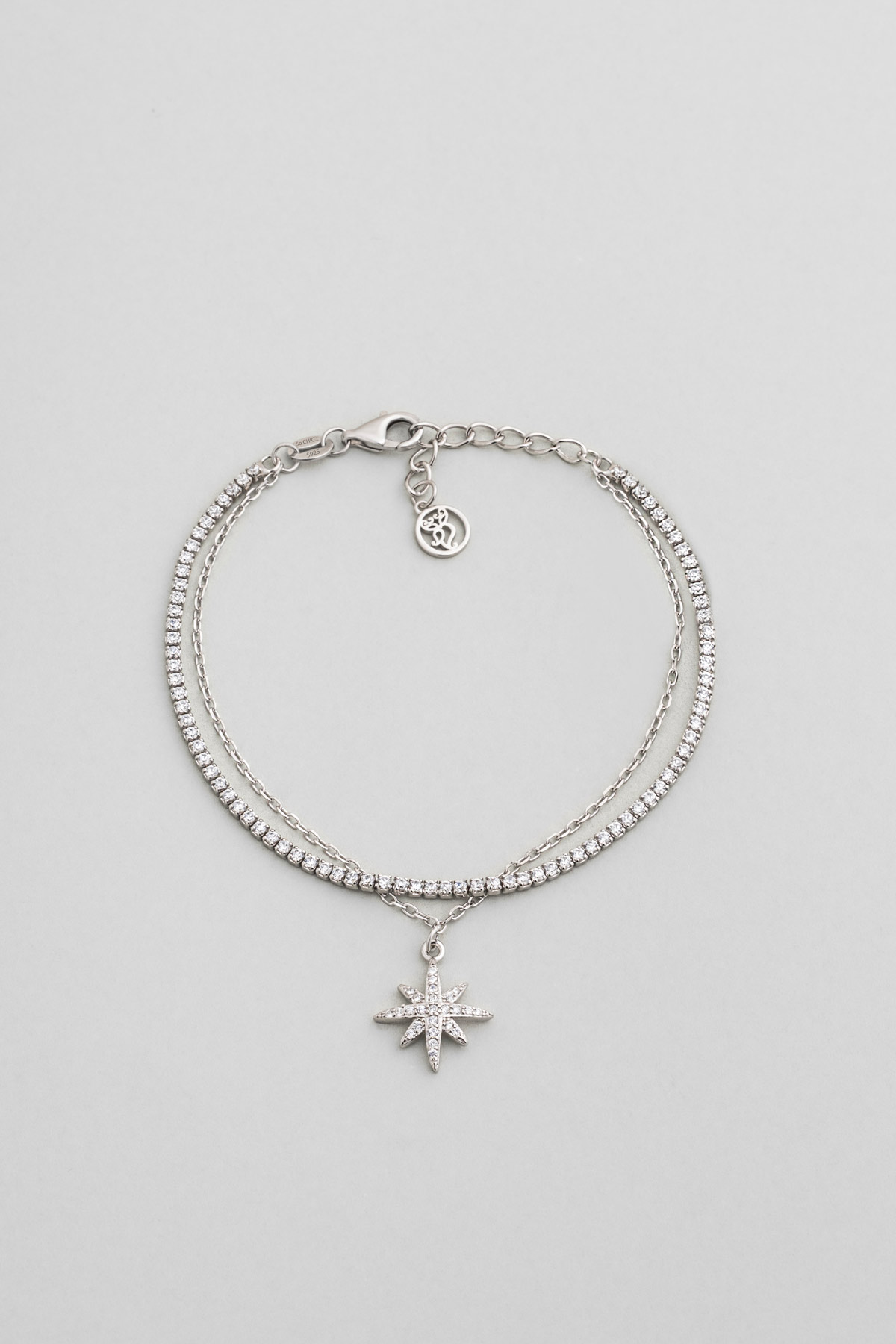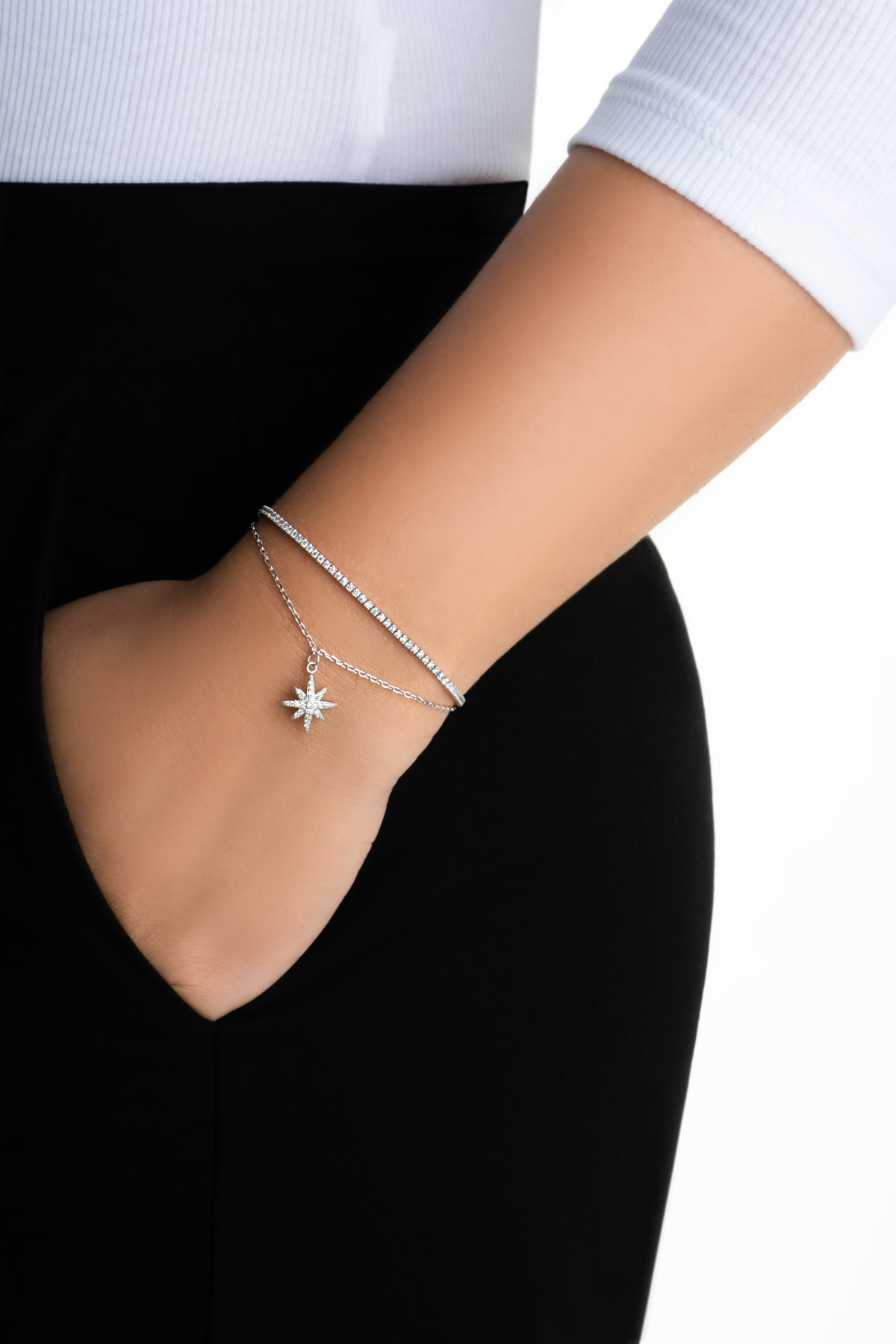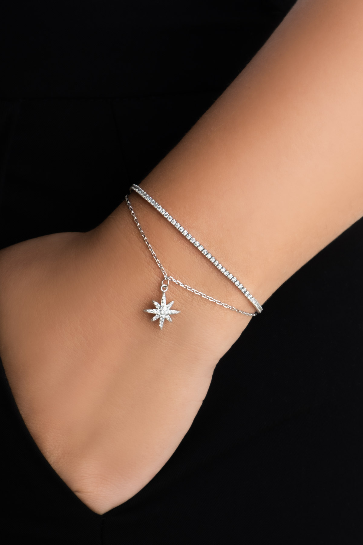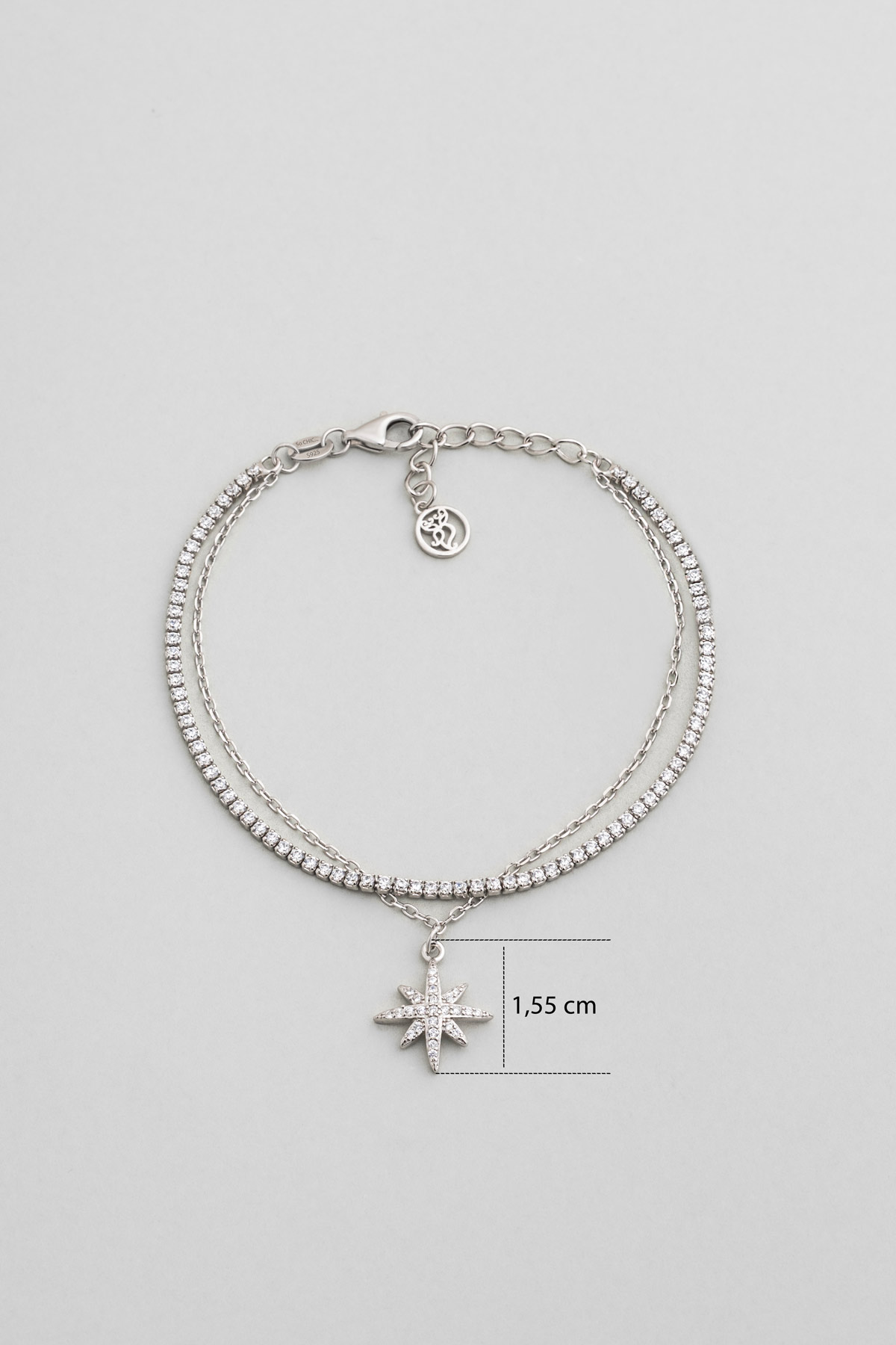 Kutup Yıldızı 18 Ayar Beyaz Altın Kaplama 19 Cm Gümüş İkili Bileklik