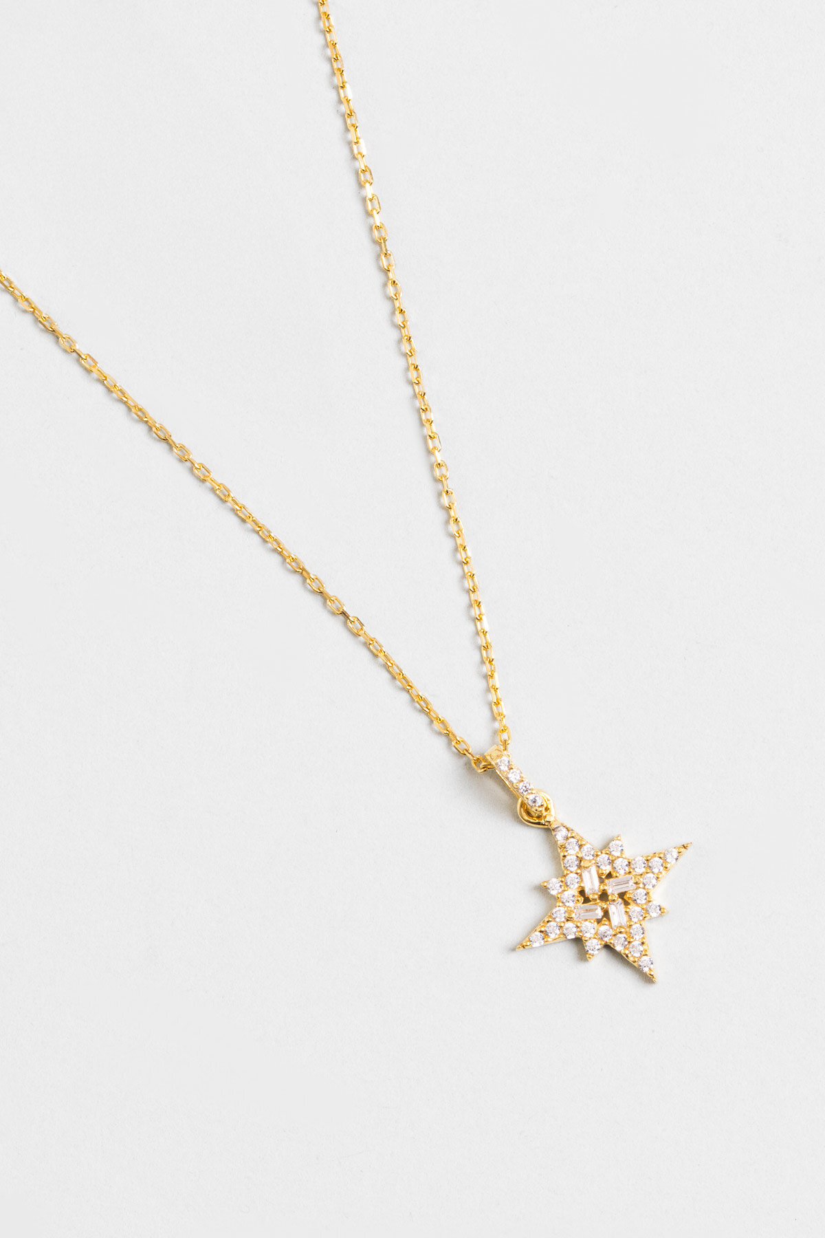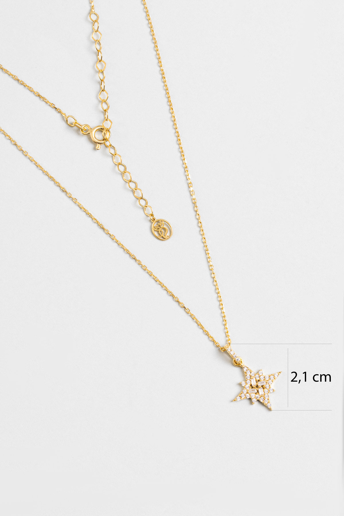 Kutup Yıldızı 18 Ayar Sarı Altın Kaplama 45 Cm Gümüş Minimal Kolye