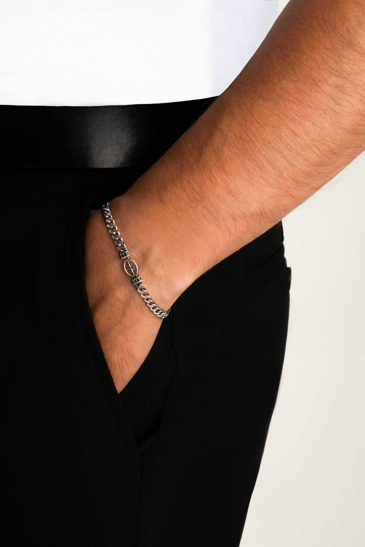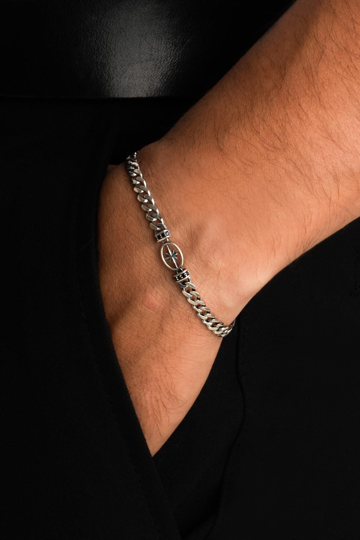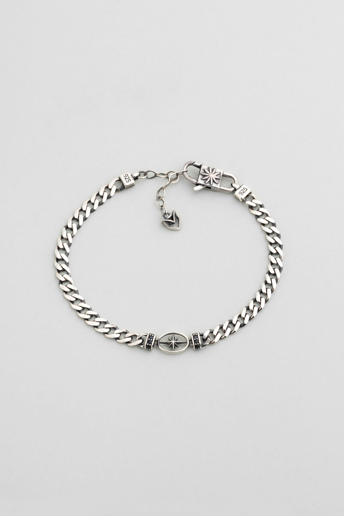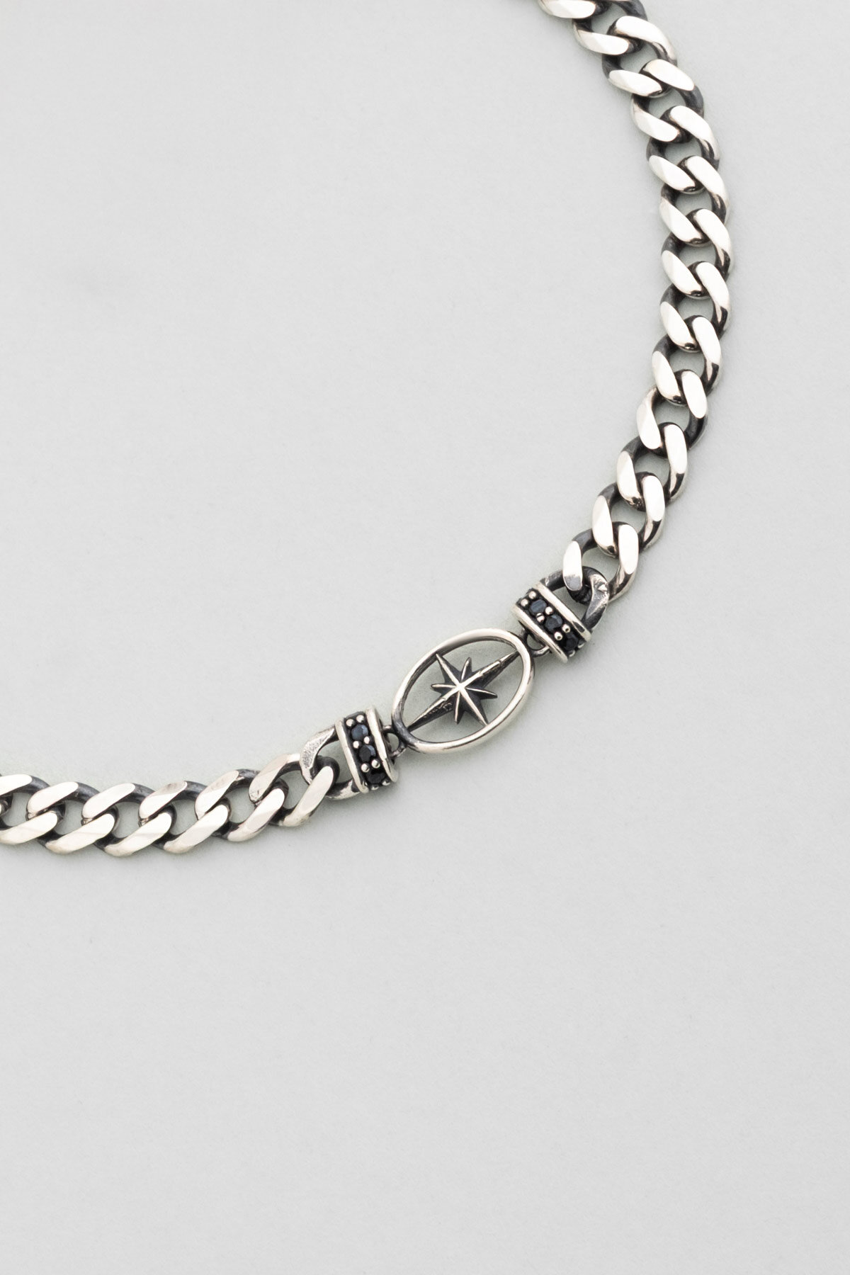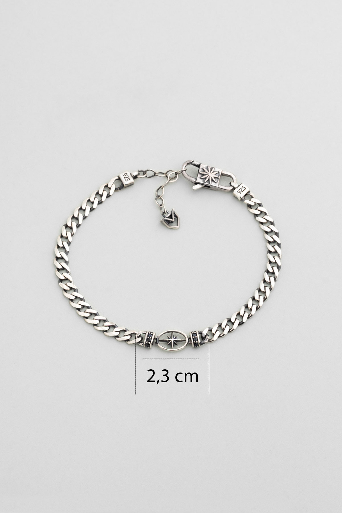 Kuzey Yıldızı Oksit Kaplama 21 Cm Gümüş Erkek Zincir Bileklik