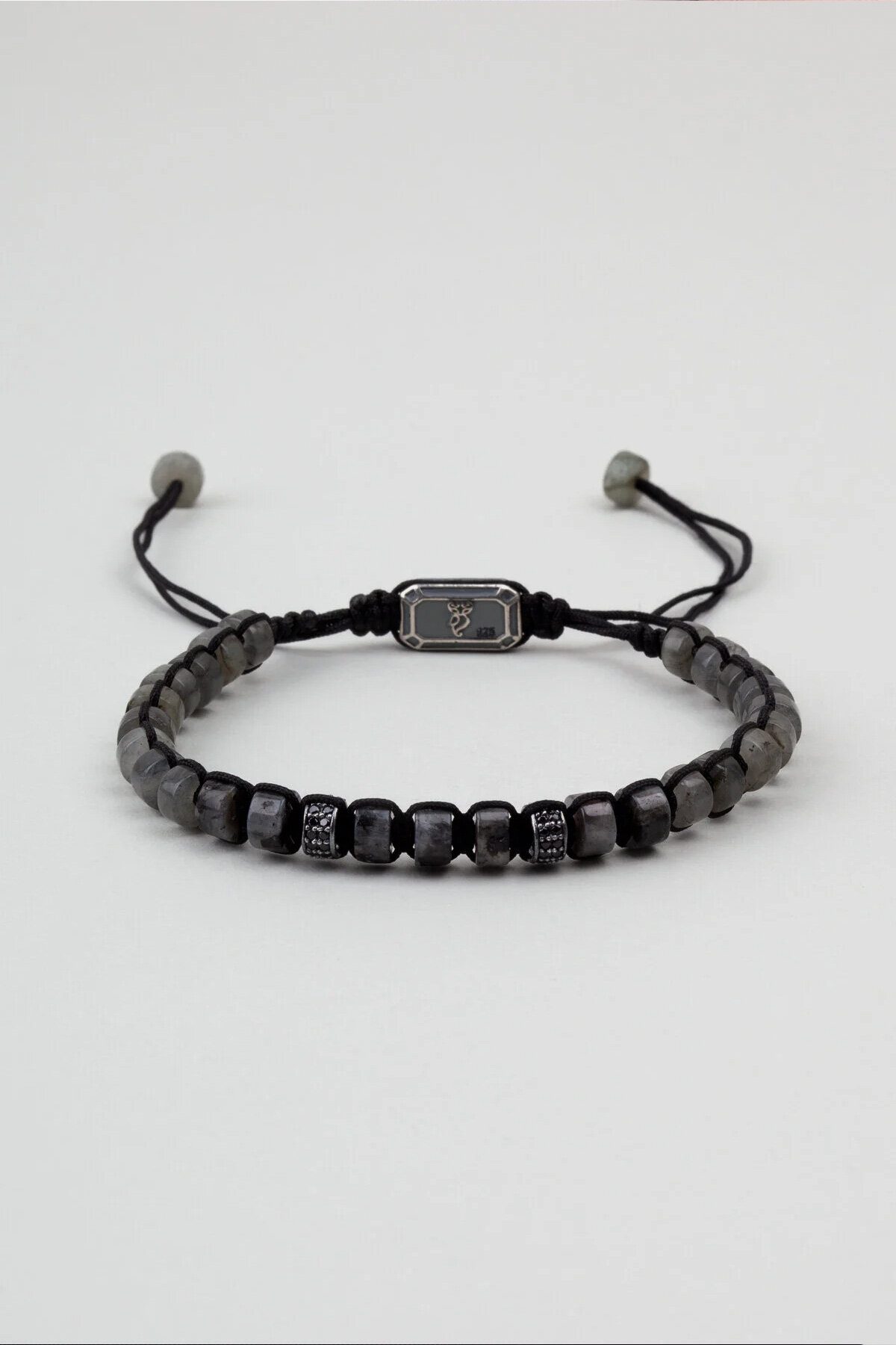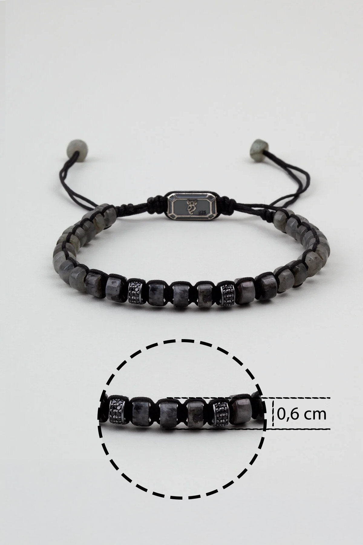 Labradorit Taşlı Ayarlanabilir Gümüş Erkek Bileklik
