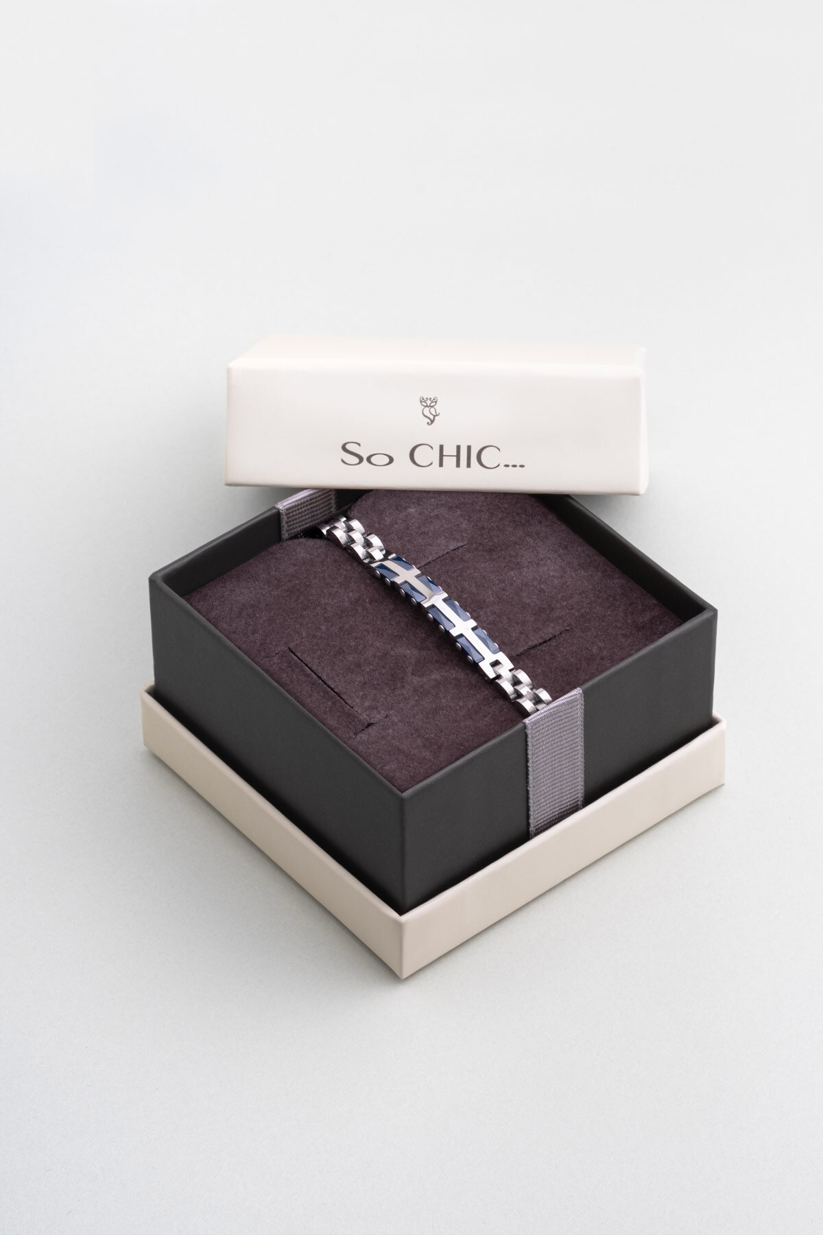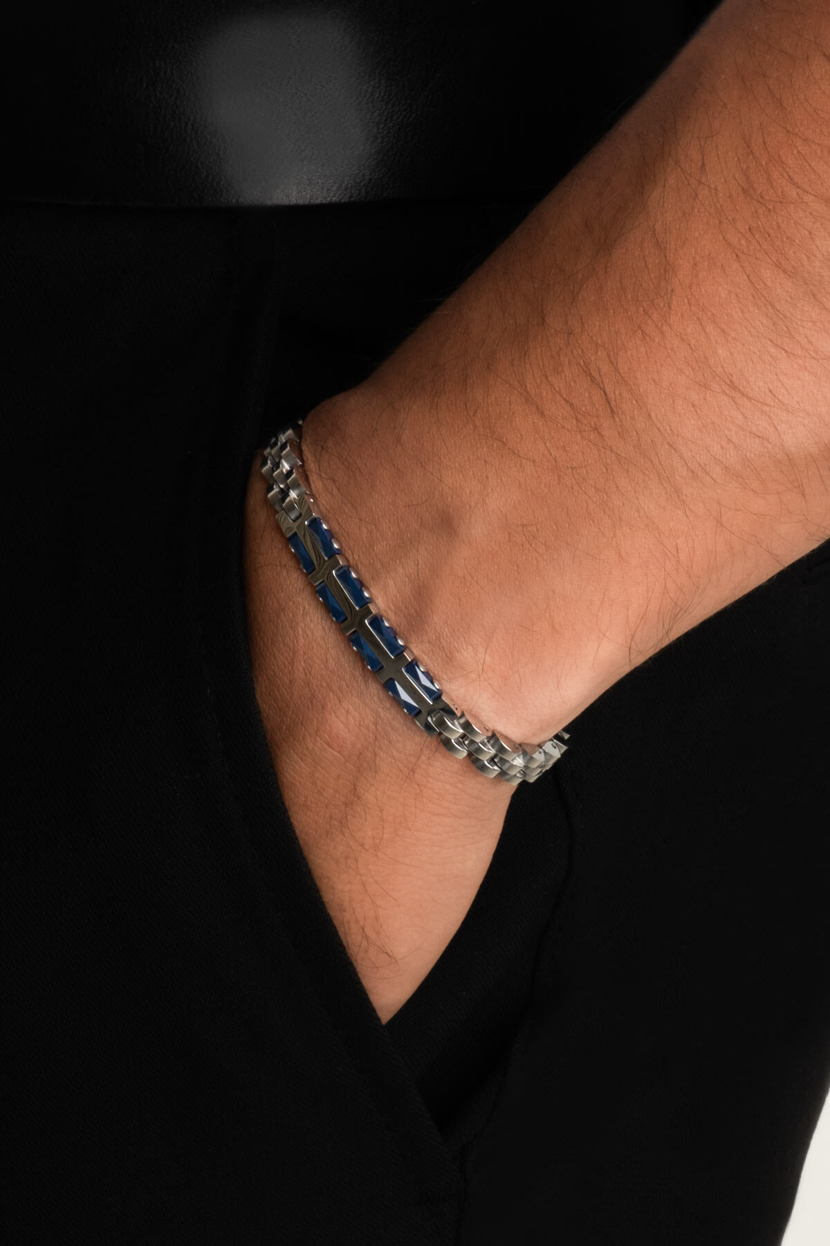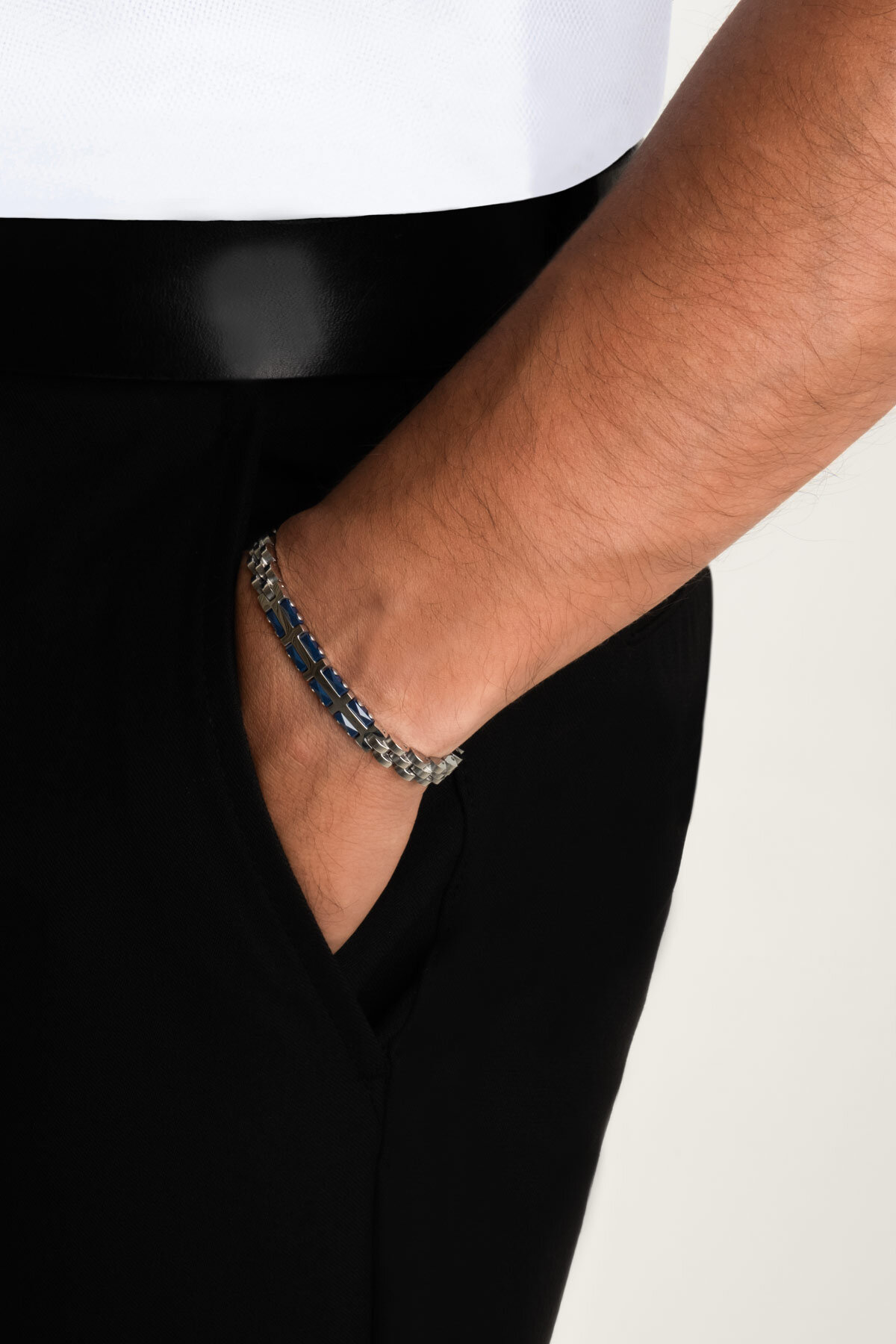 Lacivert Detaylı Erkek 21 Cm Çelik Bileklik