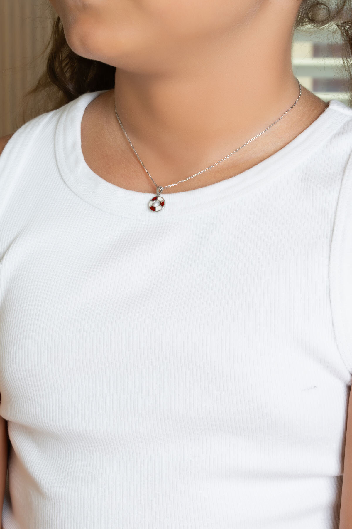 Lifesaver 18 Ayar Beyaz Altın Kaplama Gümüş Çocuk Kolye