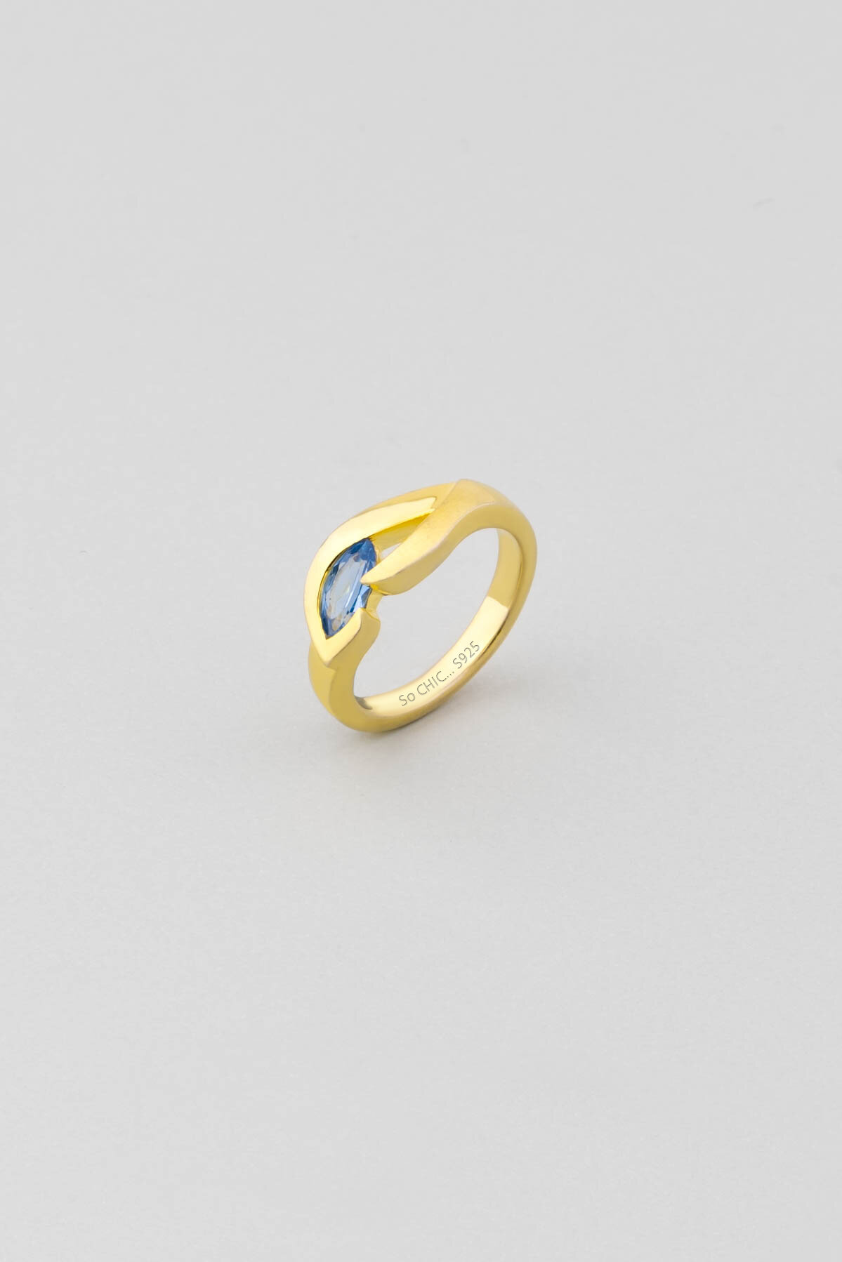 Mavi Büyü 18 Ayar Sarı Altın Kaplama Gümüş Yüzük