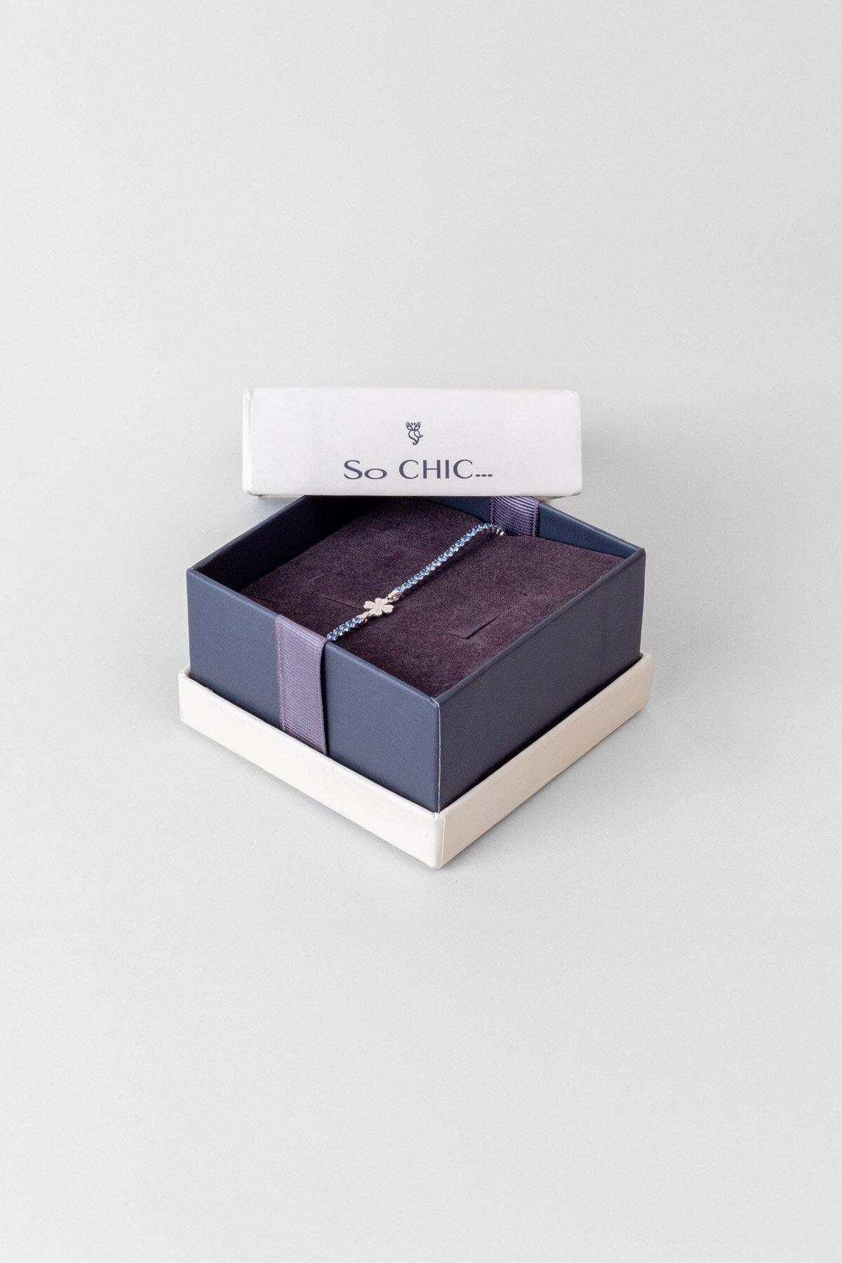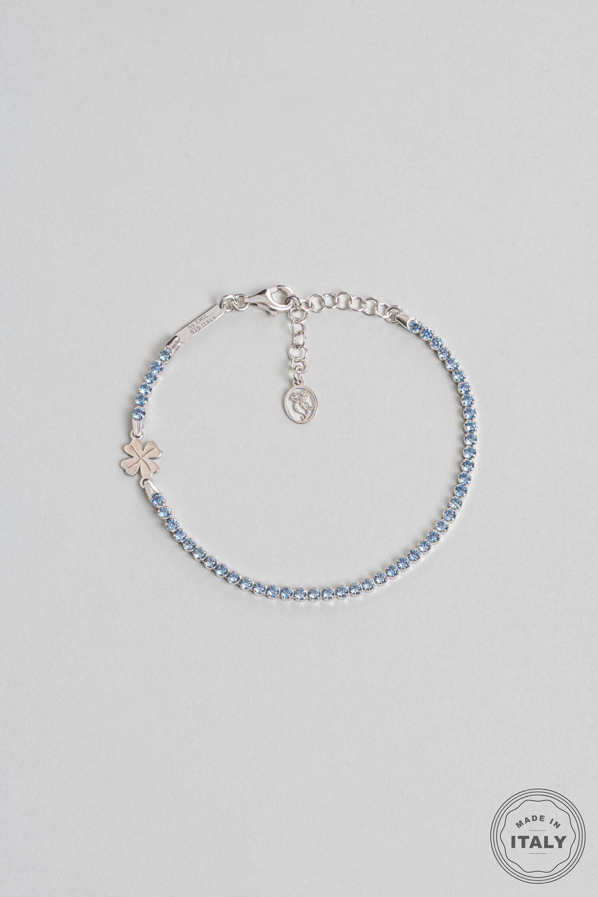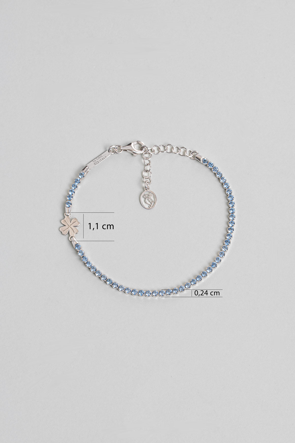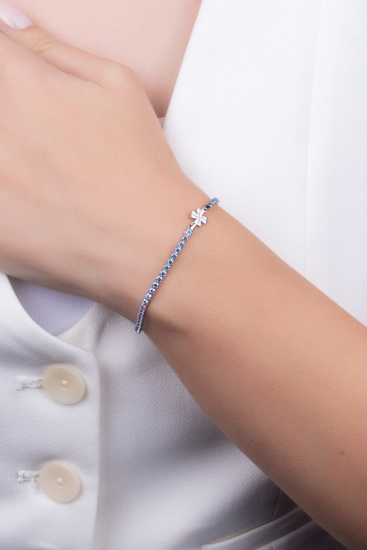 Mavi Yonca İtalyan 18 Ayar Beyaz Altın Kaplama 19 Cm Gümüş Su Yolu Bileklik