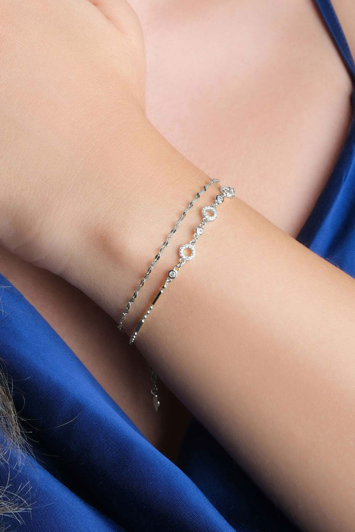 Minimal 18 Ayar Beyaz Altın Kaplama 19 Cm Gümüş Zincir Bileklik