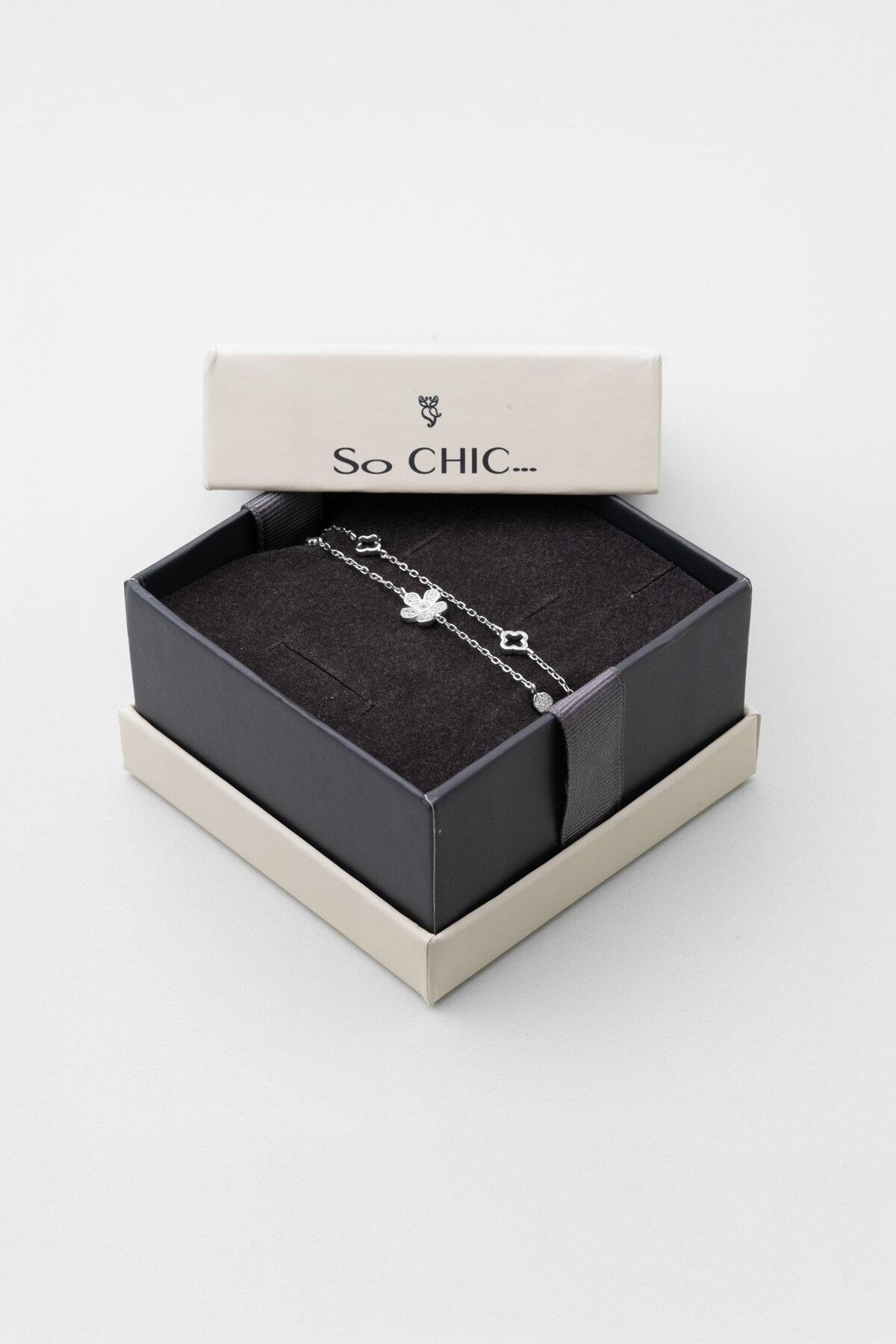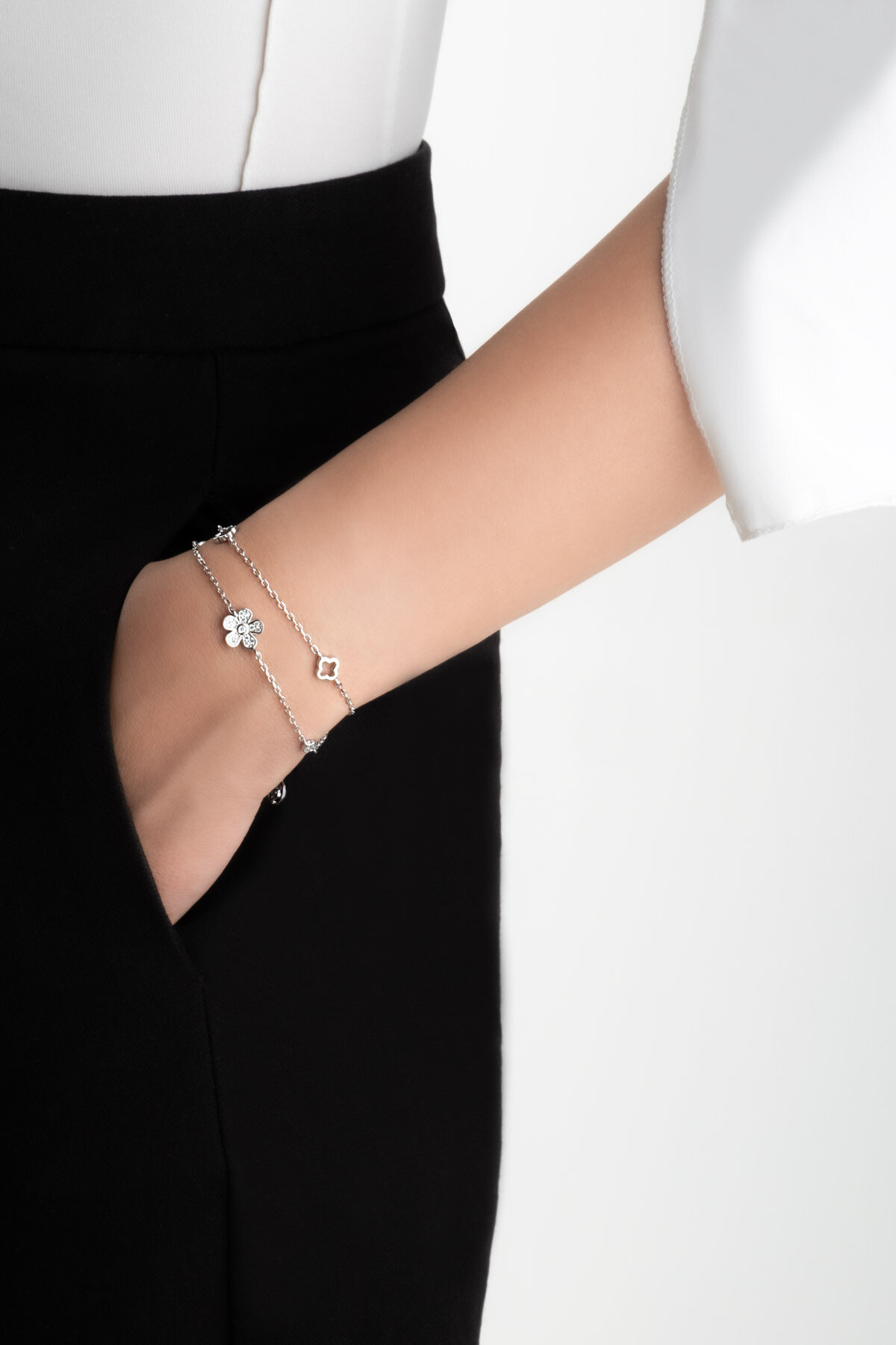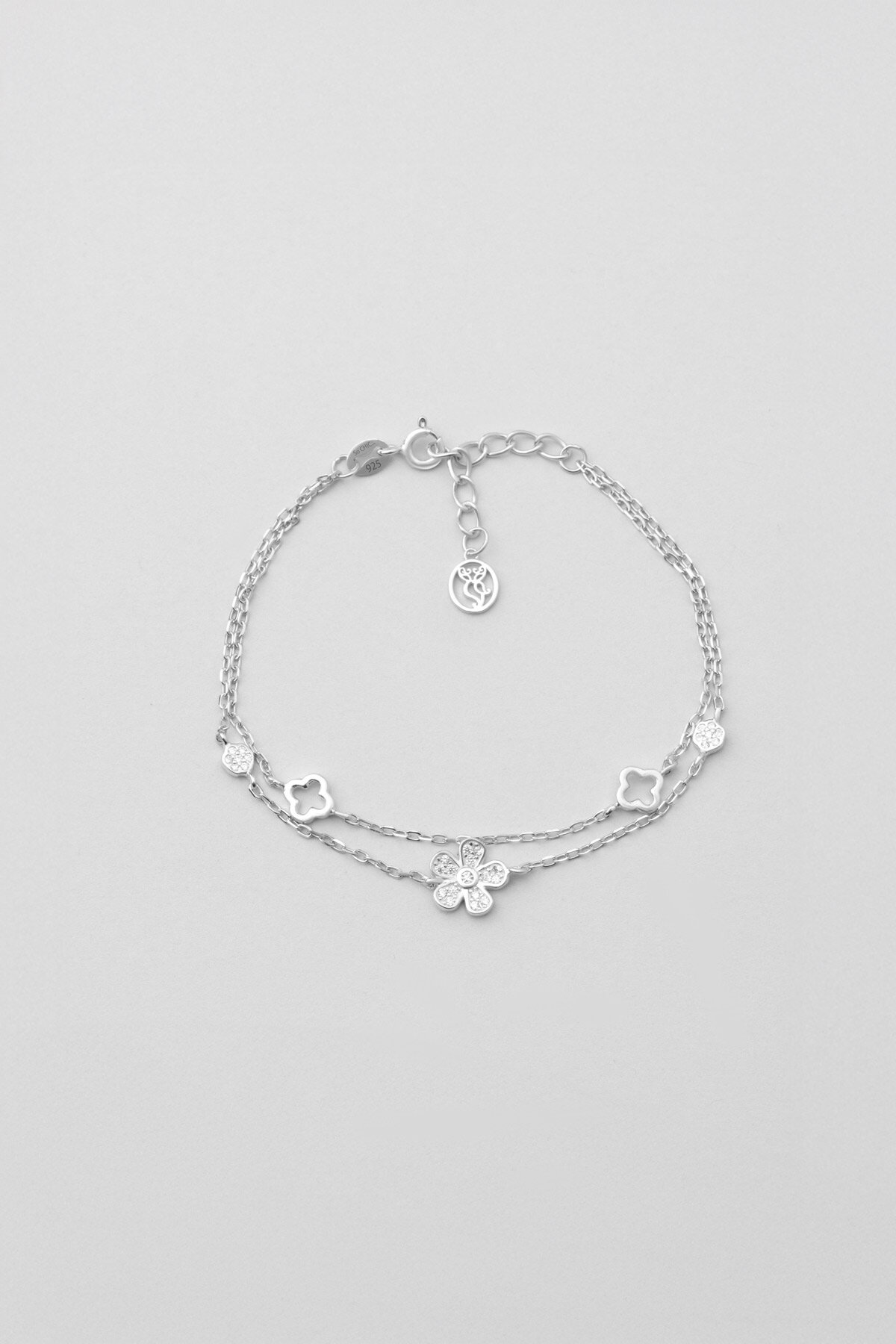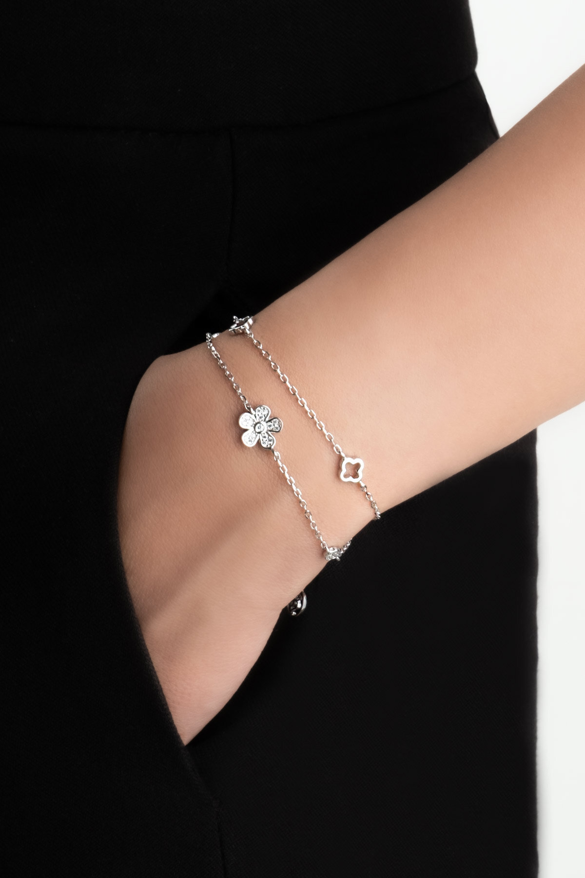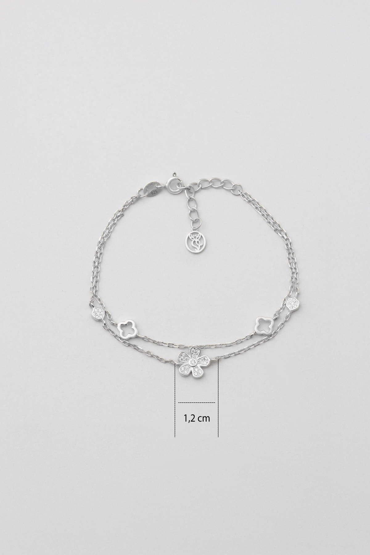 Minimal Çiçek 18 Ayar Beyaz Altın Kaplama 19 Cm Gümüş Bileklik