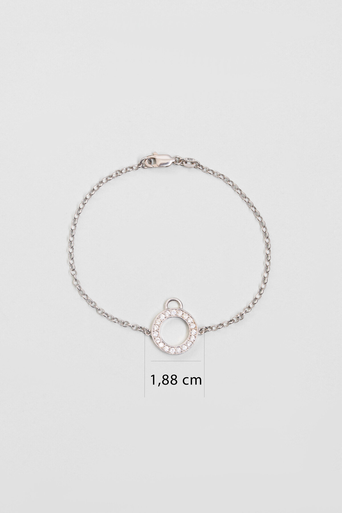 Minimal Halka Bileklik, 18 ayar beyaz altın kaplama gümüş yapısı ve 19 cm uzunluğuyla zarif bir şıklık sunar. Günlük kombinlerde basic tişört ve kotlarla veya iş stilinde blazer ve gömleklerle tamamlayarak minimal ve modern bir görünüm yakalayabilirsiniz.