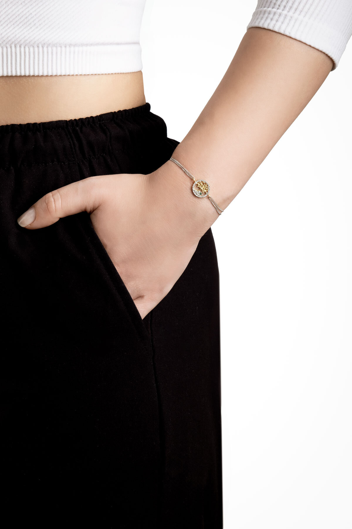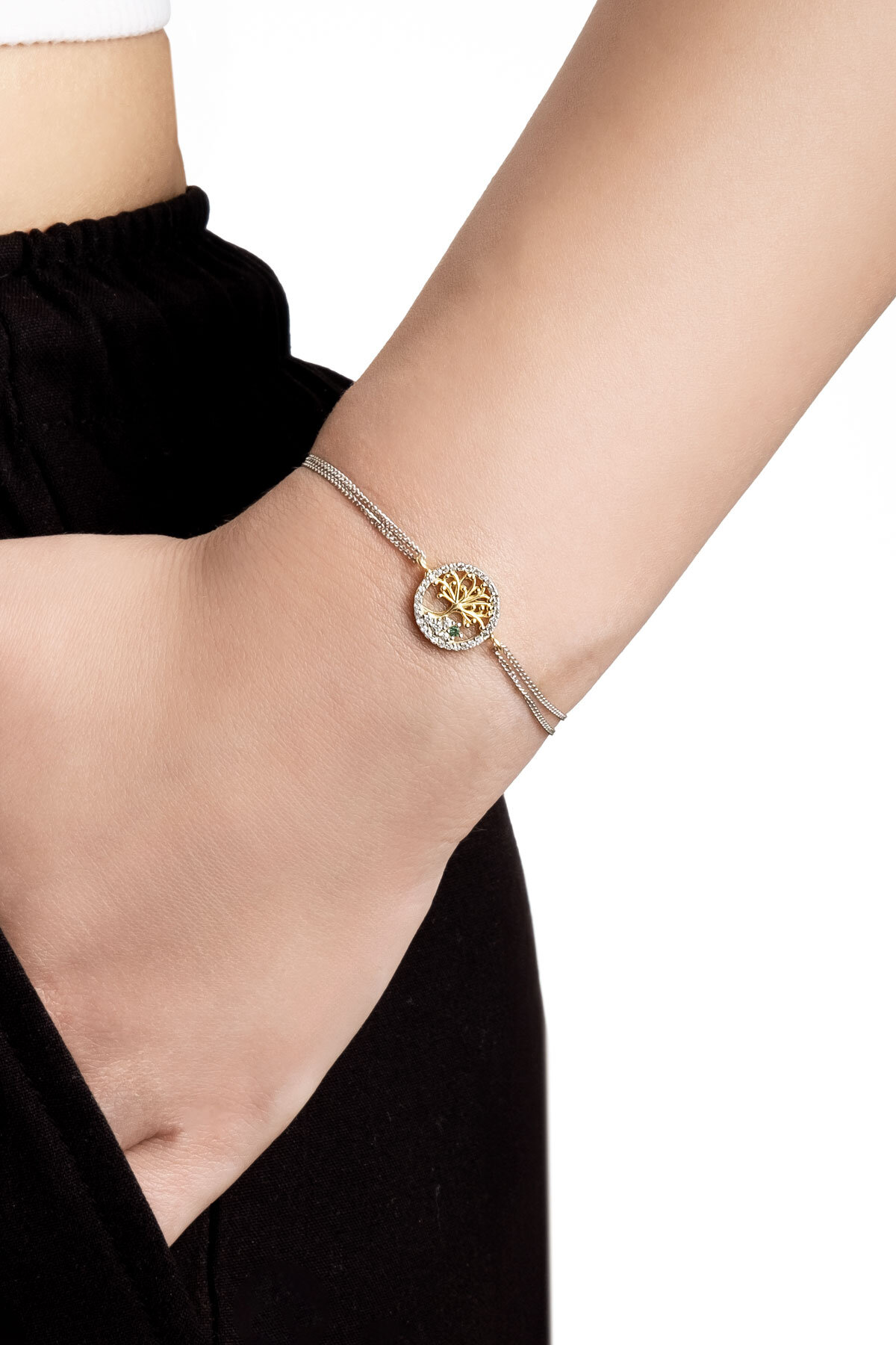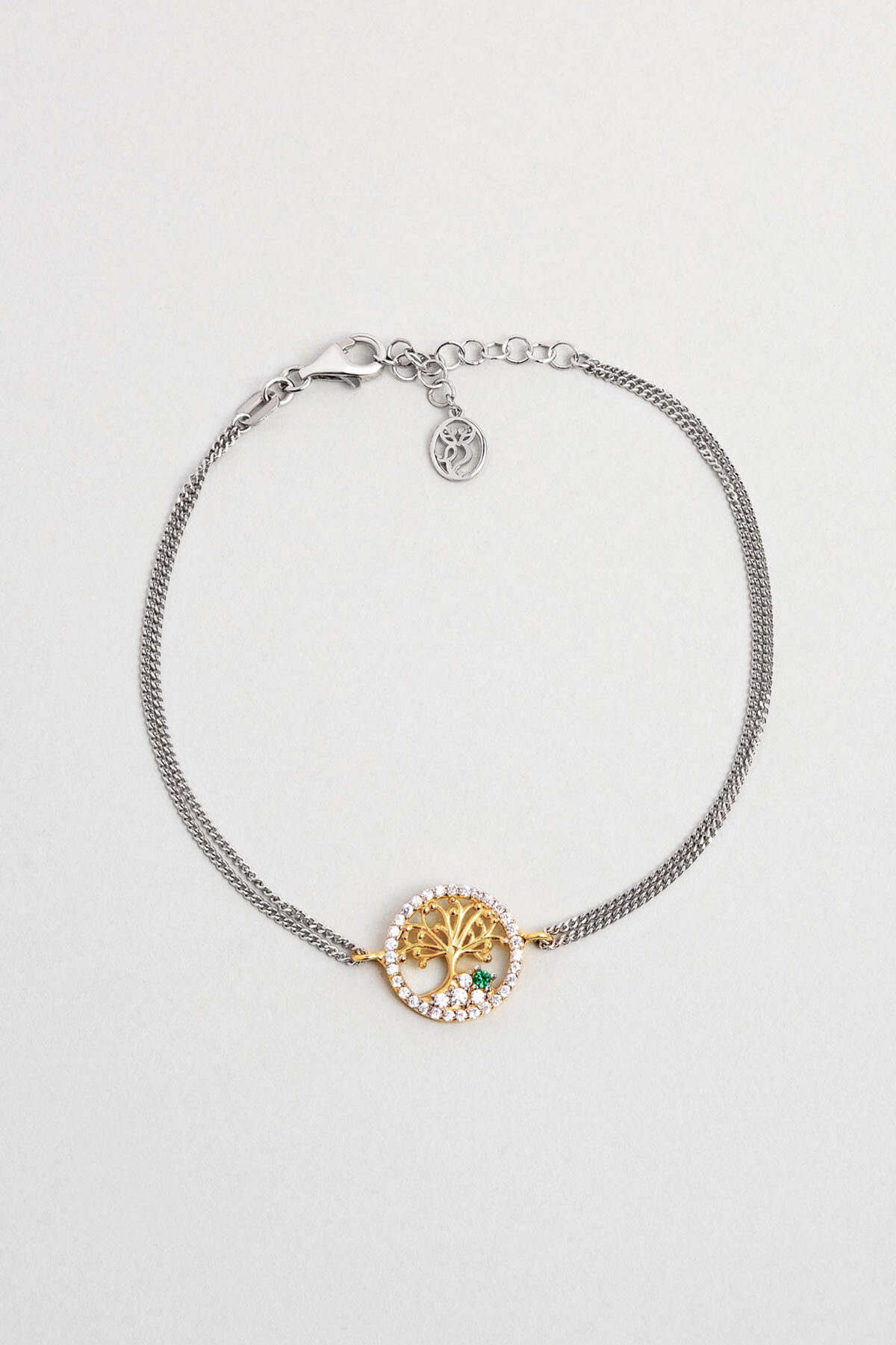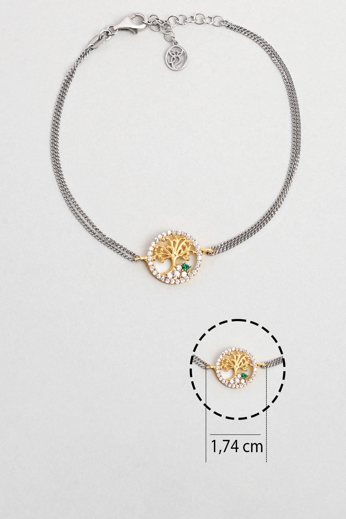 Minimal Hayat Ağacı 18 Ayar Sarı Ve Beyaz Altın Kaplama 19 Cm Gümüş Bileklik