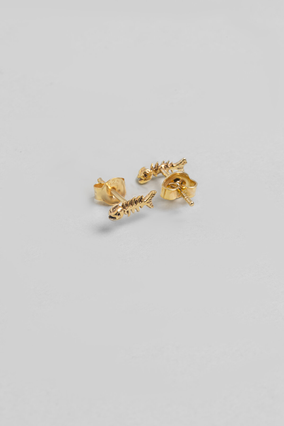 Minimal Kılçık Figürlü 18 Ayar Sarı Altın Kaplama Gümüş Küpe