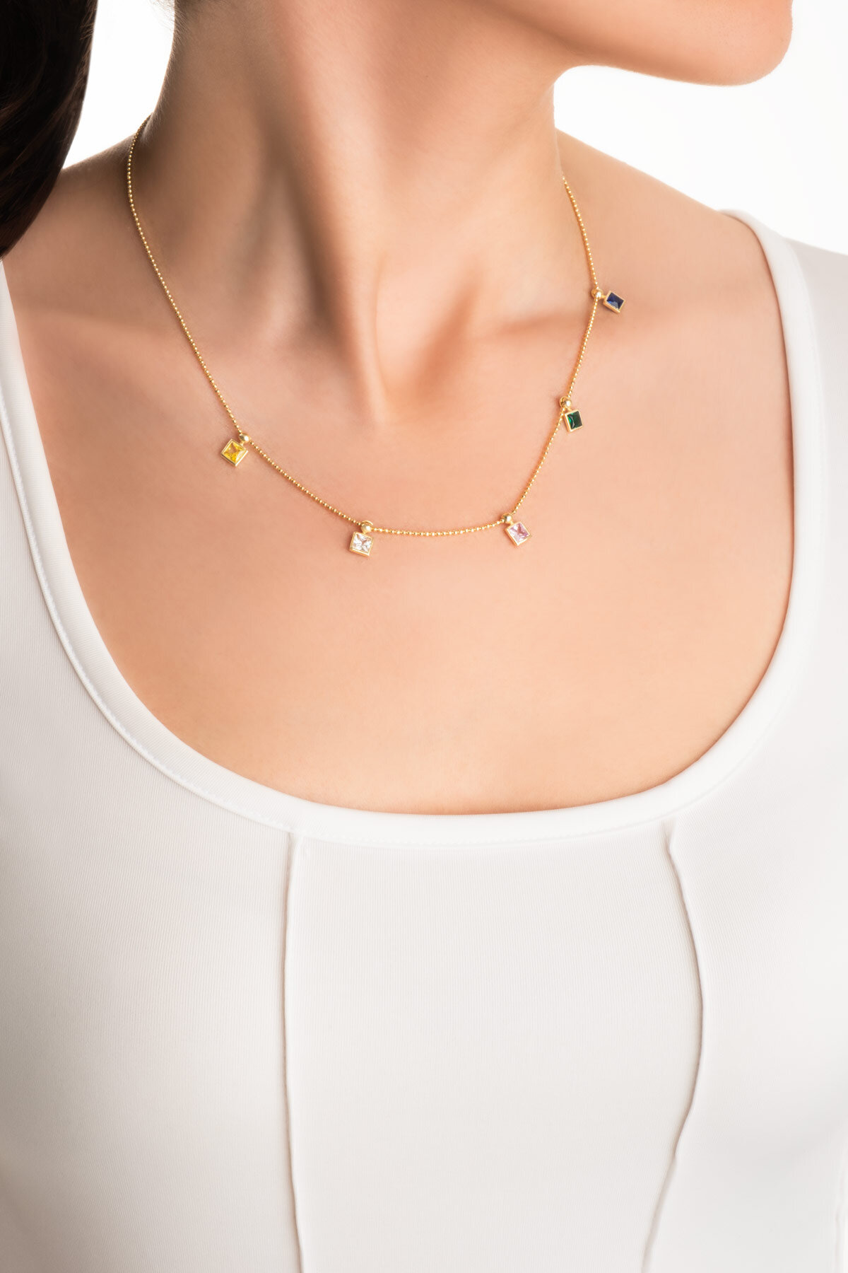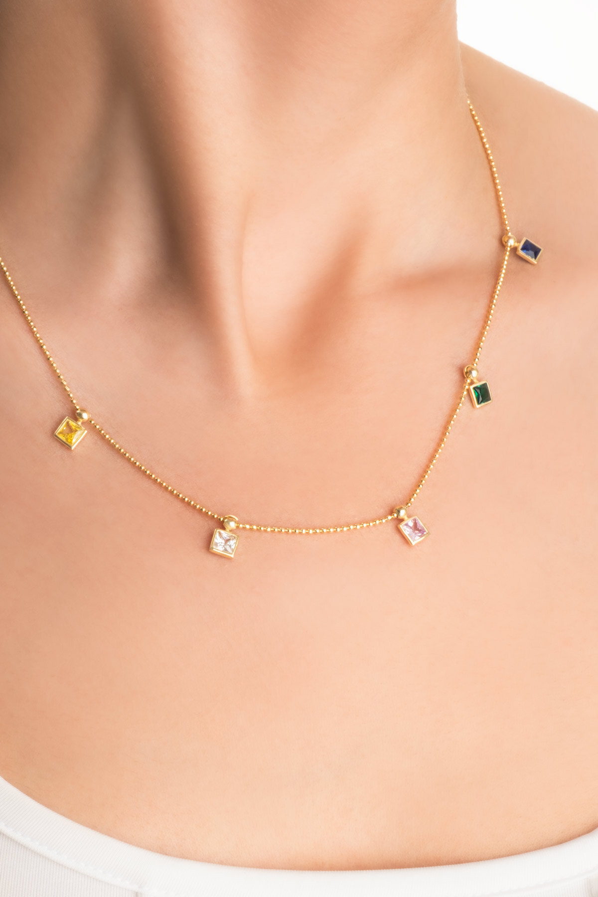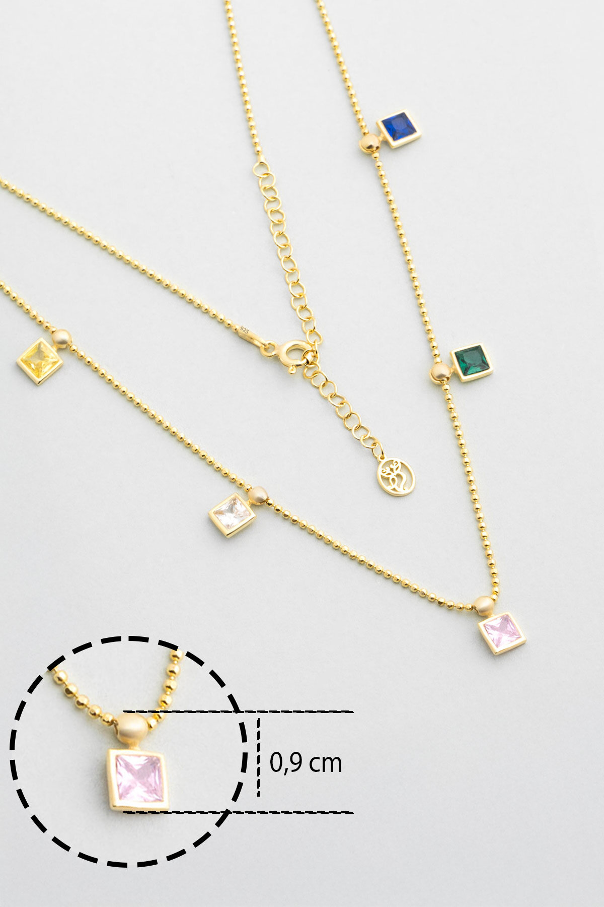 Minimal Renkler 18 Ayar Sarı Altın Kaplama 45 Cm Gümüş Kolye