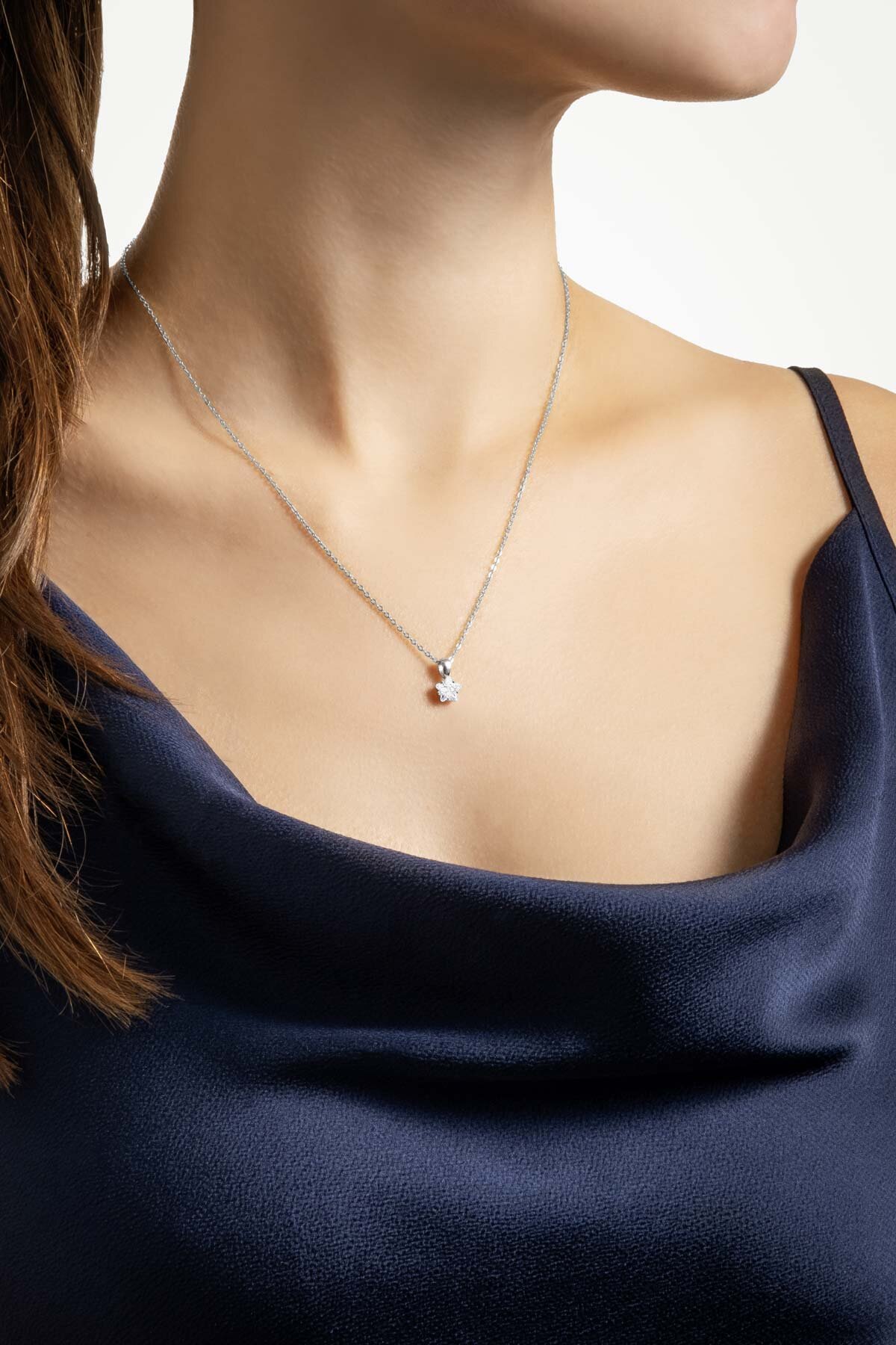 Minimal Yıldız Taşlı 18 Ayar Beyaz Altın Kaplama 45 Cm Gümüş Kolye