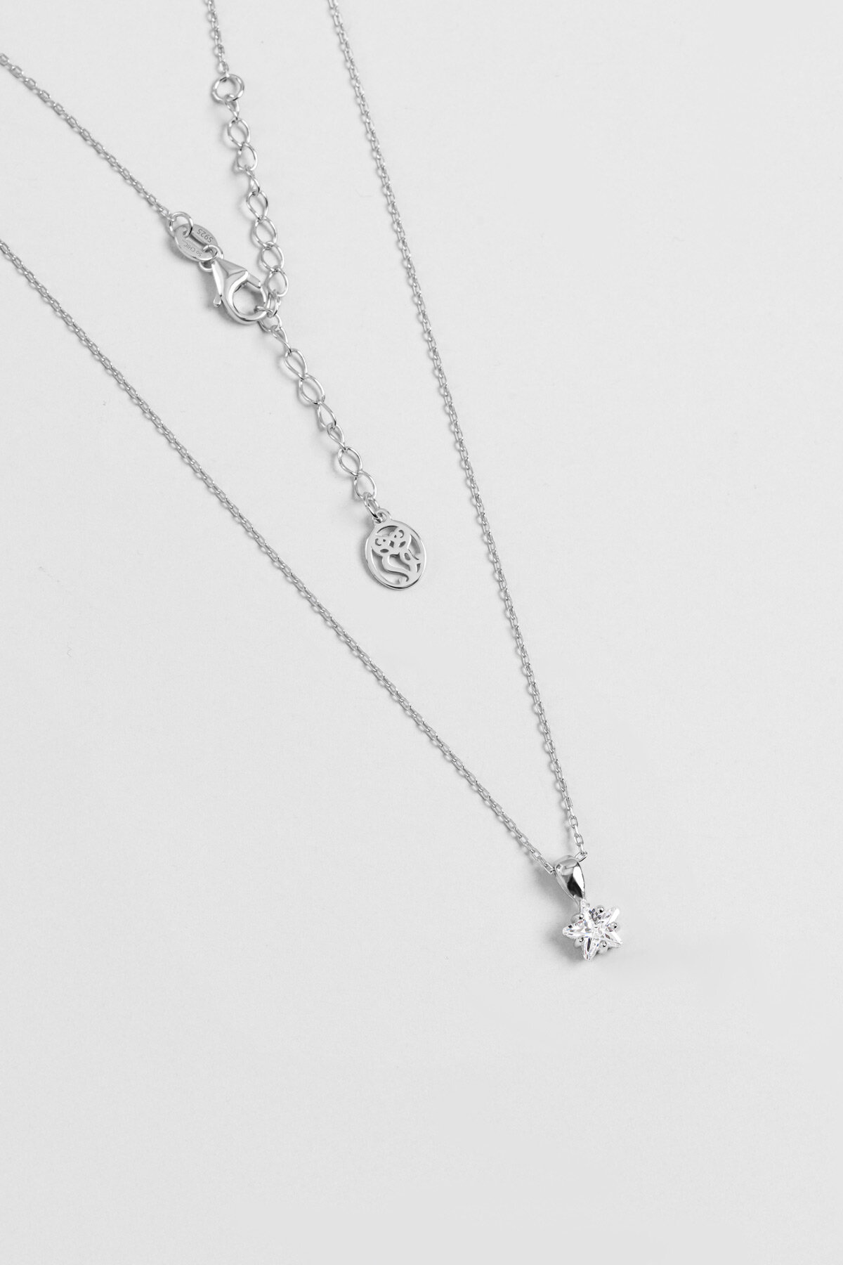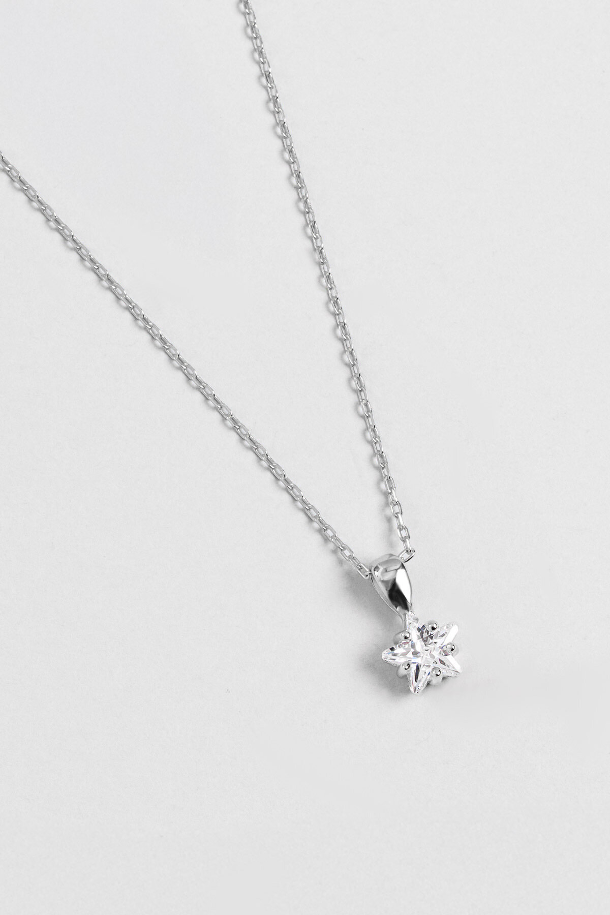 Minimal Yıldız Taşlı 18 Ayar Beyaz Altın Kaplama 45 Cm Gümüş Kolye