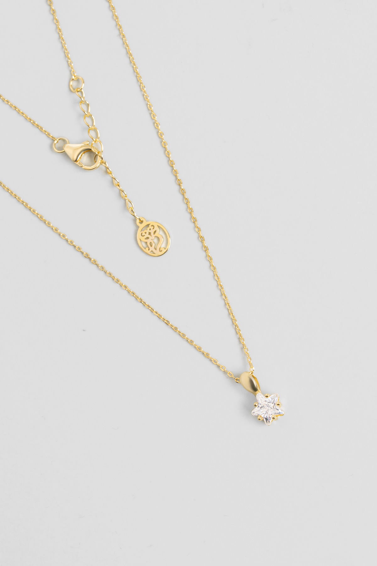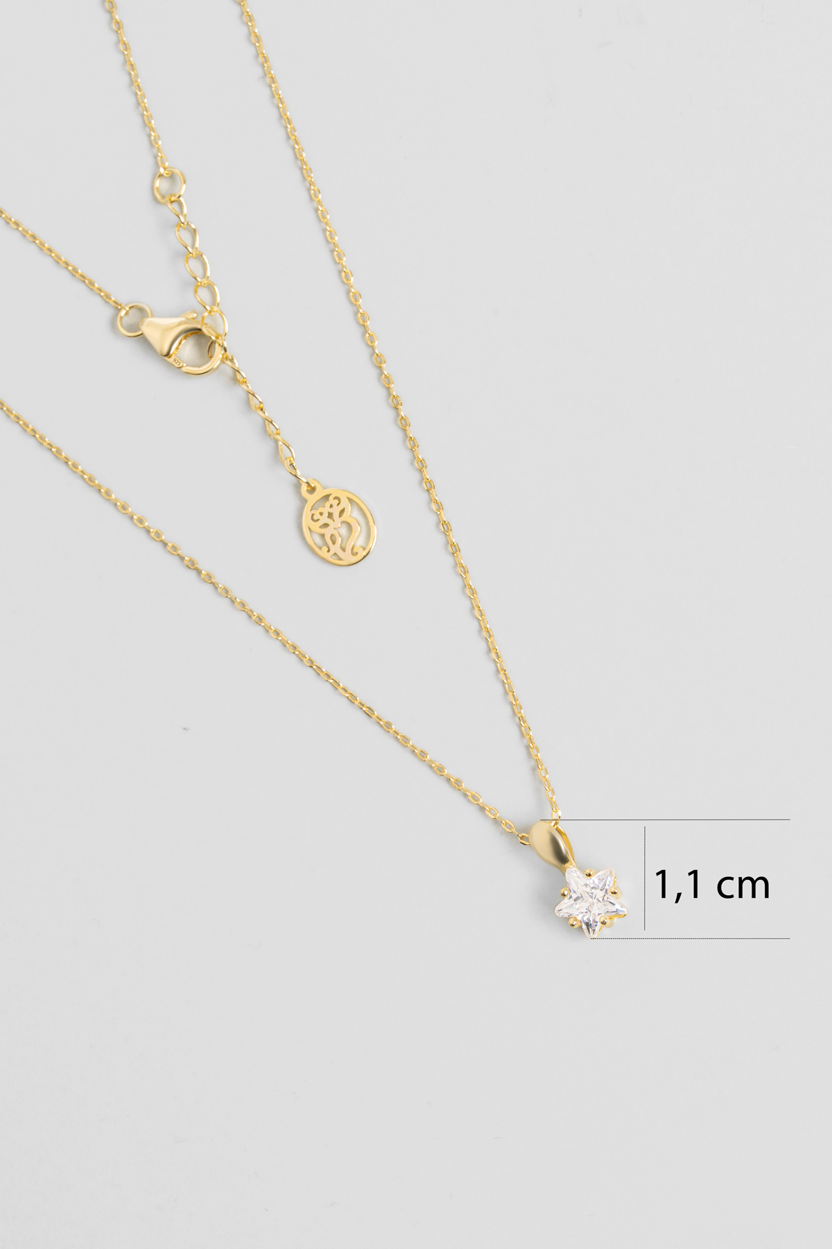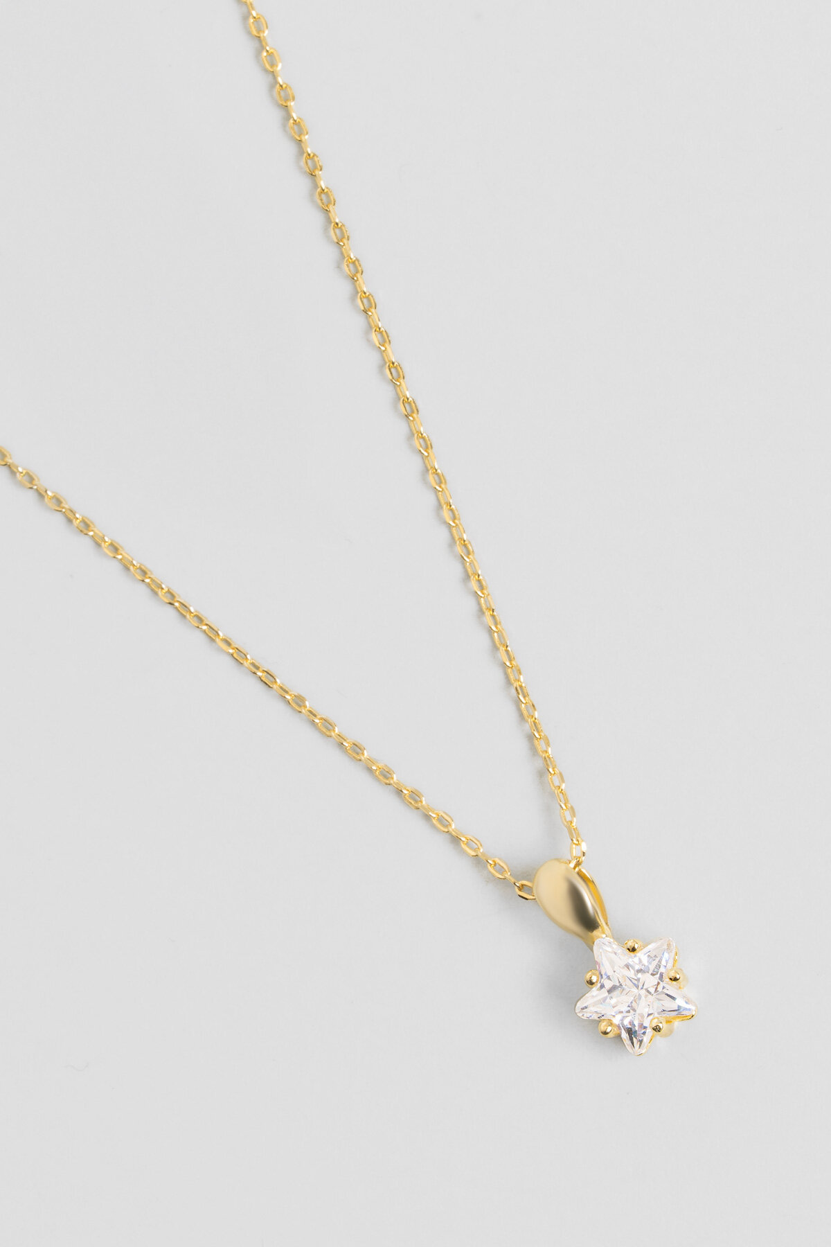 Minimal Yıldız Taşlı 18 Ayar Sarı Altın Kaplama 45 Cm Gümüş Kolye