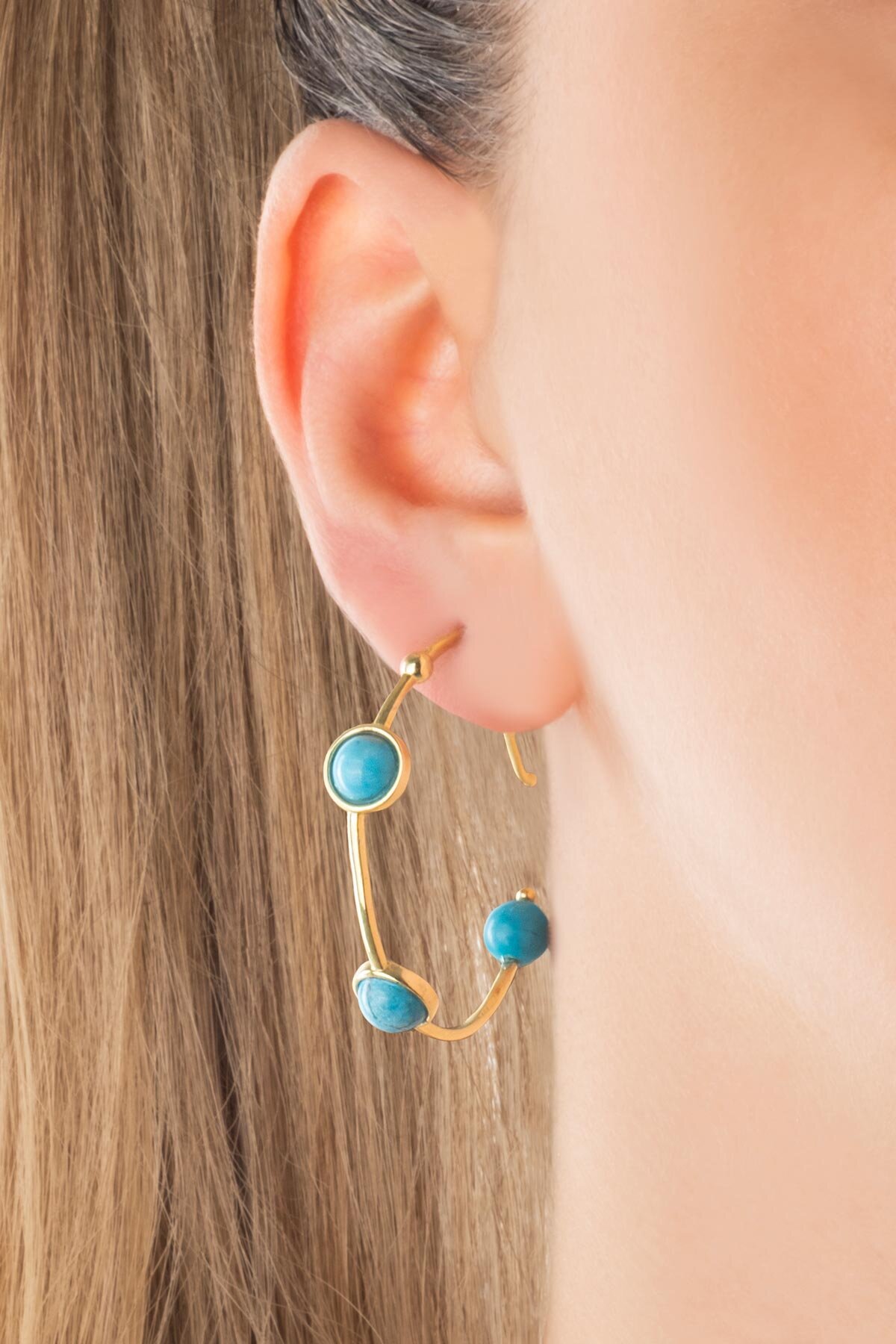 Mistik Ruh 18 Ayar Sarı Altın Kaplama Gümüş Halka Küpe