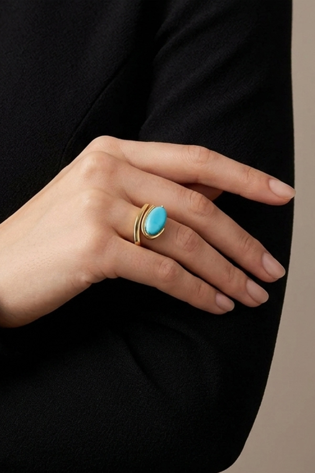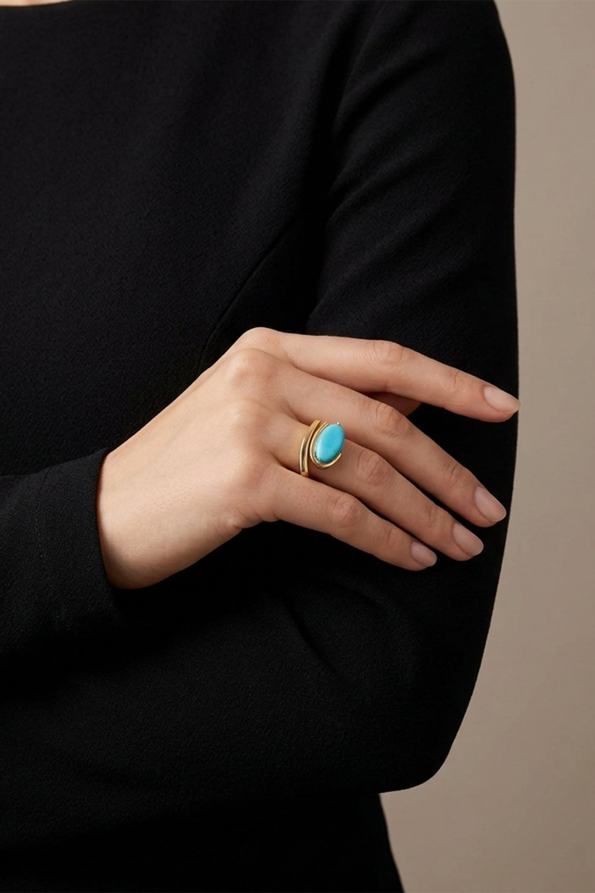Eşsiz tasarımıyla dikkat çeken tasarım yüzük, Akdeniz'in sakinlik ve dinginlik hissini taşıyan turkuaz taşıyla süslenerek Mistik Turkuaz Koleksiyonu'nu oluşturuyor.