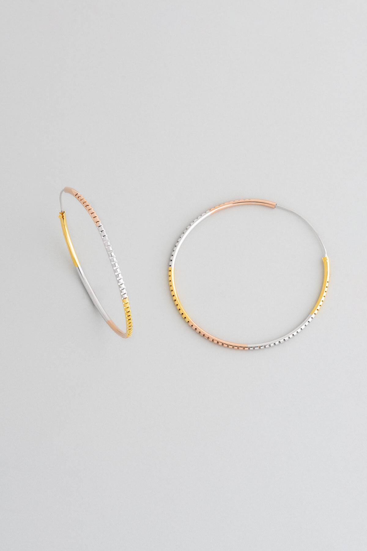 Modern Tasarım 18 Ayar Mix Altın Kaplama Gümüş Halka Küpe